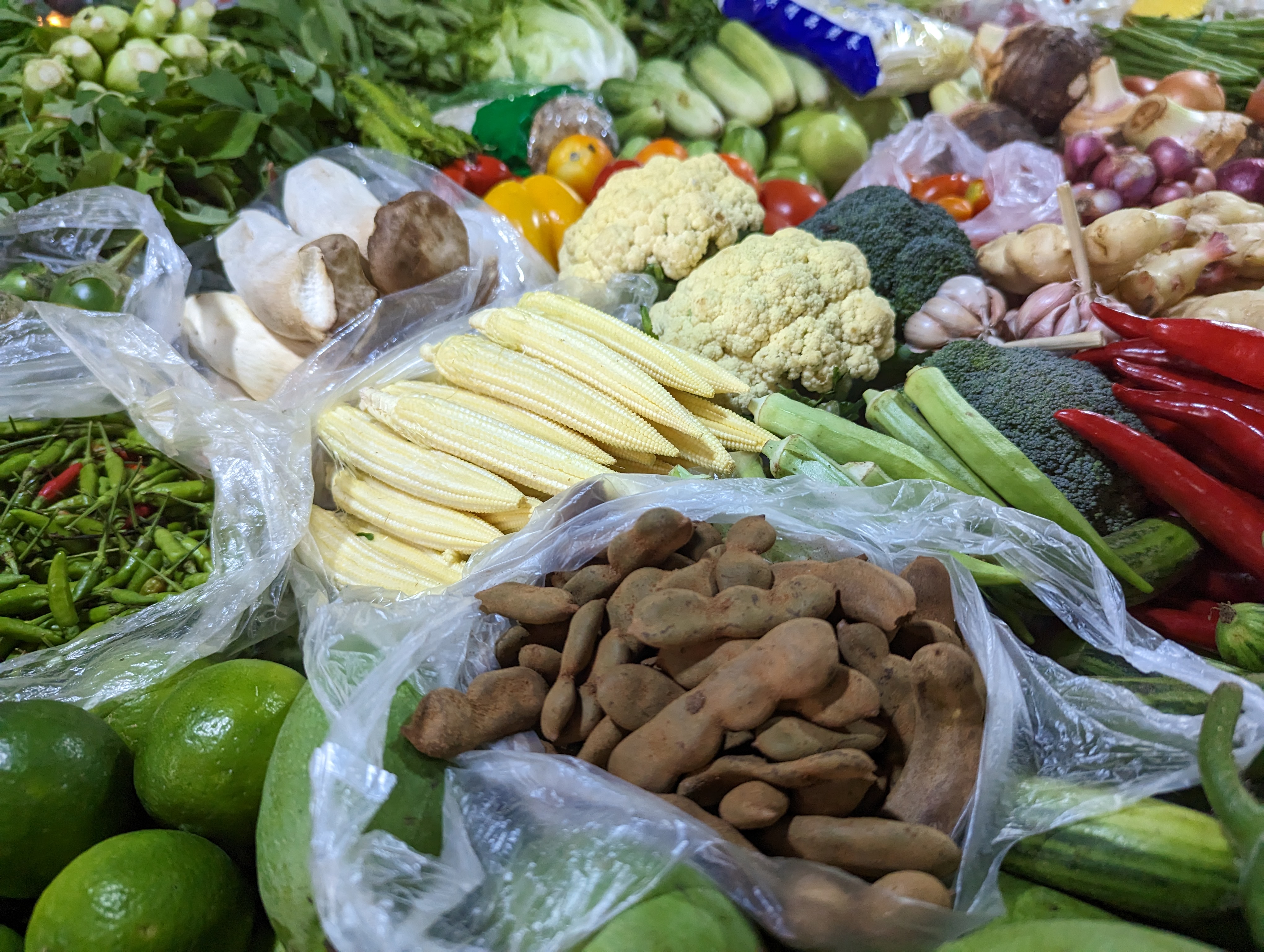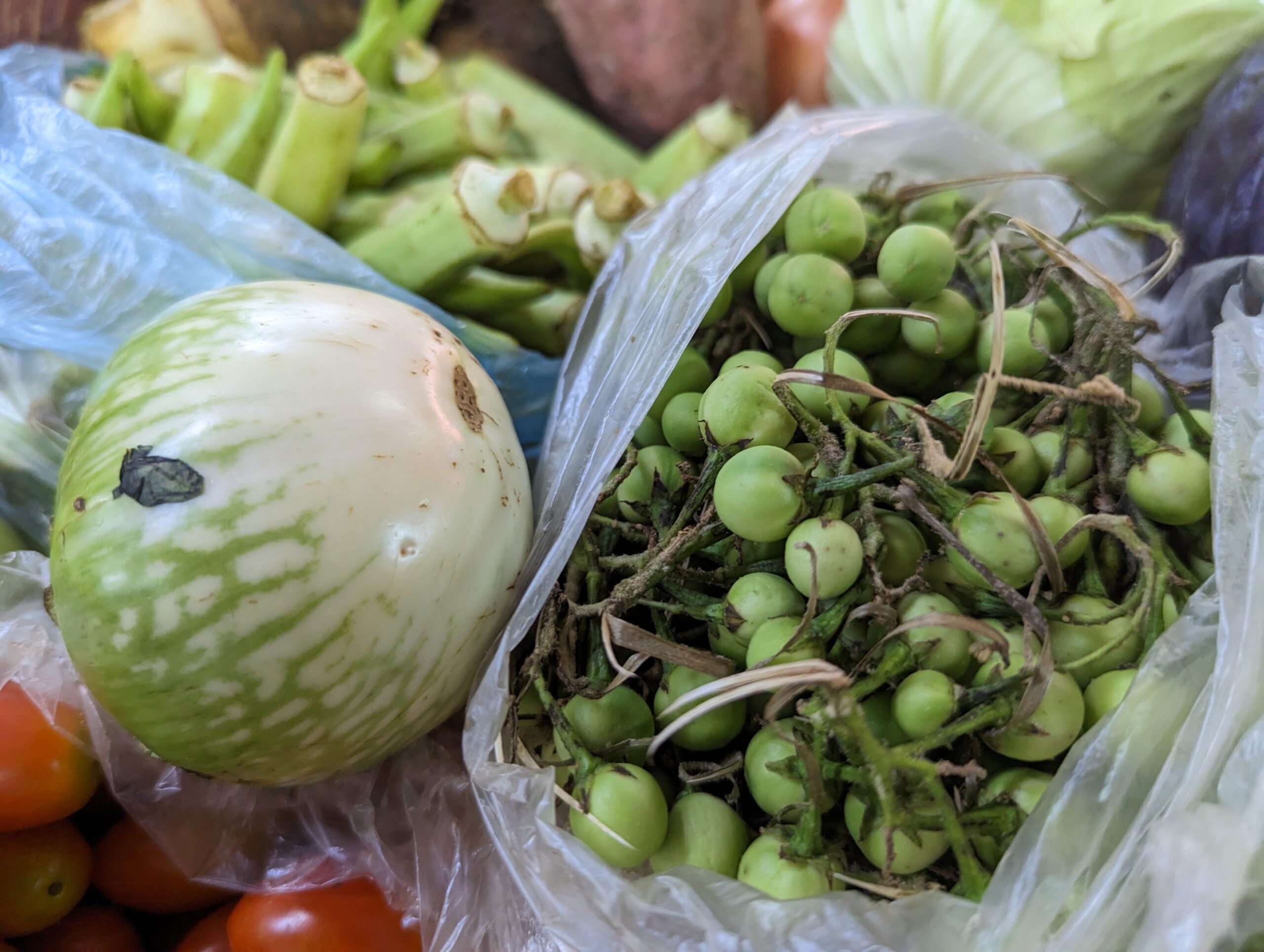 I have seen these peppercorns in many places.Fish, fish paste, dried meats.Lots of vegetables including baby corn and tamarind. These are two different types of eggplant.Bottom dwelling lake fish.
