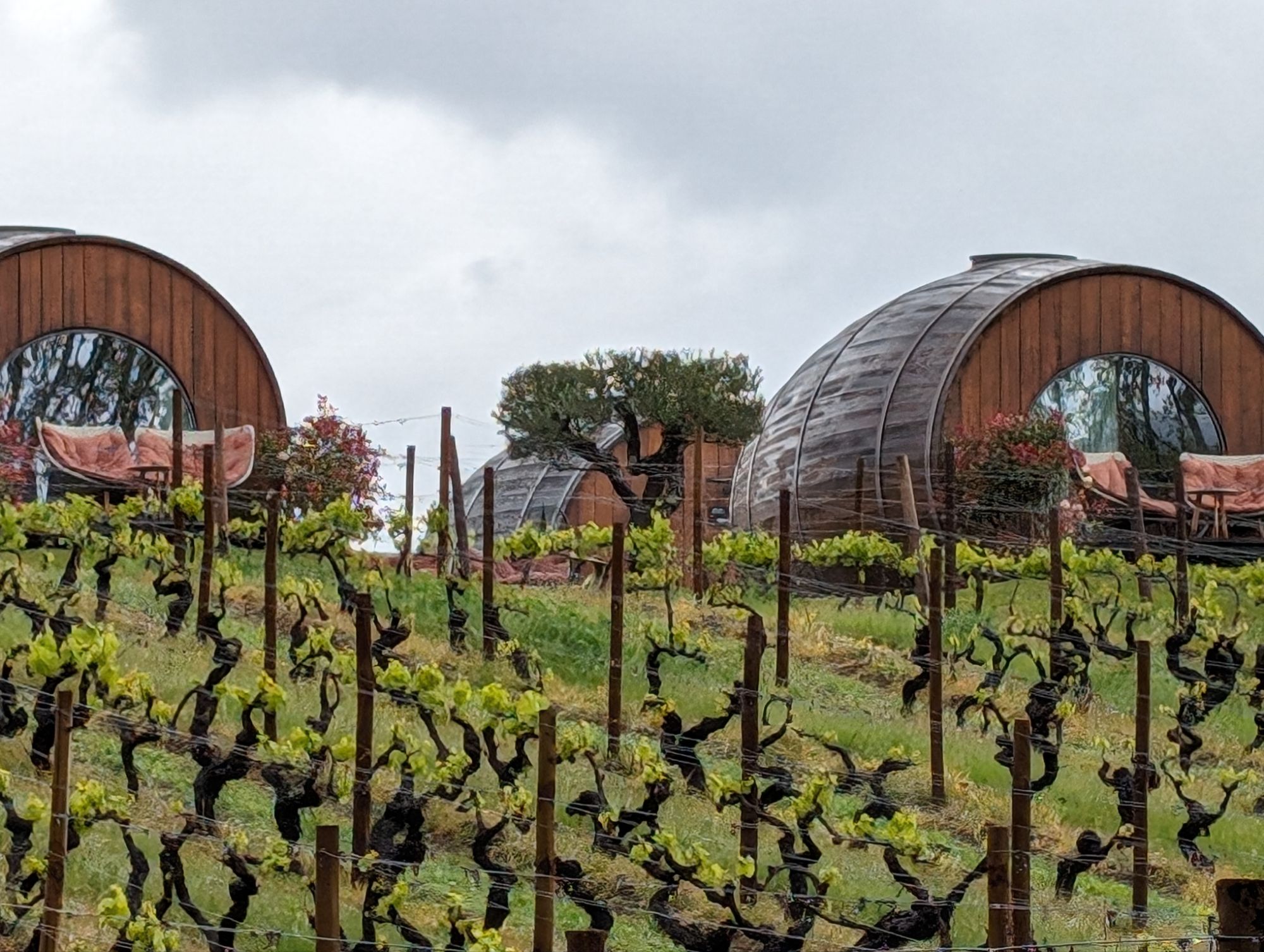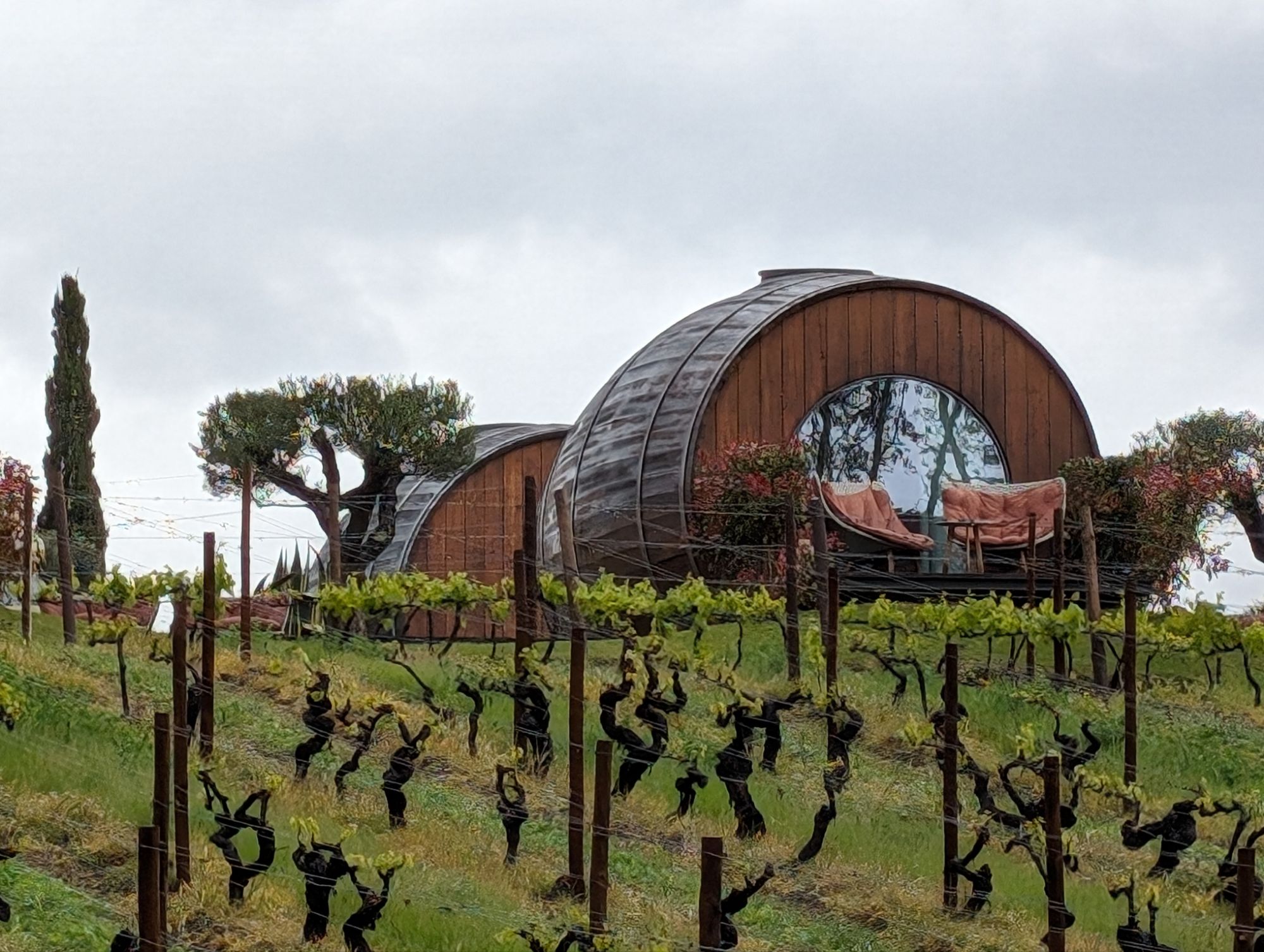 You can actually stay in these wine barrel houses.