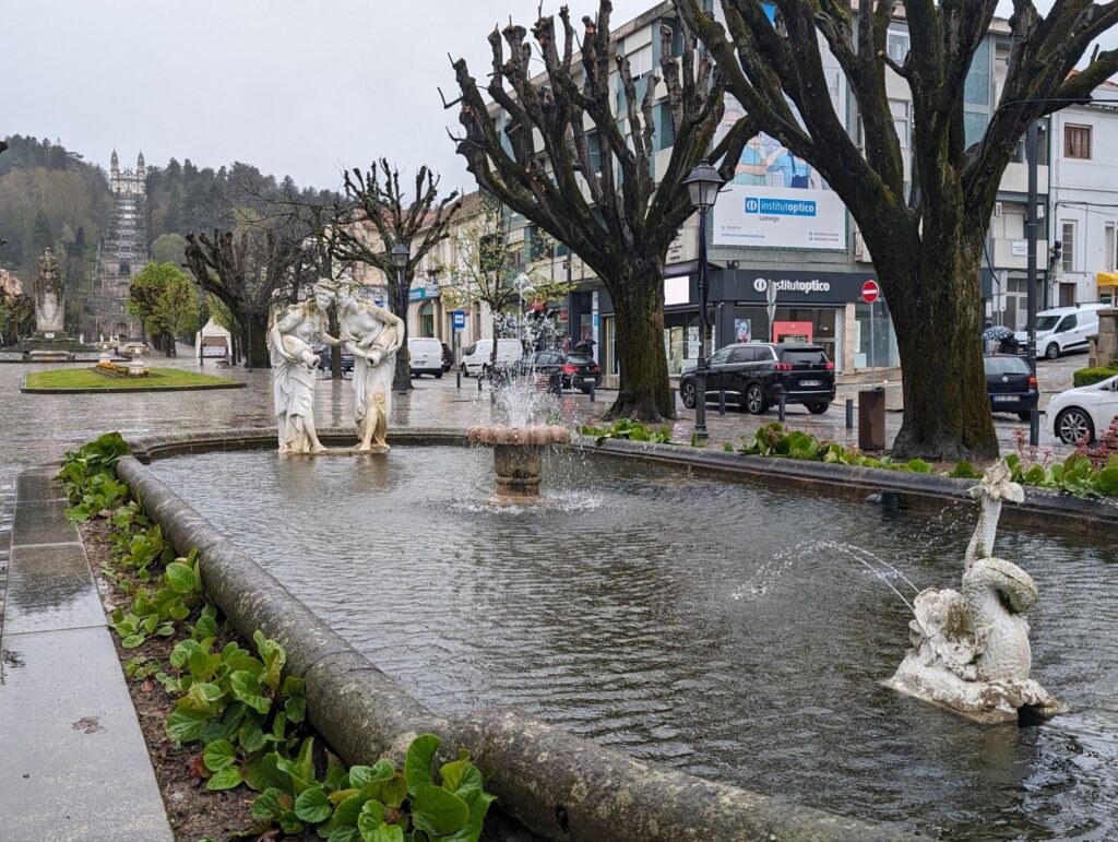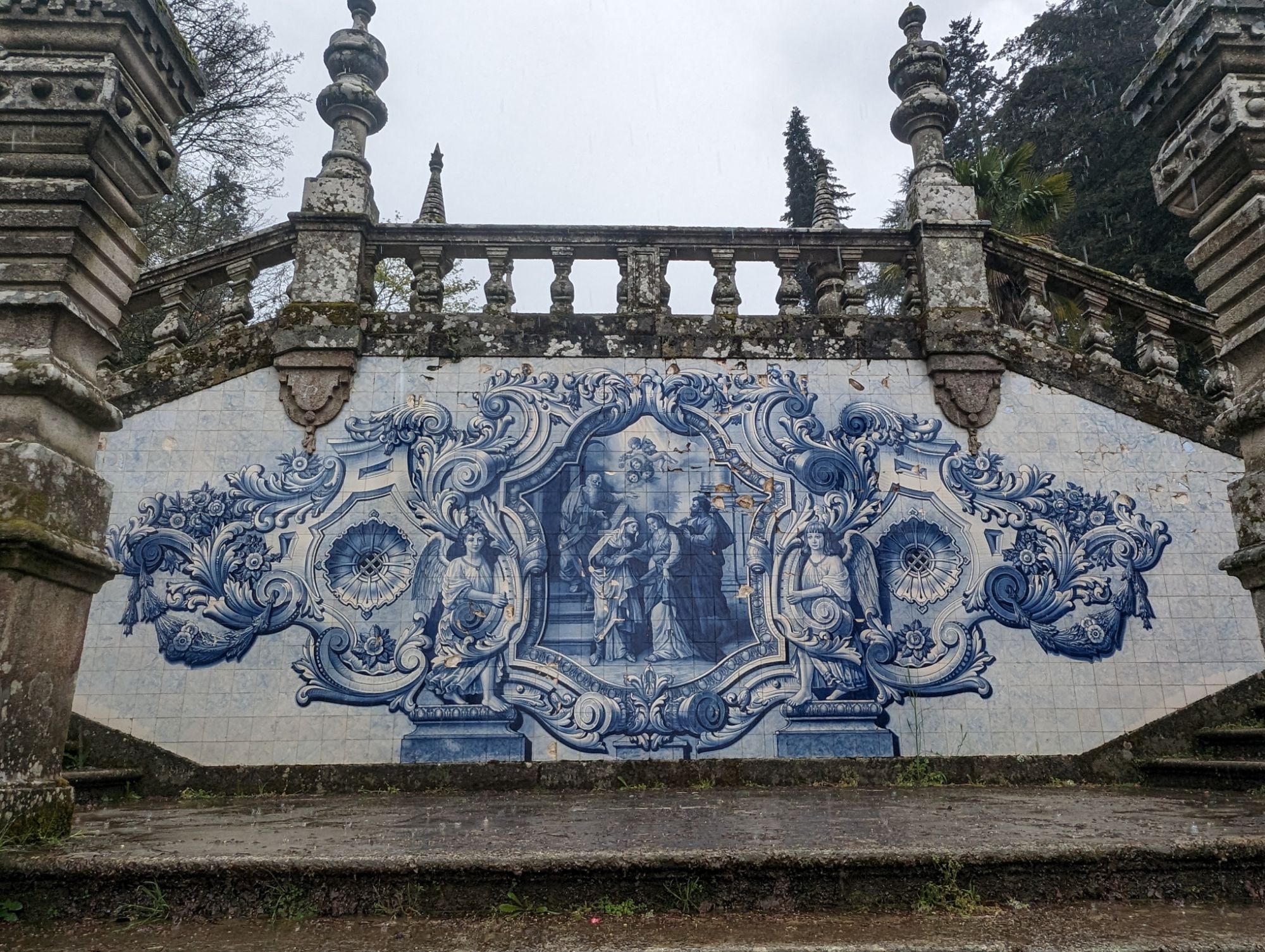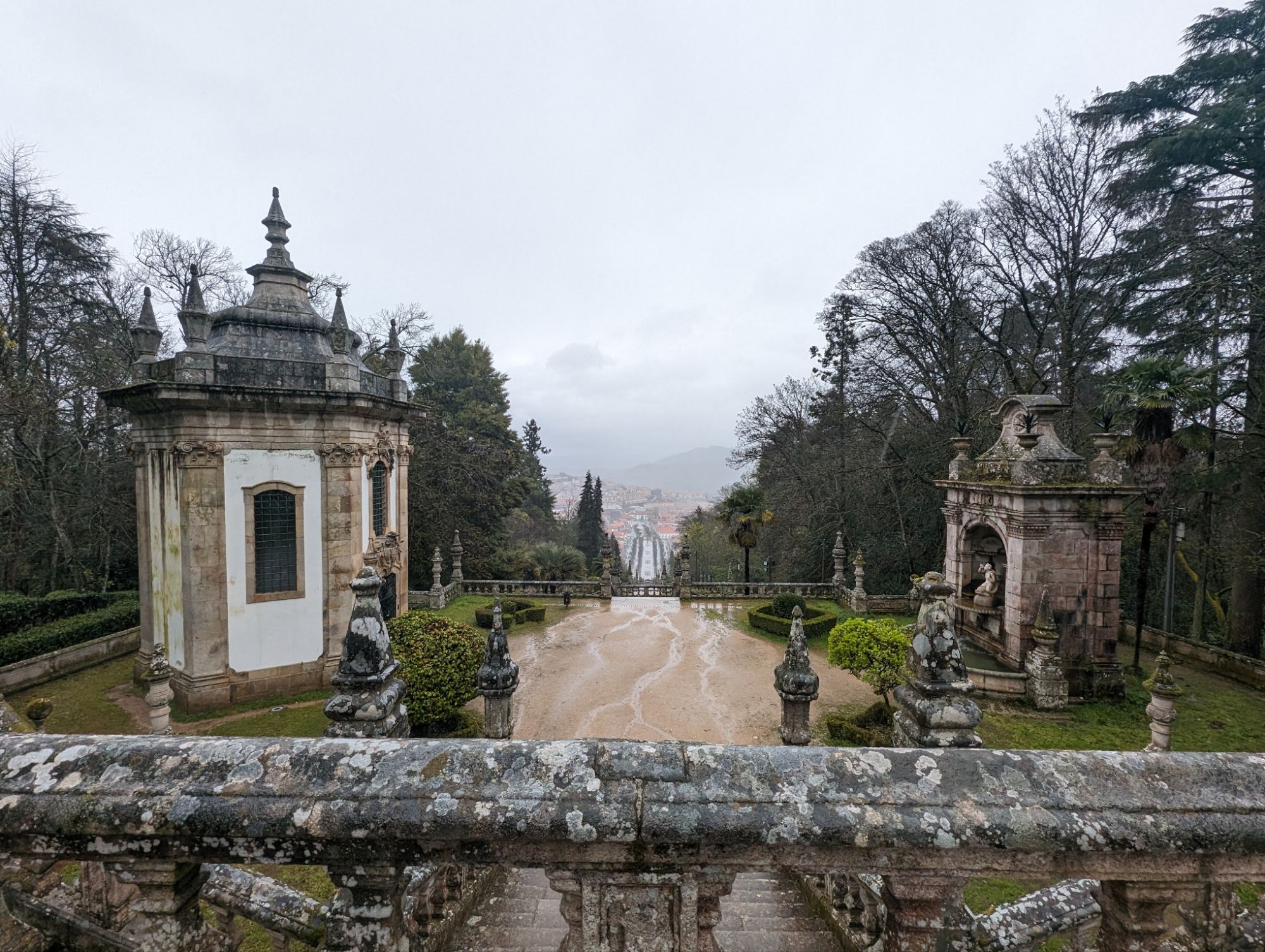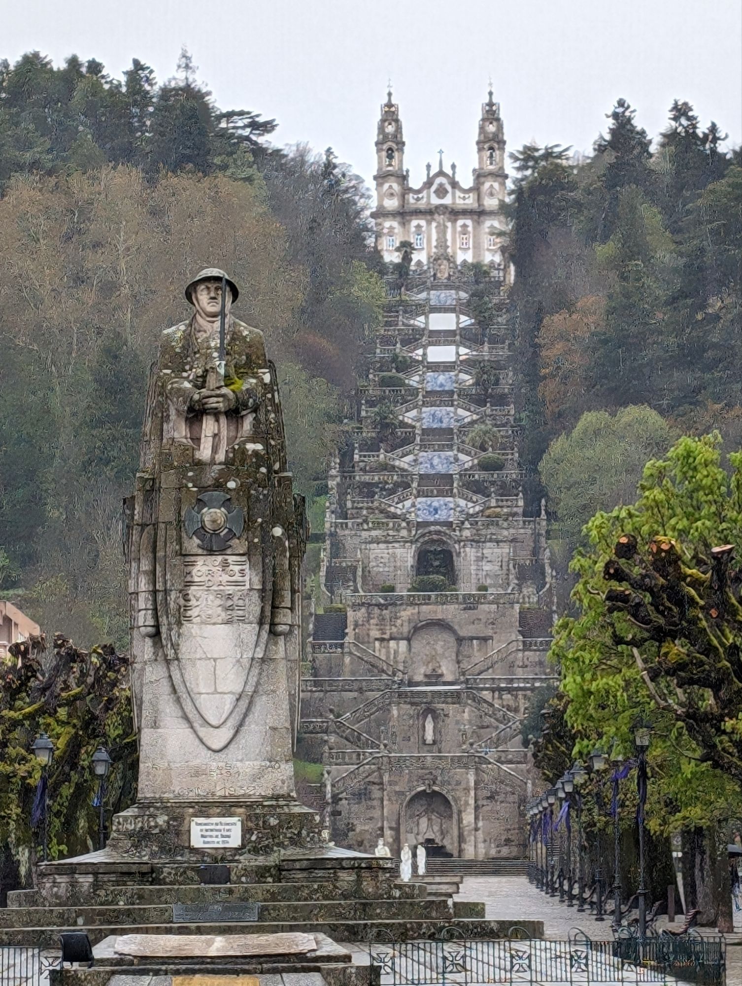 The Santuario Nossa Senhora dos Remedios is perched on a hill above the town of Lamego. To reach the Church you climb up sets of zigzag stairs from the wide avenue at the edge of the town. The view is worth the climb. Due to the rain we were dropped off at the top and viewed the inside of the church first. I then started at the top of the stairs and went down instead.