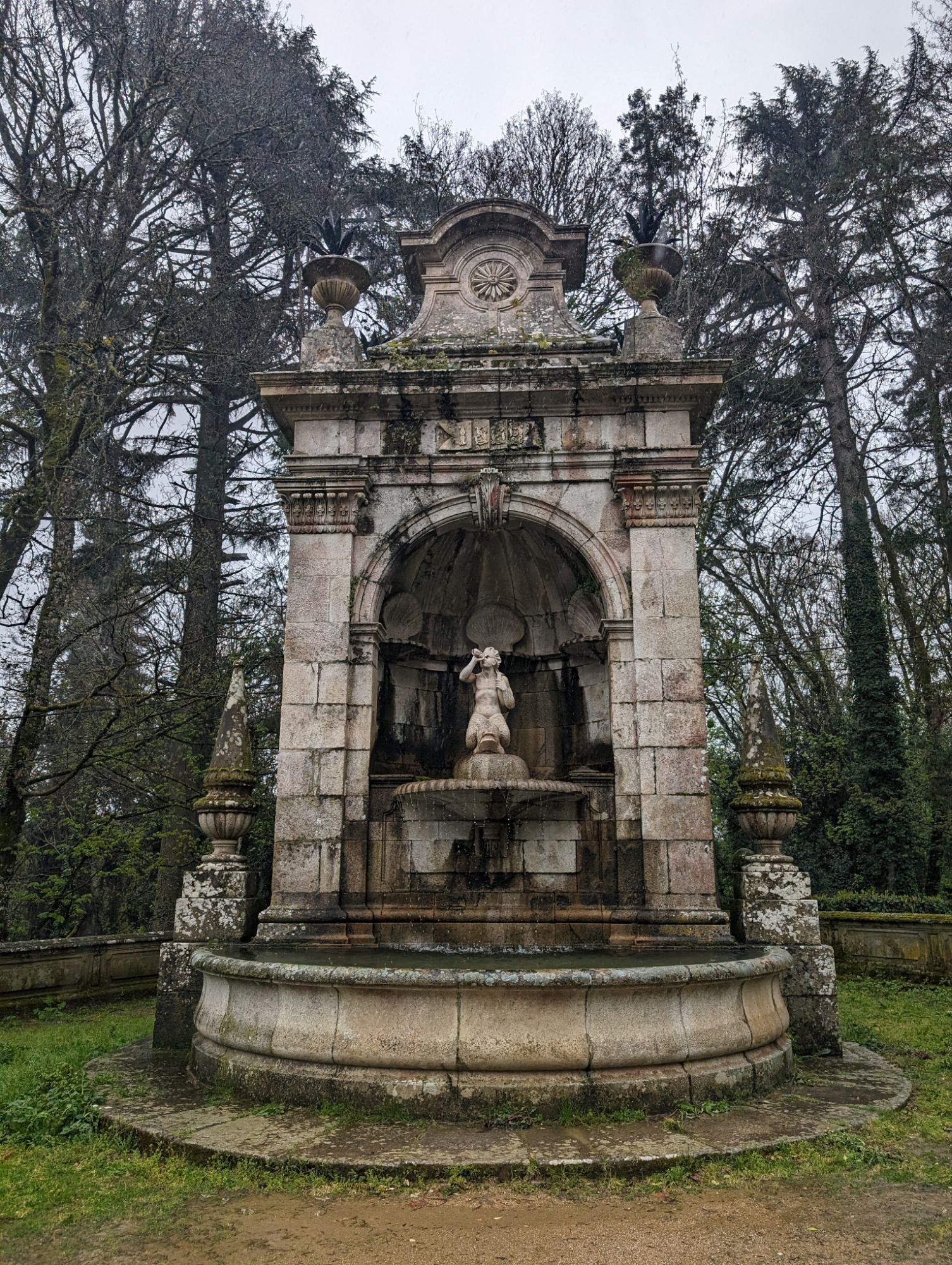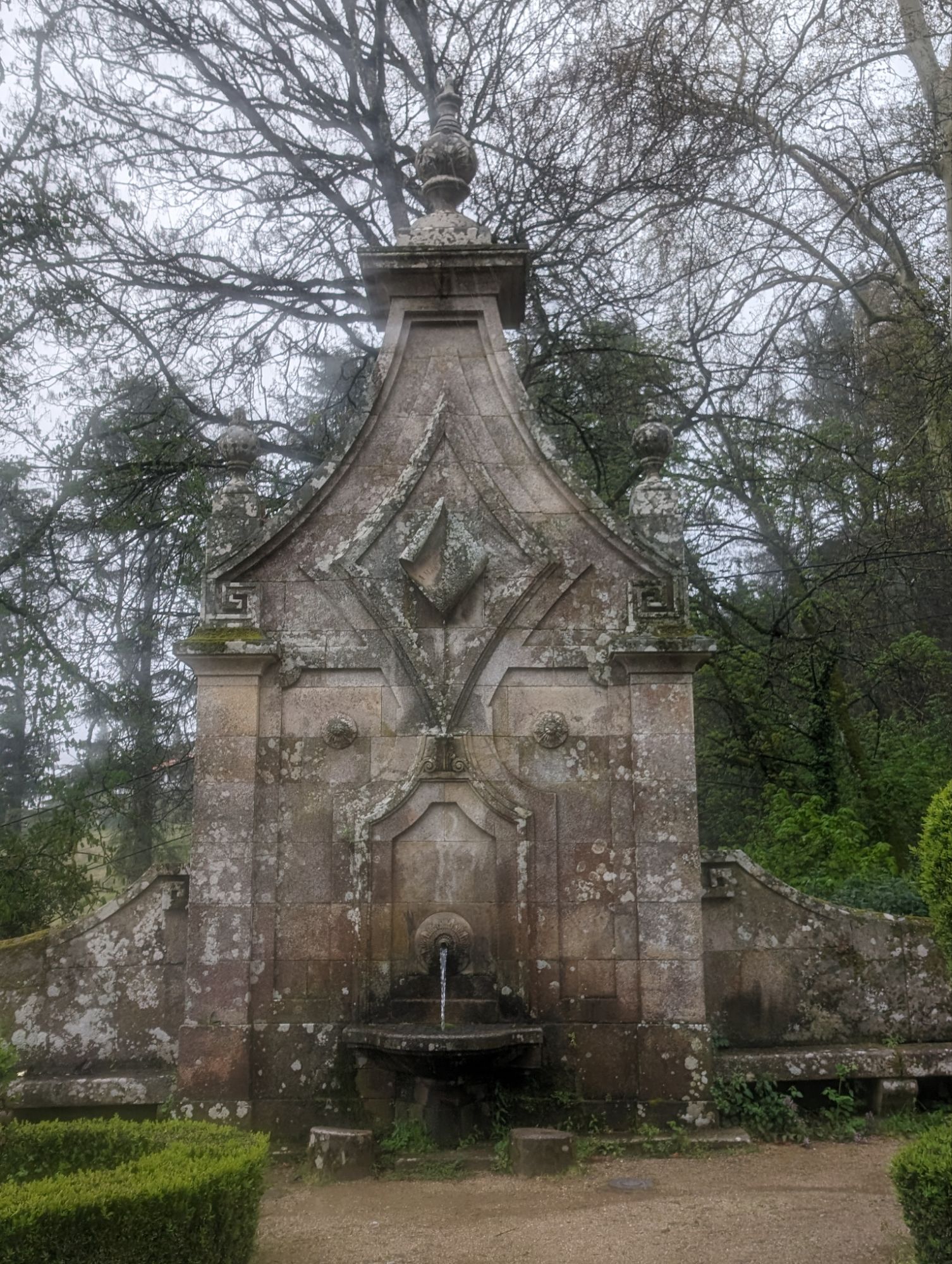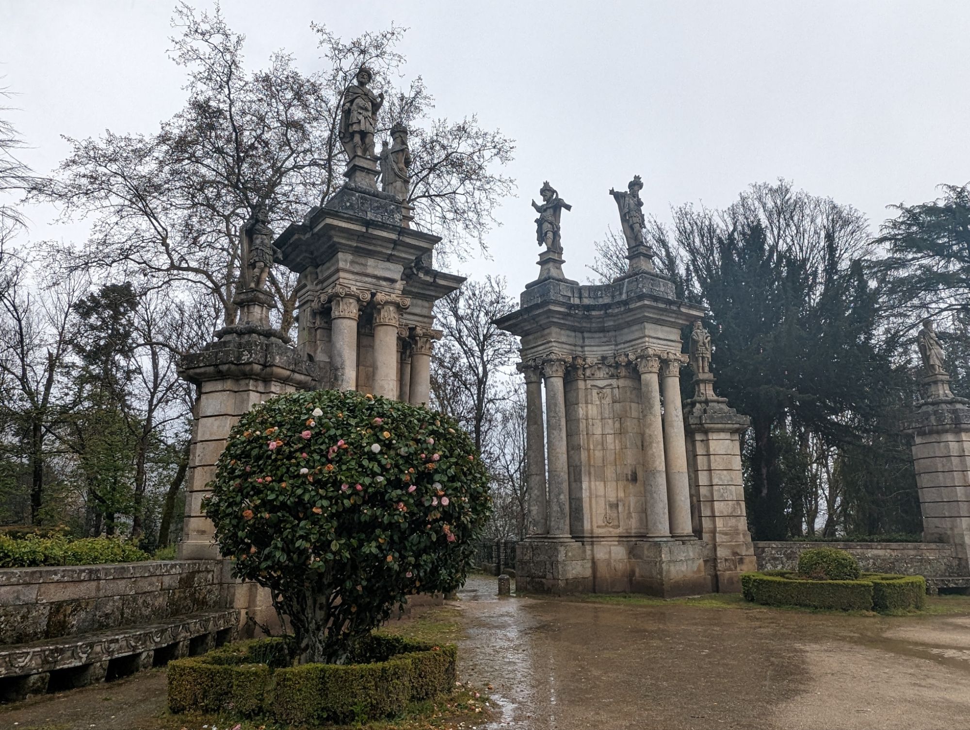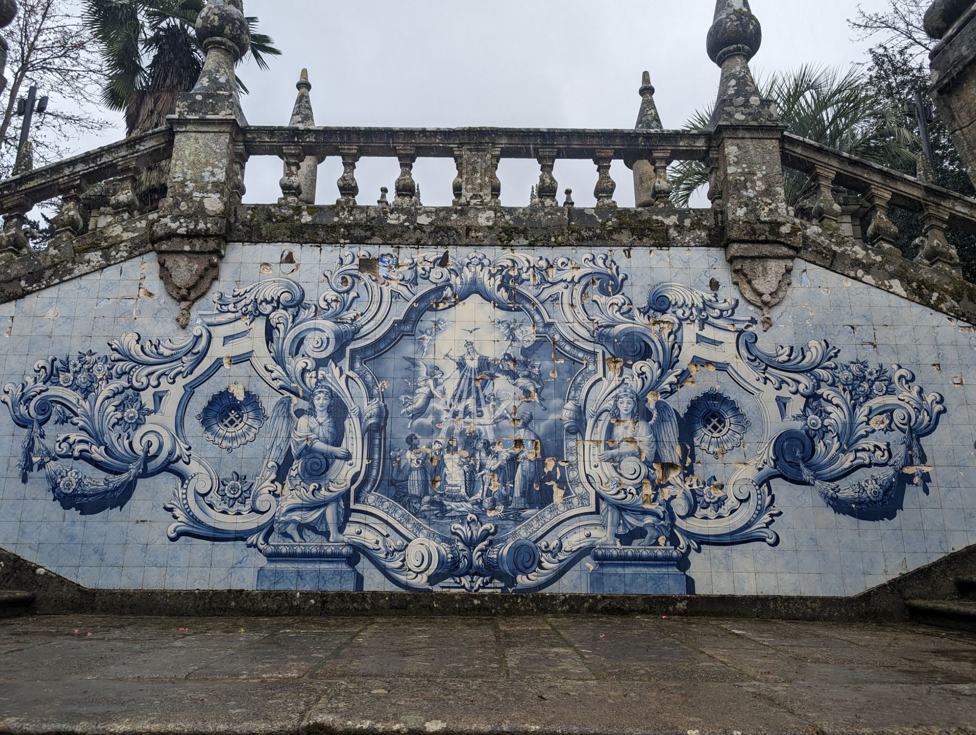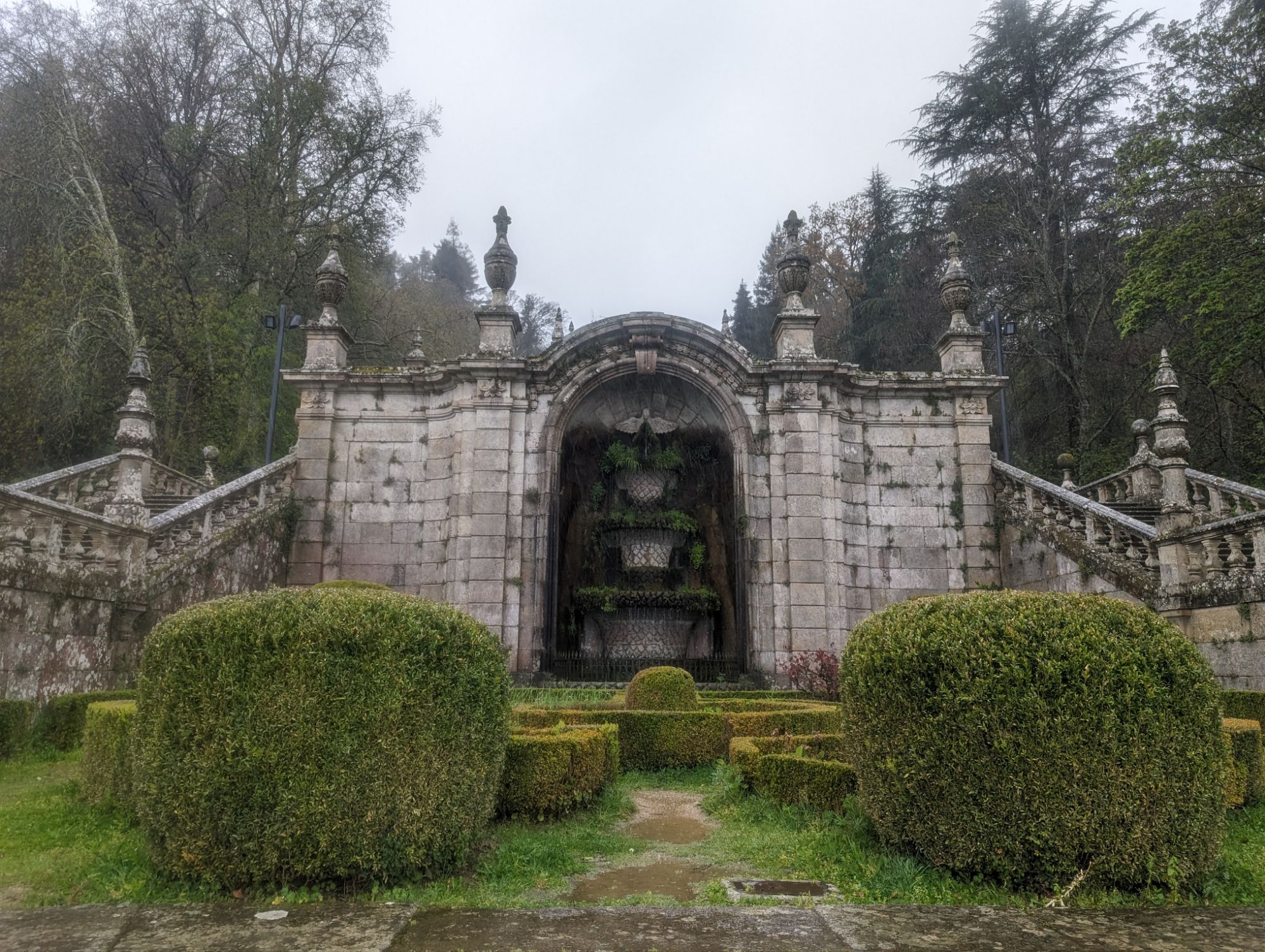 The Santuario Nossa Senhora dos Remedios is perched on a hill above the town of Lamego. To reach the Church you climb up sets of zigzag stairs from the wide avenue at the edge of the town. The view is worth the climb. Due to the rain we were dropped off at the top and viewed the inside of the church first. I then started at the top of the stairs and went down instead.