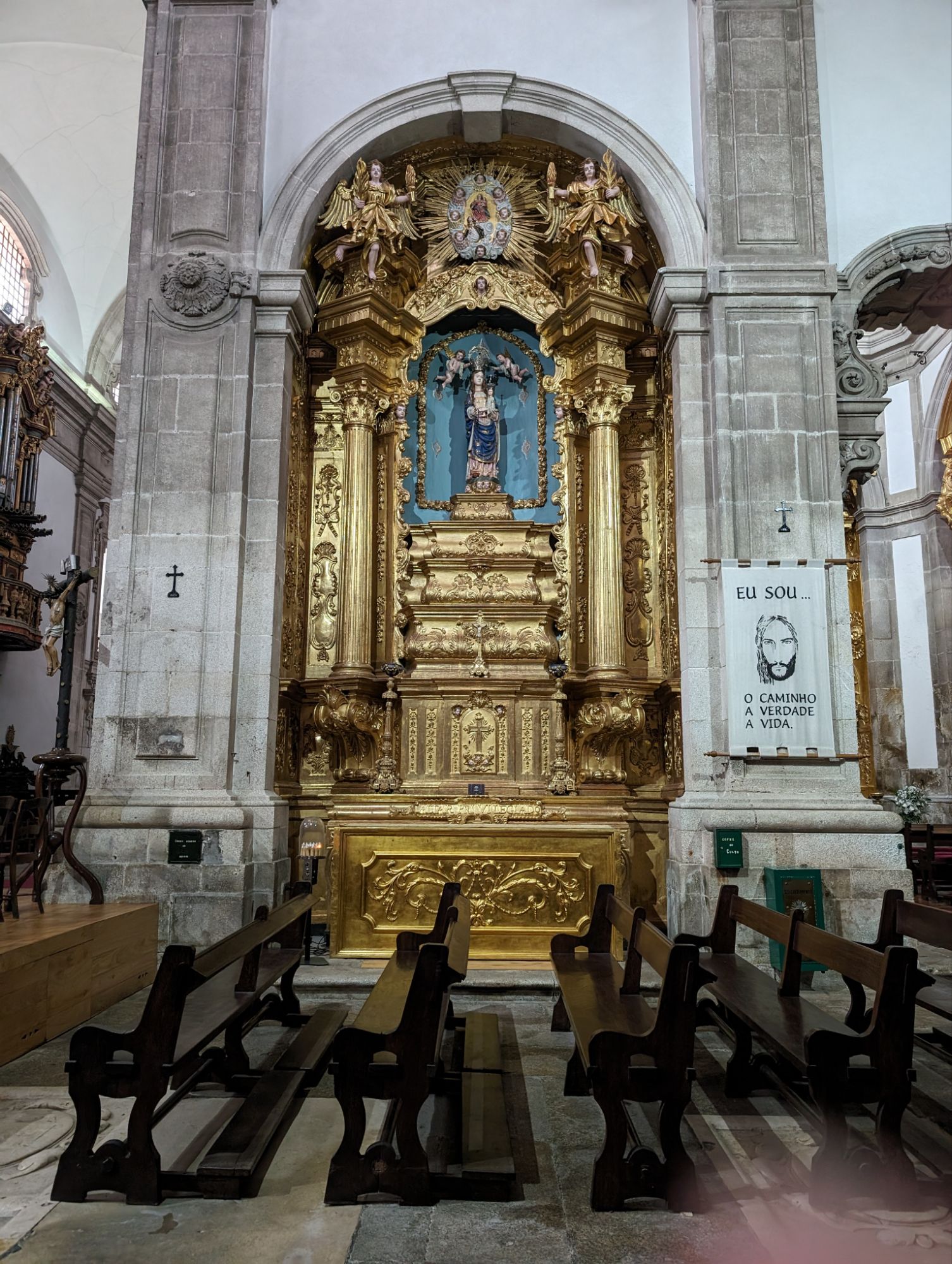Tile work inside the cathedral can be seen all around the perimeter. The azulejo tile here in Portugal is beautiful.