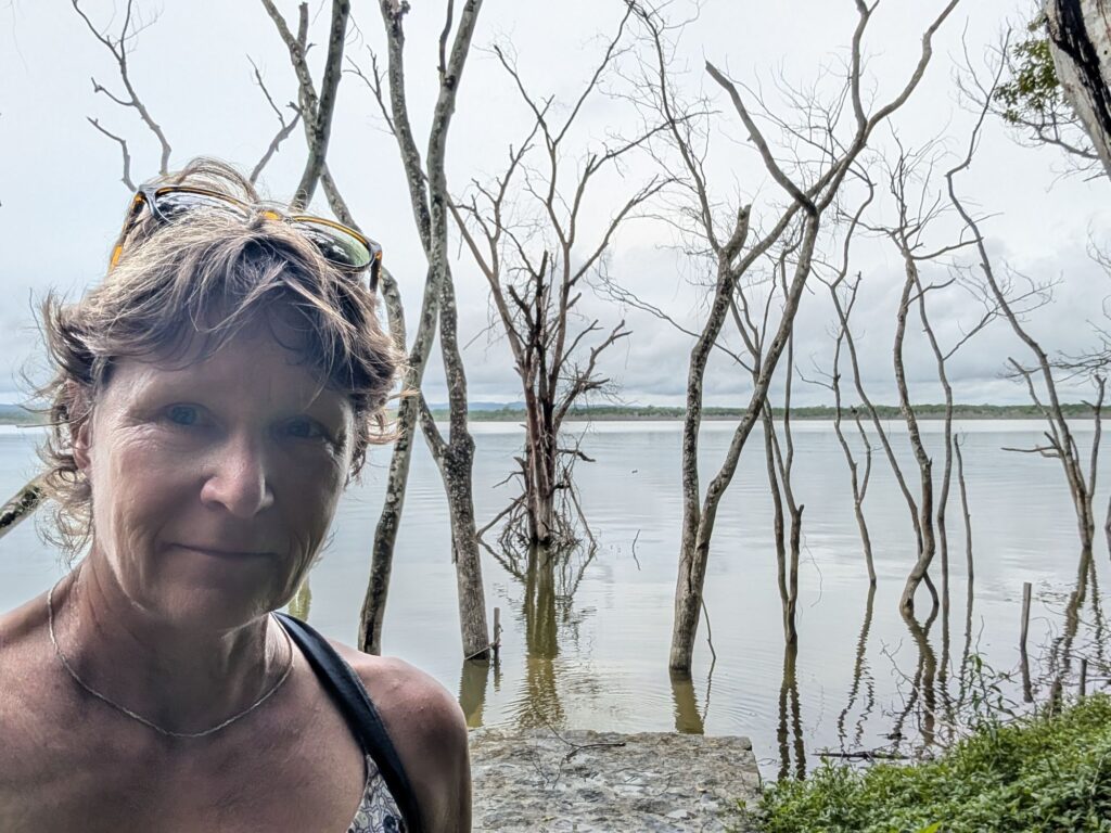 Yaxhá is a name derived from the Maya language and means “blue-green water” or “turquoise water.” Lake Yaxhá was an important resource for the city though there are many crocodiles there. It is not the largest Mayan site and is very peaceful to walk around in.