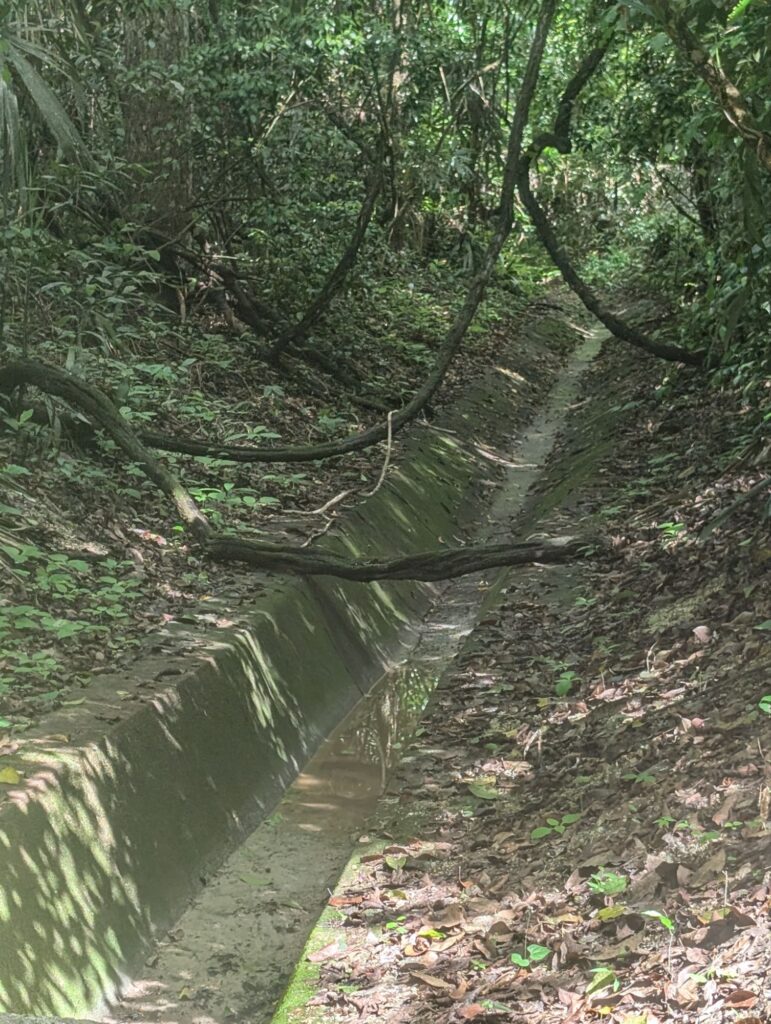 Cisterns were used to capture and divert water when the original sources dried up. Below the modern cement is the earlier mayan cement that had been broken up by tree roots.
