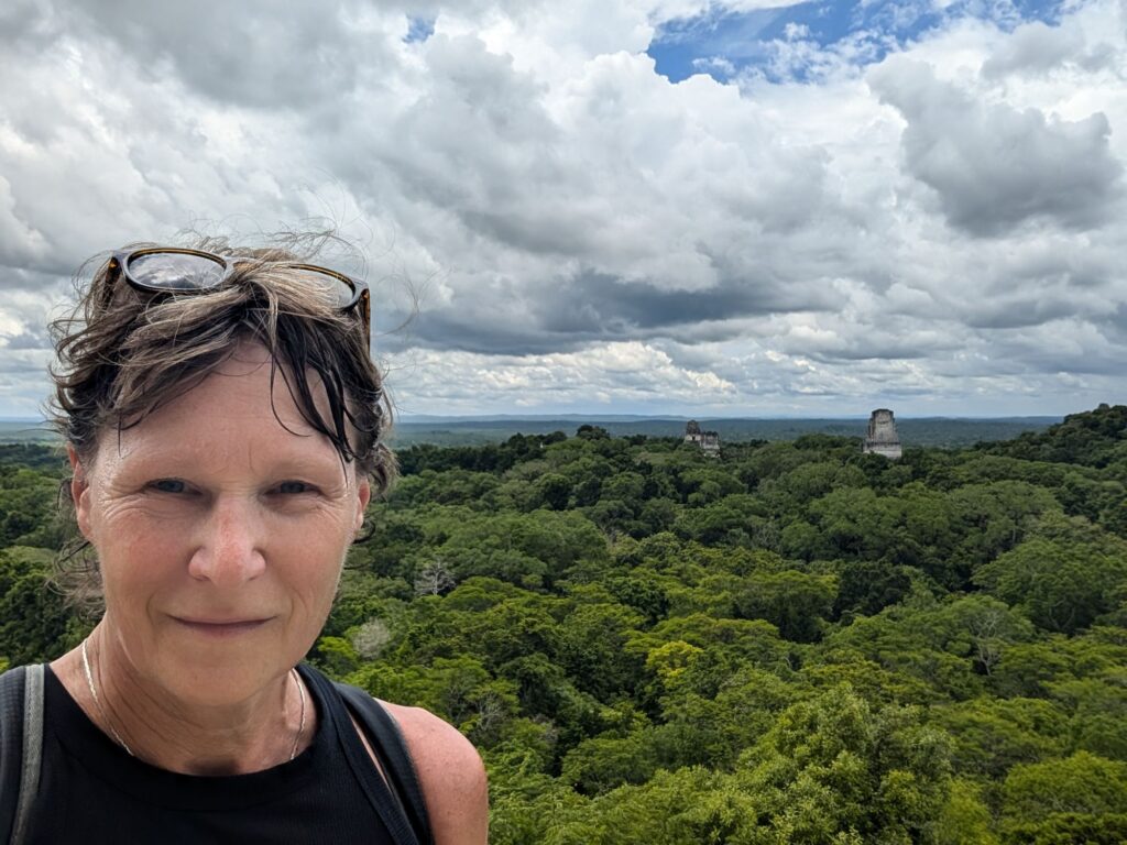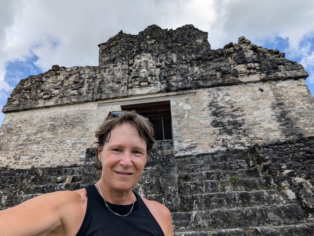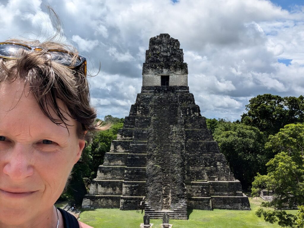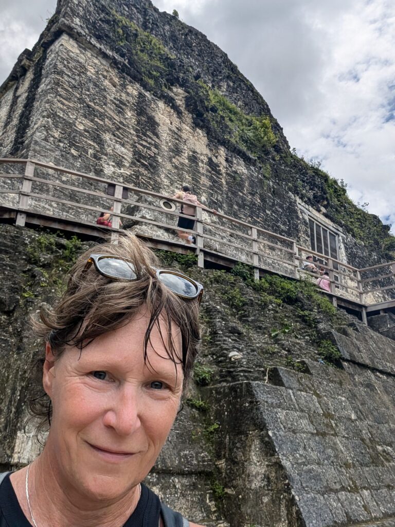 We climbed one of the pyramids directly. I learned not to go straight up in a line but to zig zag as you go up. It helps especially if you have big feet.