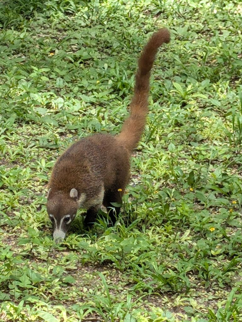 While we were walking through the site, we saw howler and spider monkeys, birds, and an agouti (like a raccoon).