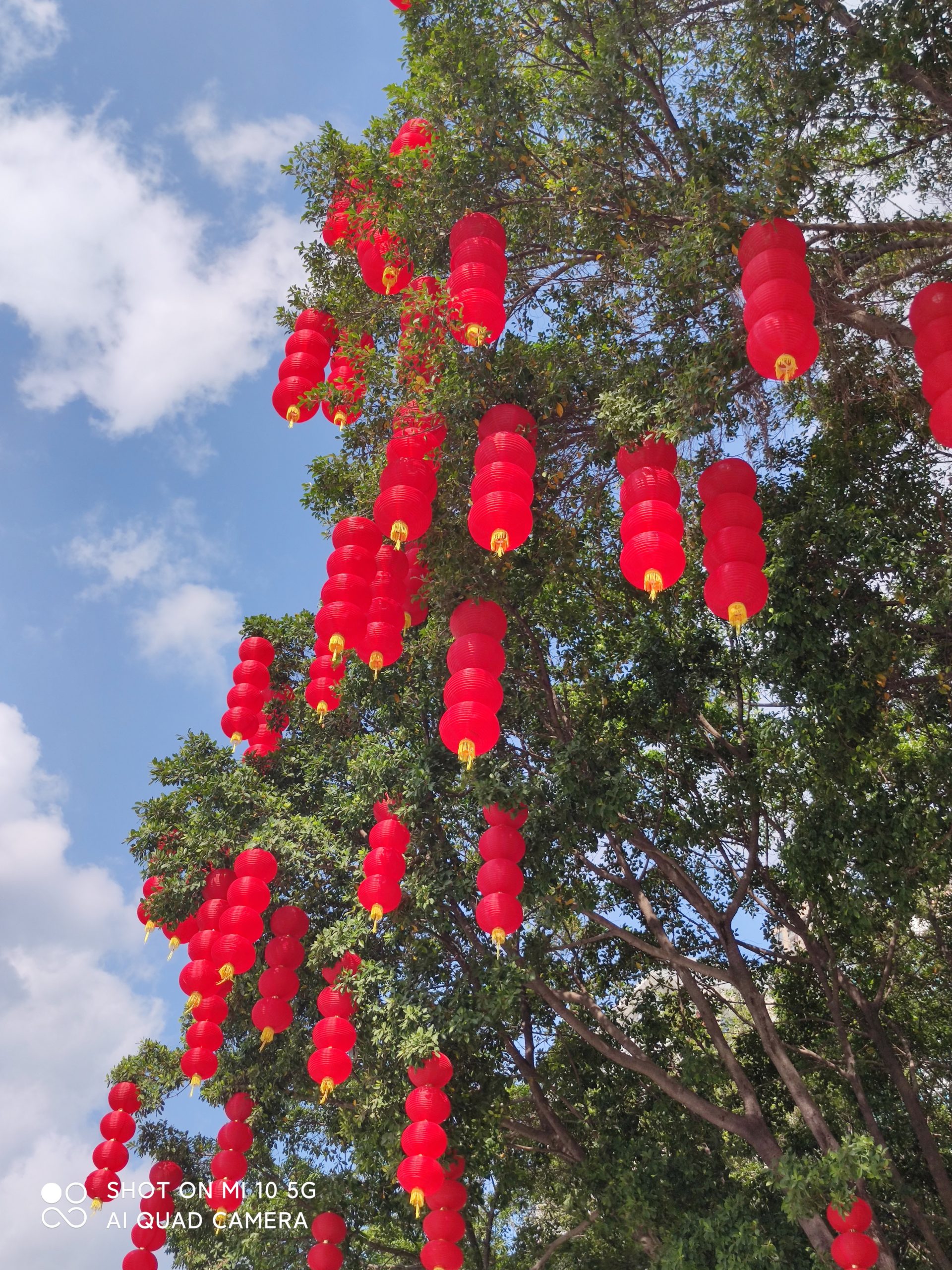 Chinese lanterns in the tree near the train station.