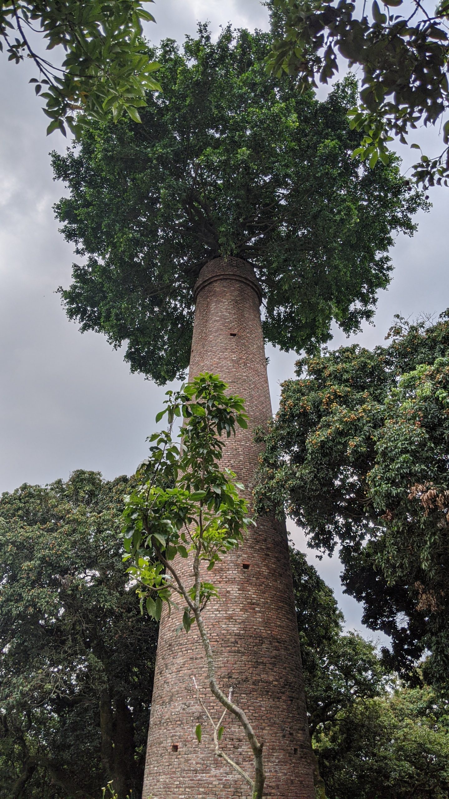 We passed through several villages. At one, there was an old factory that had a chimney. A banyan tree started growing at the top and it was considered bad luck to remove it. When the factory was abandoned the village decided to keep the chimney as the tree was growing roots through it to the ground.