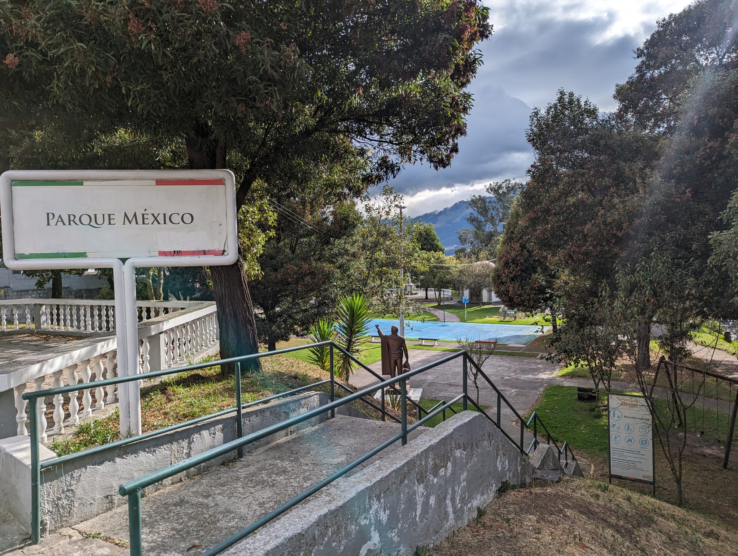 People in line for registration to vote This vendor at Mercado Iñaquito had bulk dried goods and even refillable bottles for natural laundry detergent.Inside Mercado Iñaquito.This park is named after the Machalilla culture that over inhabited the area for 3000 years. There is a statue honoring the founder of modern day Turkey.This park has outdoor sports facilities and great places to walk around.