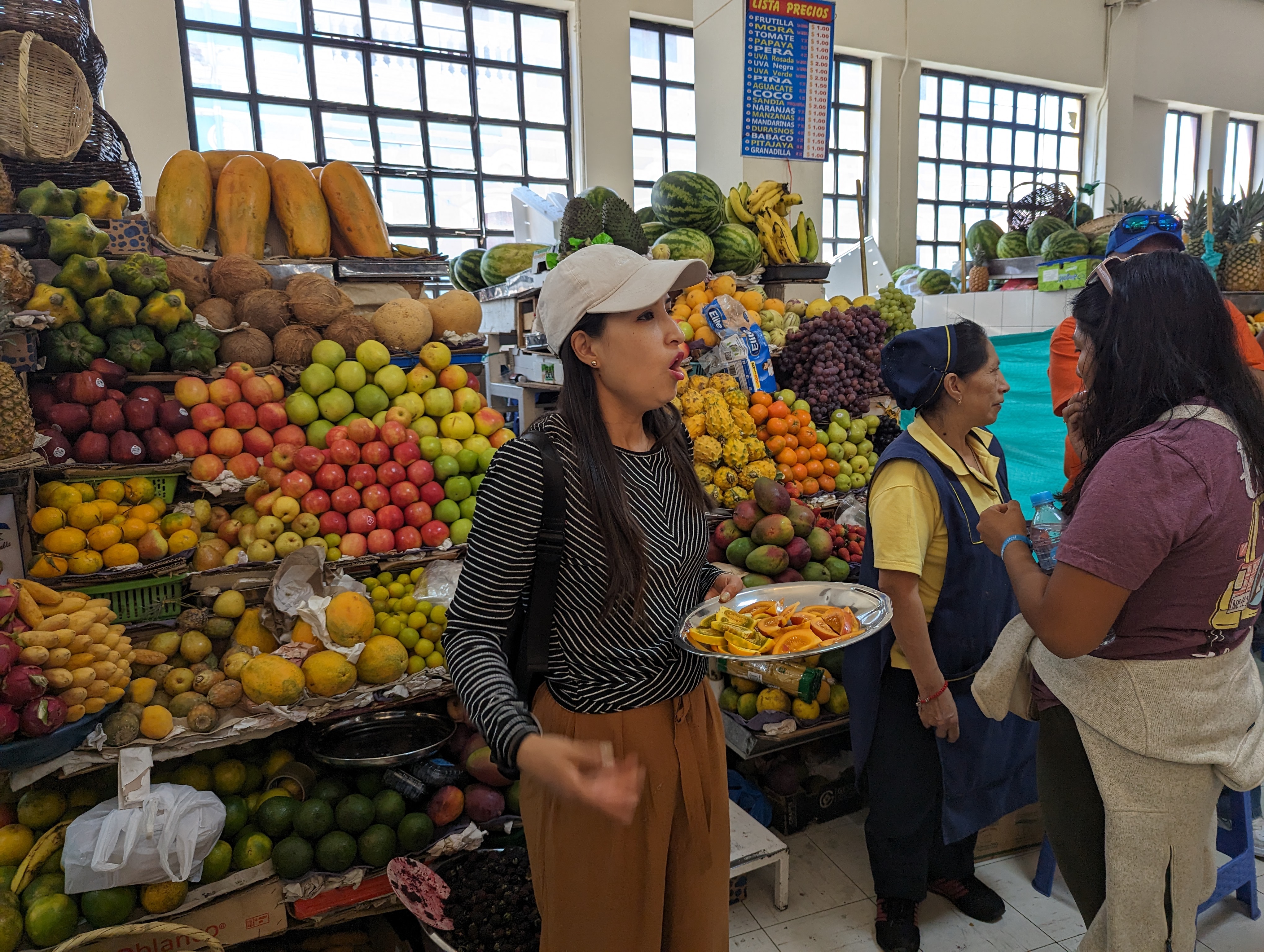 The first stop was in the market to try various fruits from Ecuador including yellow dragon fruit (Pitaya), golden berry, passion fruit, and others.