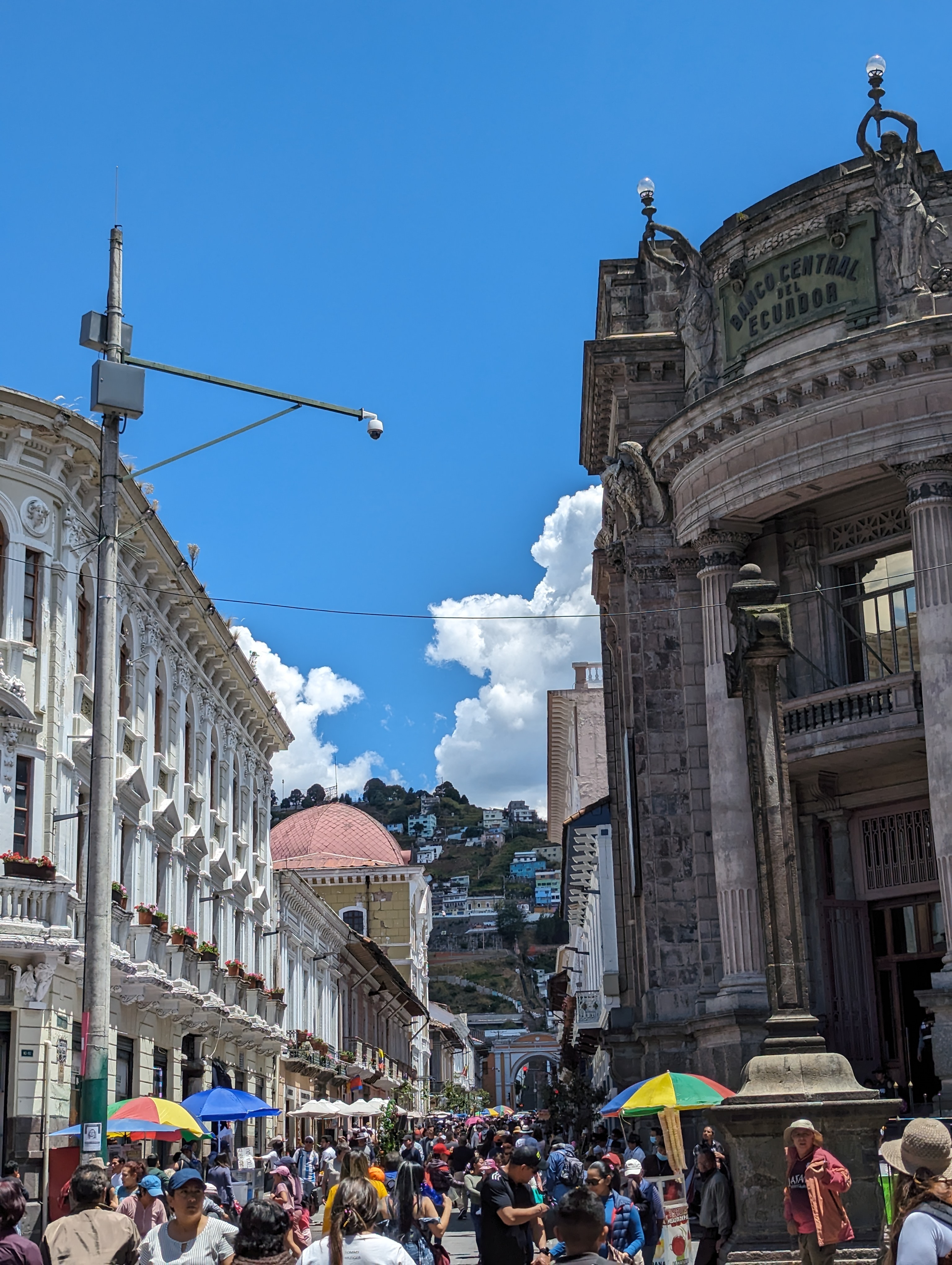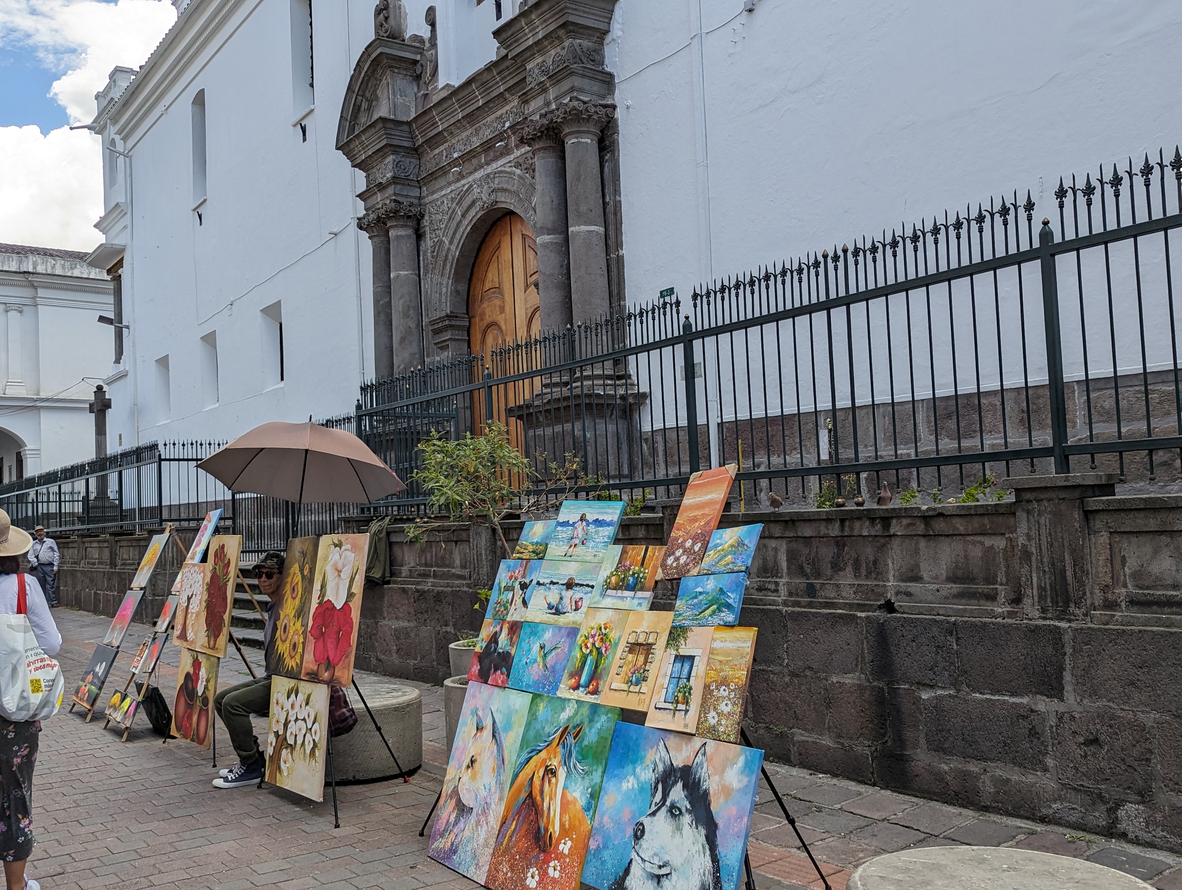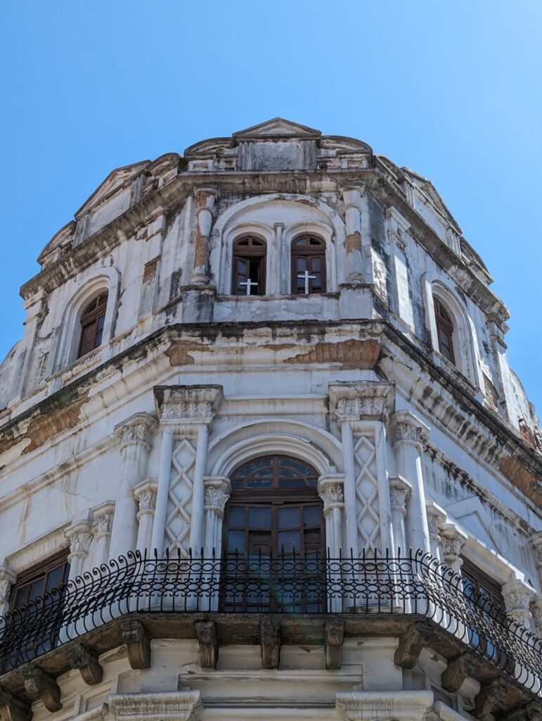 Church of the Society of Jesus. This is one of many churches along this street. Cross outside of the church.Museo numesmatico – this used to be a bank and now it’s a museum showing the evolution of Ecuador’s monetary system.Iglesia de Santo Domingo.