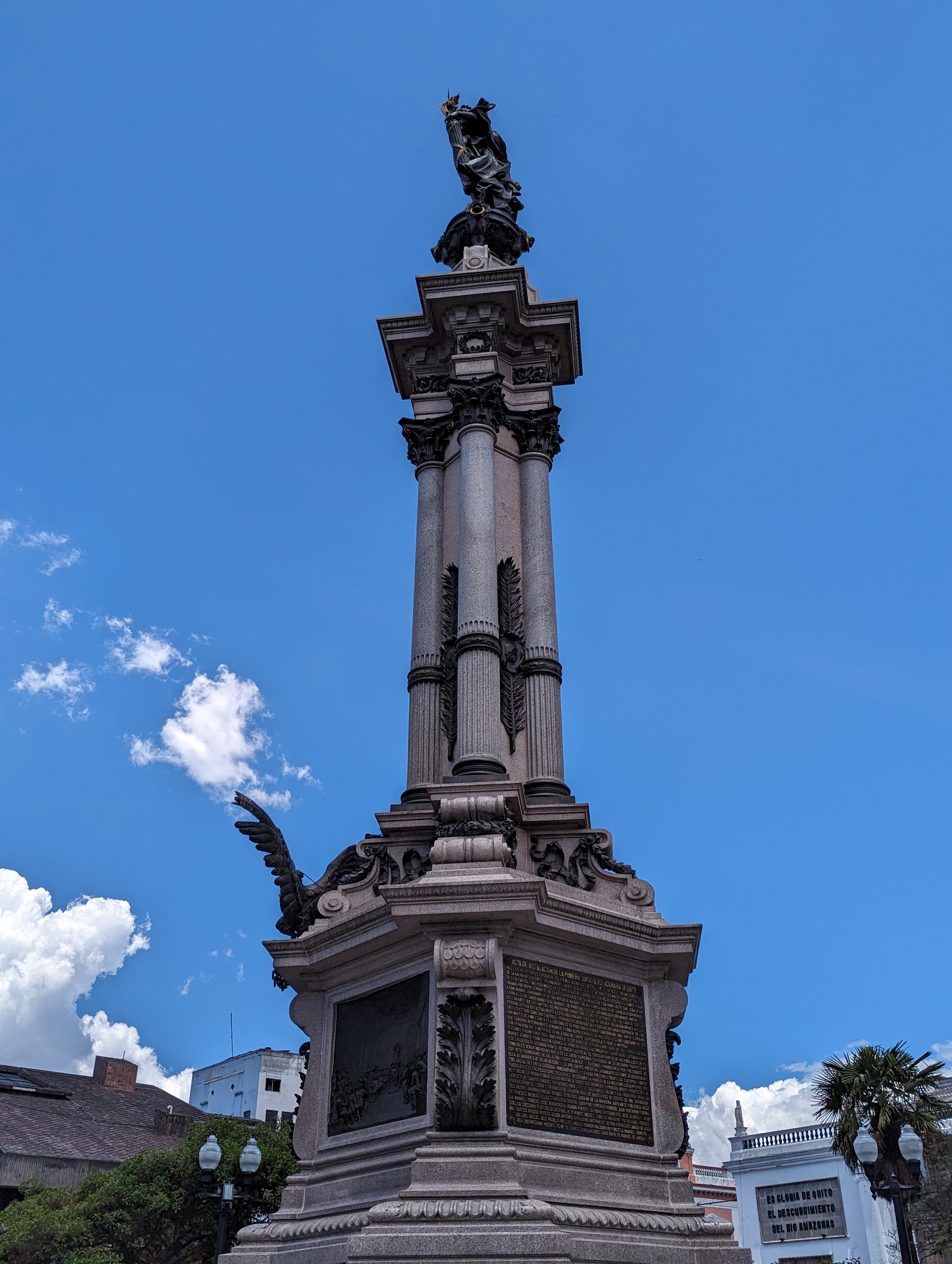Statue honoring those who fought for Independence Carondelet Palace at Independence square is the seat of the government in Ecuador.