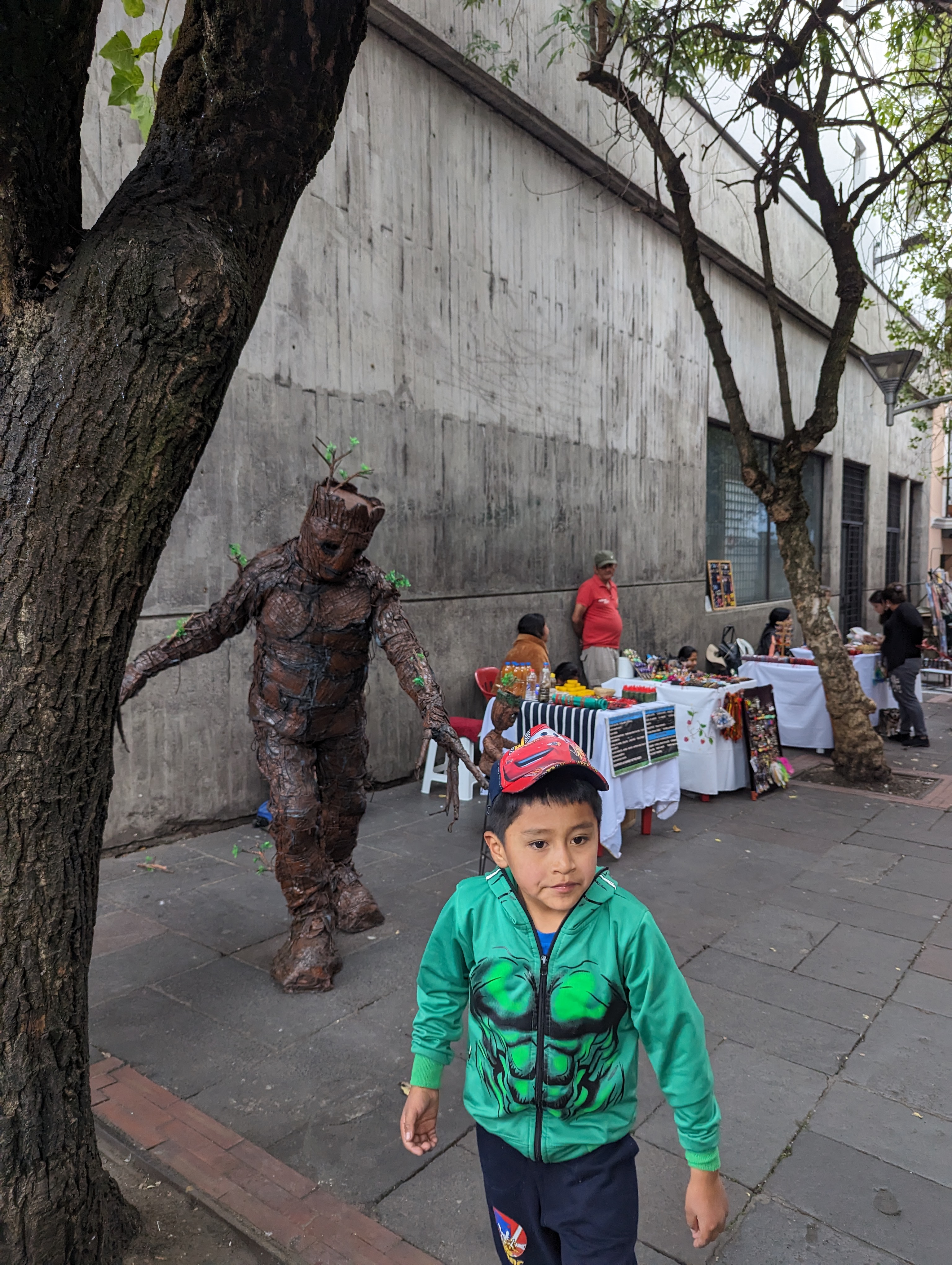 Besides artisans and street vendors, there were some dressed up as characters. Here Groot from Guardians of the Galaxy is having fun with a small child.