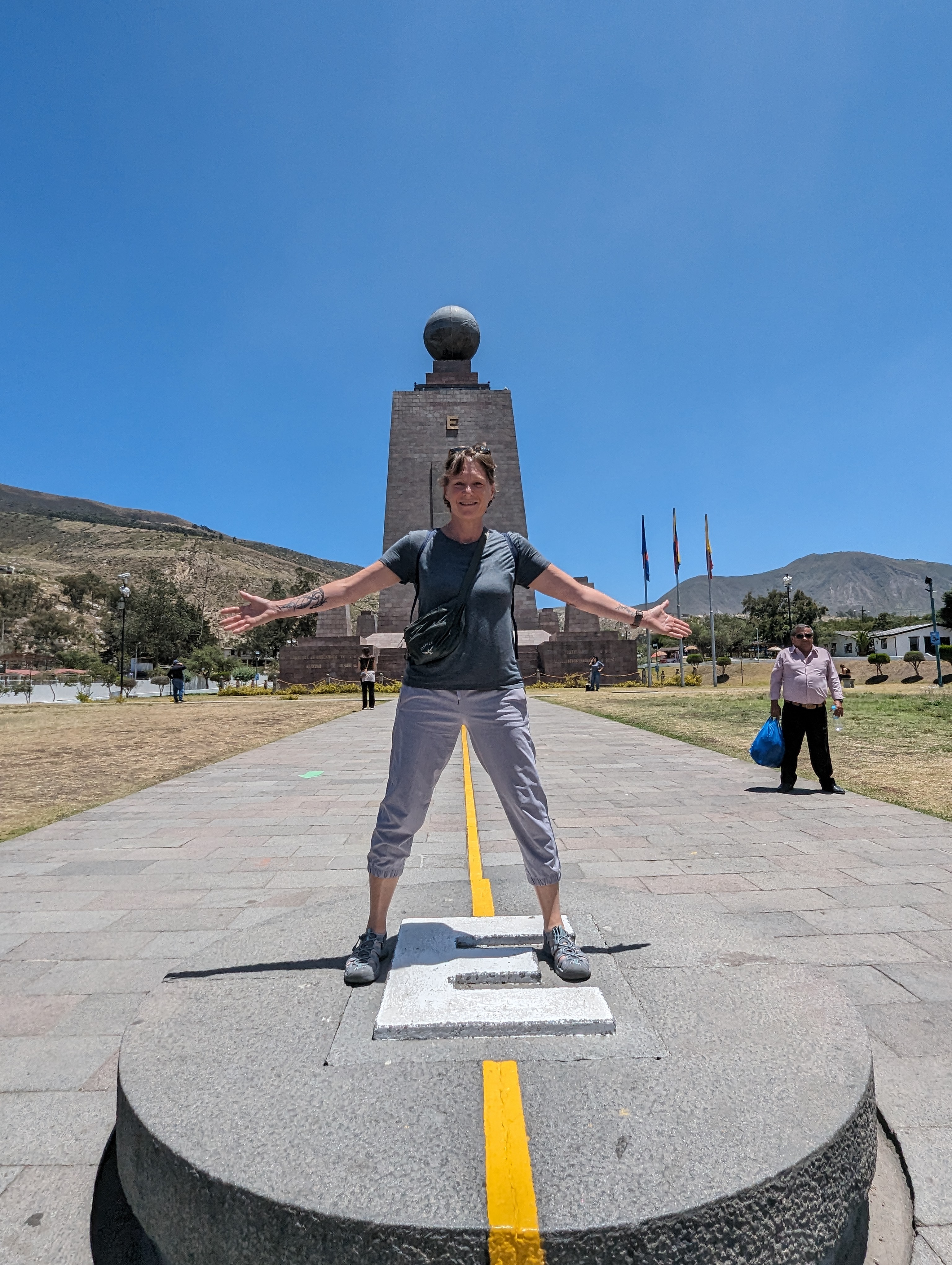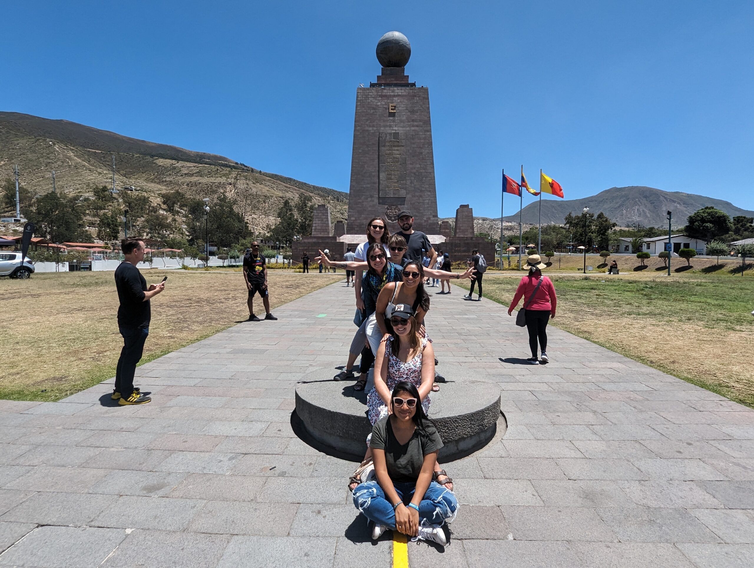 Such a beautiful weekend, a bunch of us decided to go to Mitad del Mundo. Well over 100 years ago explorers sought to find the middle of the world (or halfway between the poles) In 1932 a monument was erected in that spot. Unfortunately, now with GPS, we know they are off a little bit. But the site still stands and you can (technically) put your feet on each side of the equator.