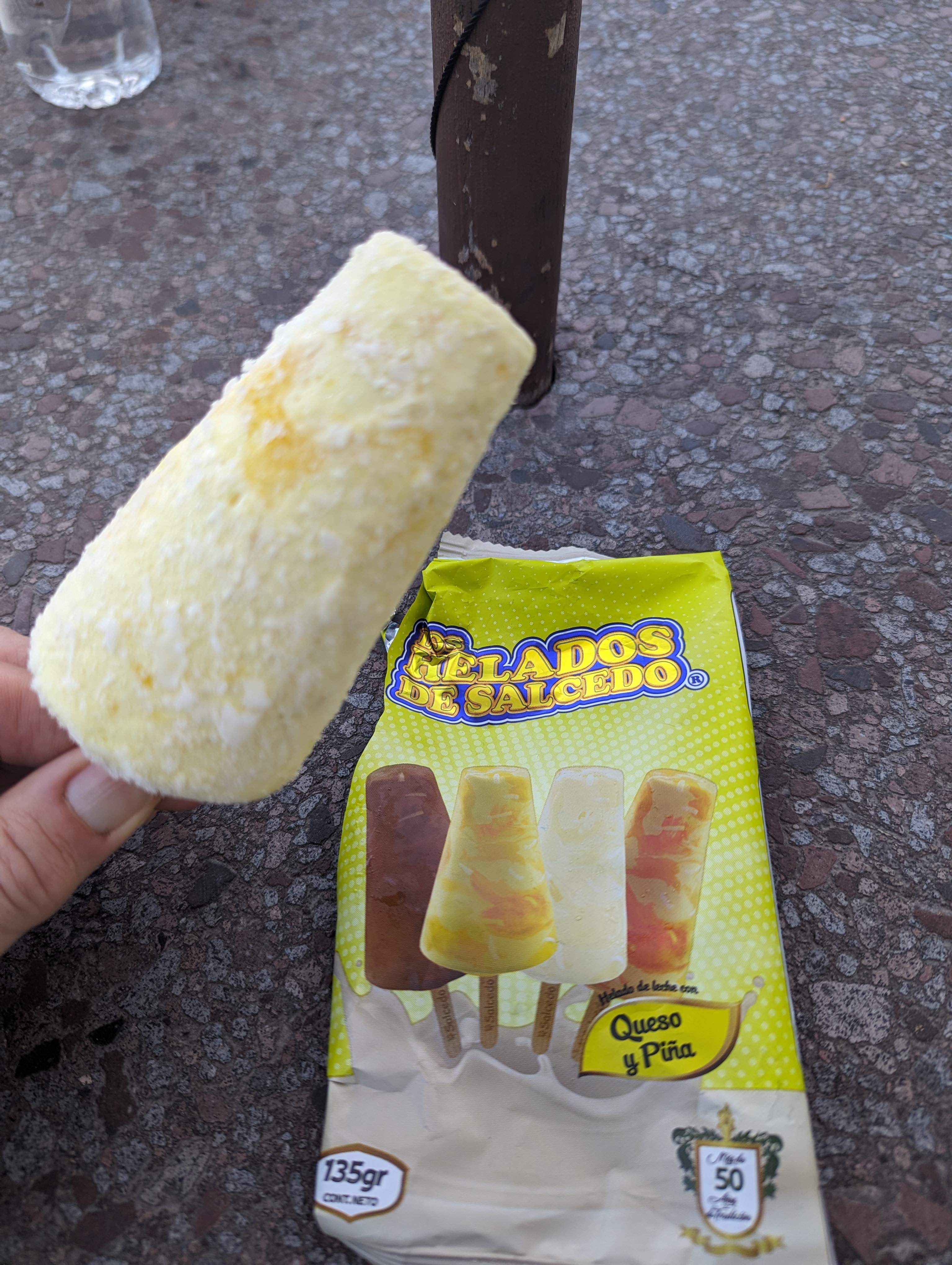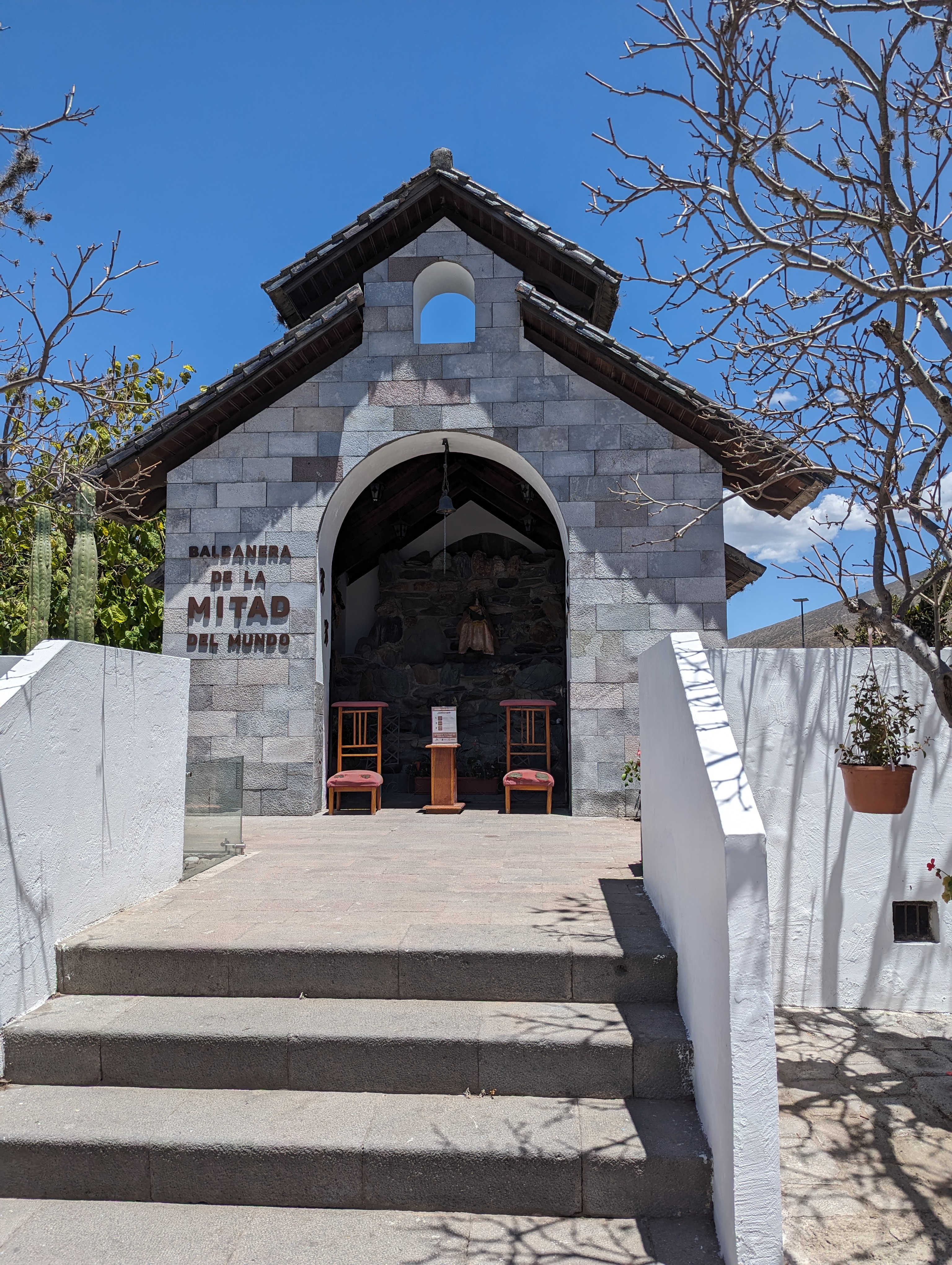 Different neighborhood on the way to the site.Another neighborhood.Standing on each side of the equator.I’m facing east with north being to the right of the picture and south to the left.Inside is a museum of history of Ecuador and a great view from the top.A view down where we were just standing.This is the west side. the O stands for Oeste which means west in Spanish.View from the top.In the distance you can see a snow capped mountain near the middle of the picture and surrounded by clouds. That is the Cotopaxi volcano and is south.I will try many different flavors of ice cream. This is cheese and pineapple. It tasted more like pineapple but with the saltiness and texture of cheese in it.