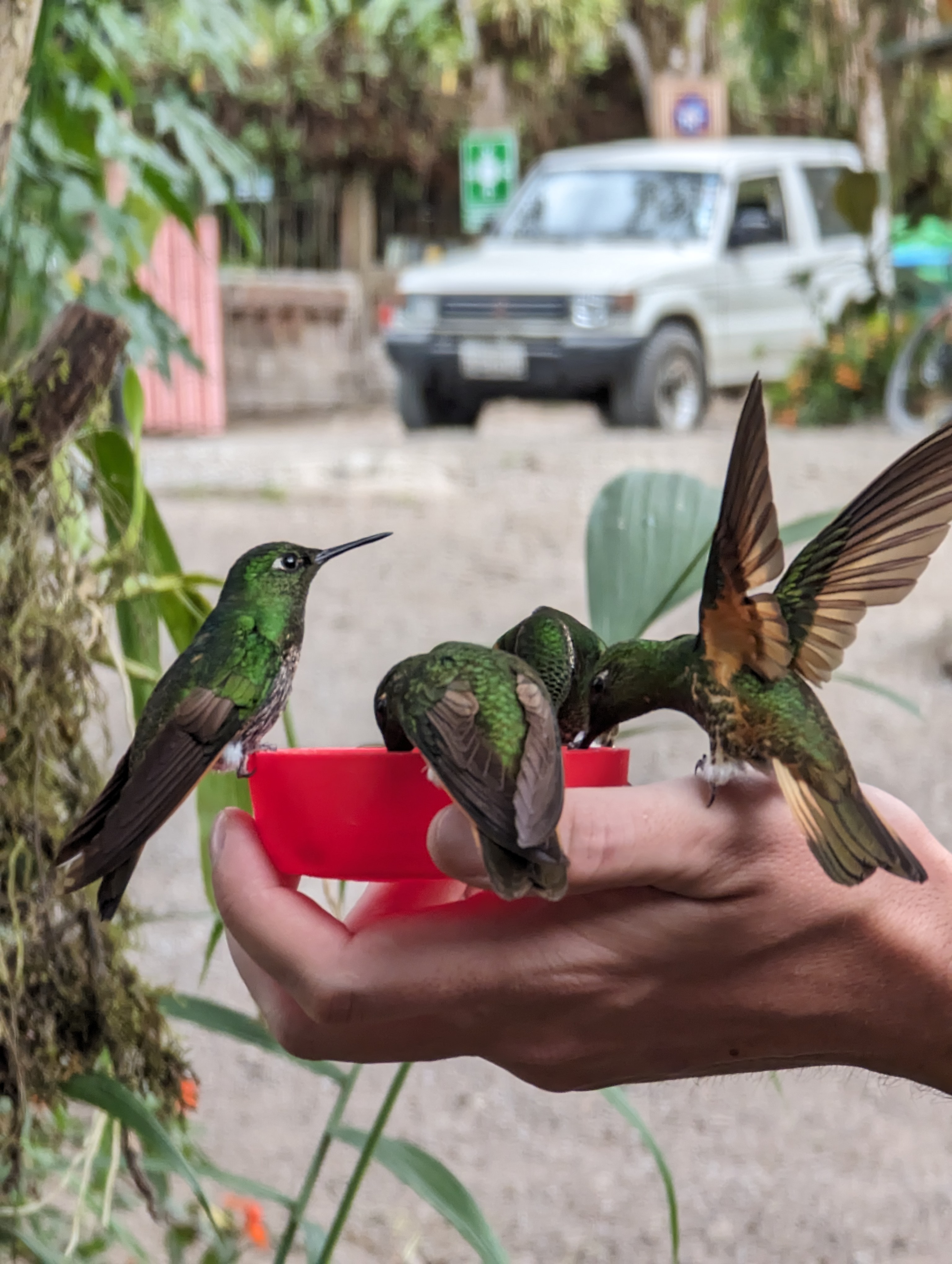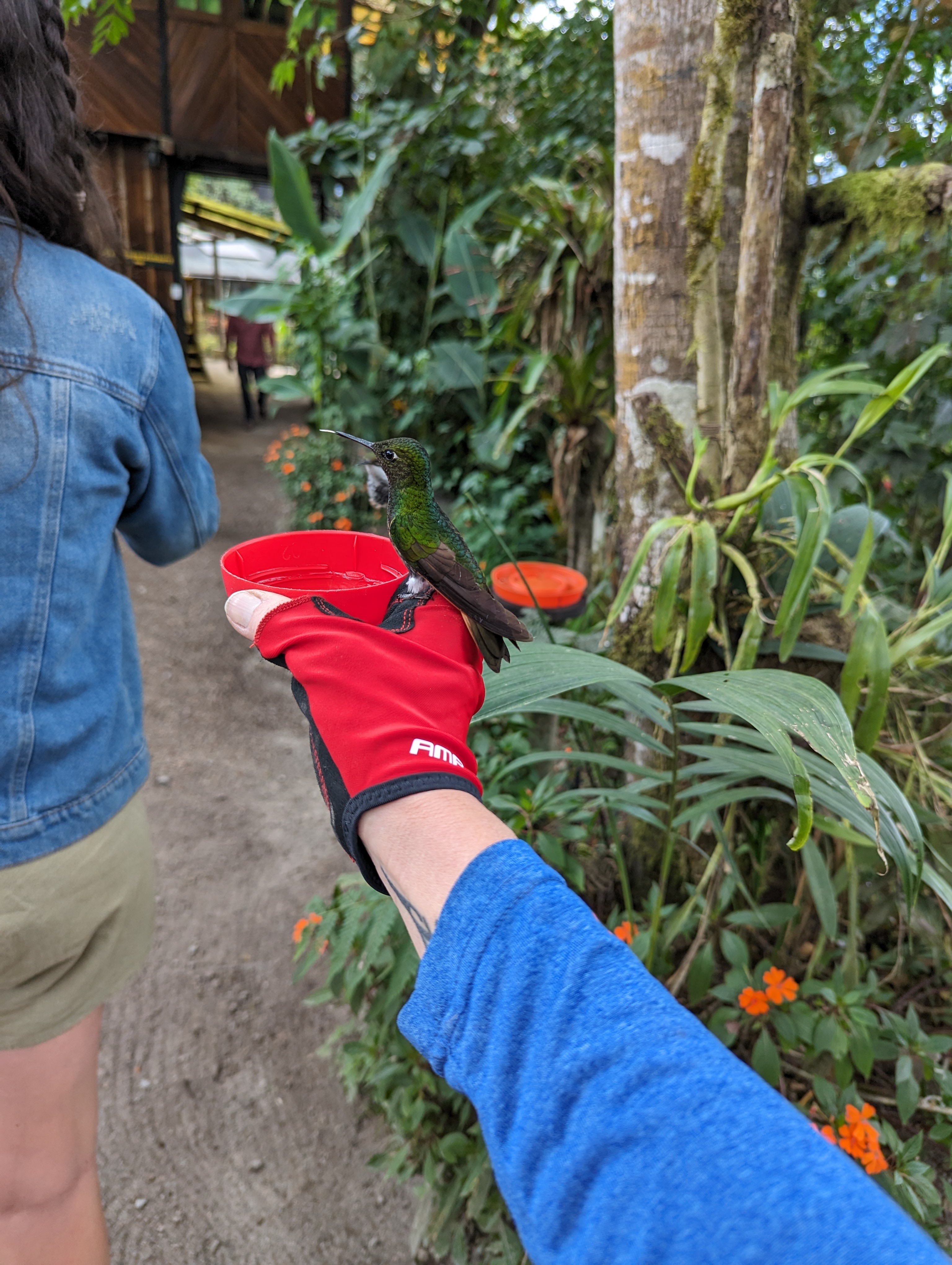 The hummingbirds were amazing.They loved my red gloves.
