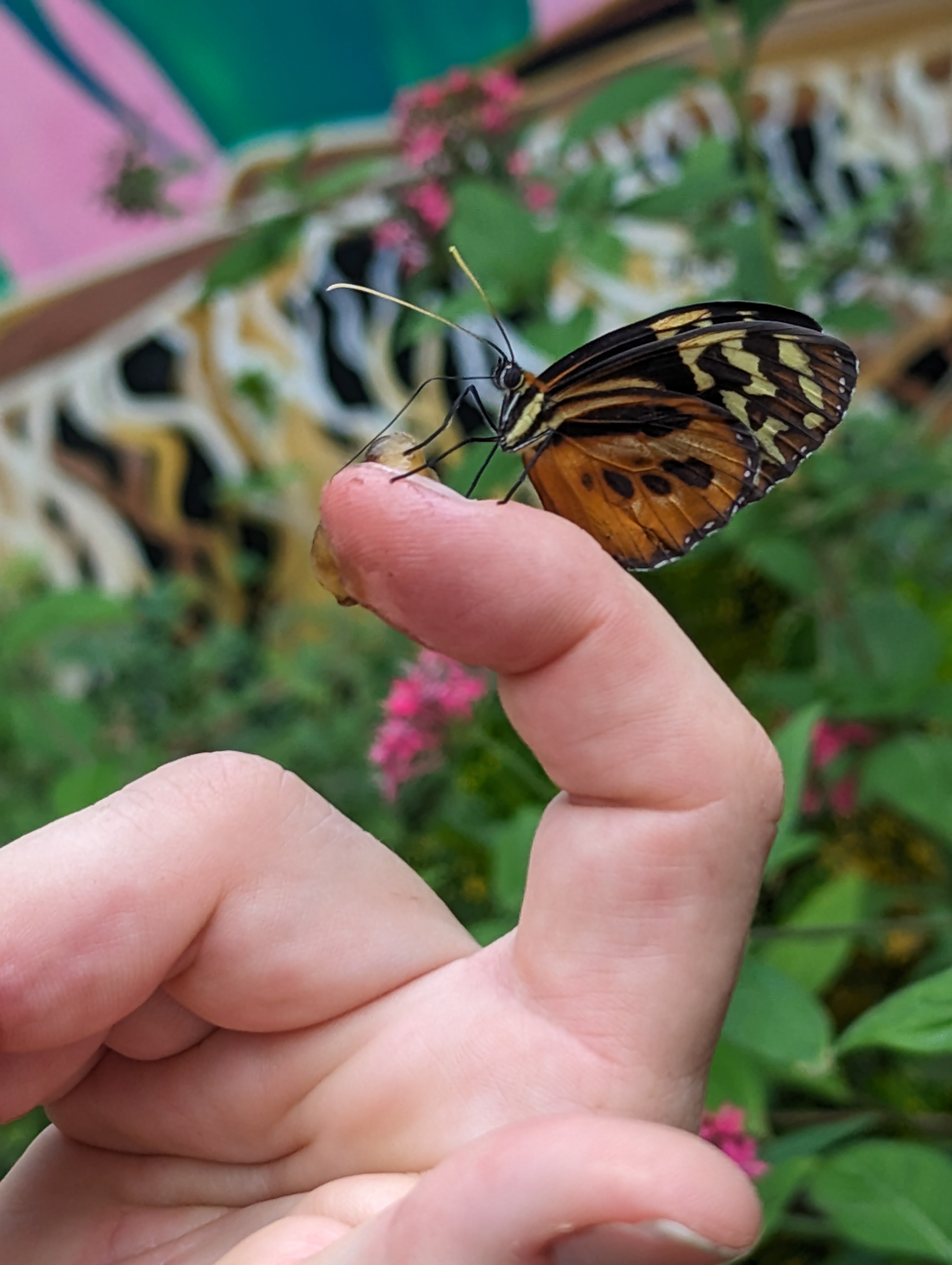 Those little flashes of blue on the left side were very beautiful and active blue butterflies. Live music in the park. I danced some salsa with him before boarding the bus back to Quito.More flash of blue at the door. They did not alight anywhere during our stay.One butterfly that just emerged from the chrysalis.