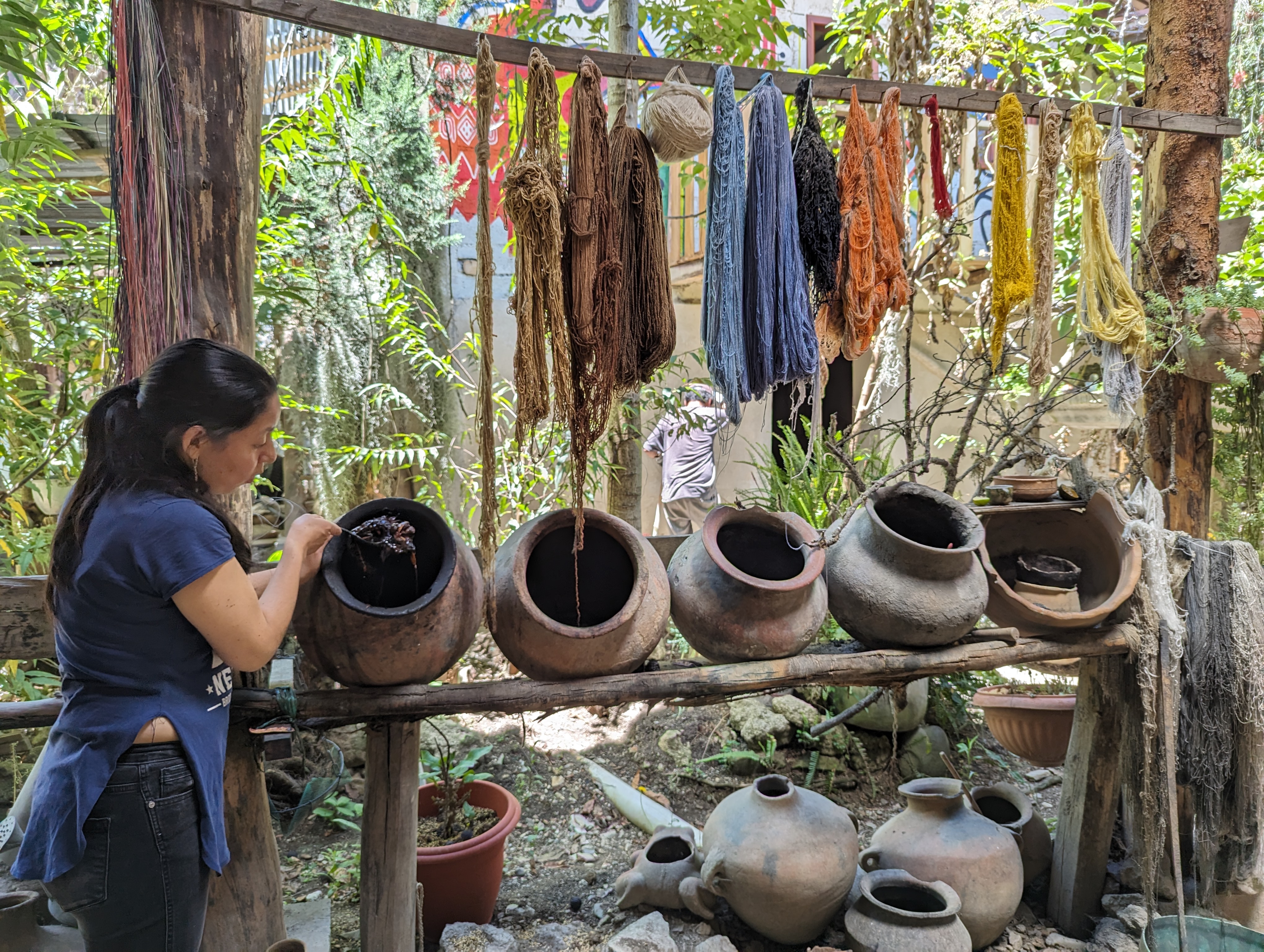 On the way to visit various towns outside of Cuenca, we stopped at a museum and exhibition of spinning and weaving. The spinning of the yarn uses a drop spindle similar to what I’ve used and seen. They also color the yarns similarly as other places of the world.
