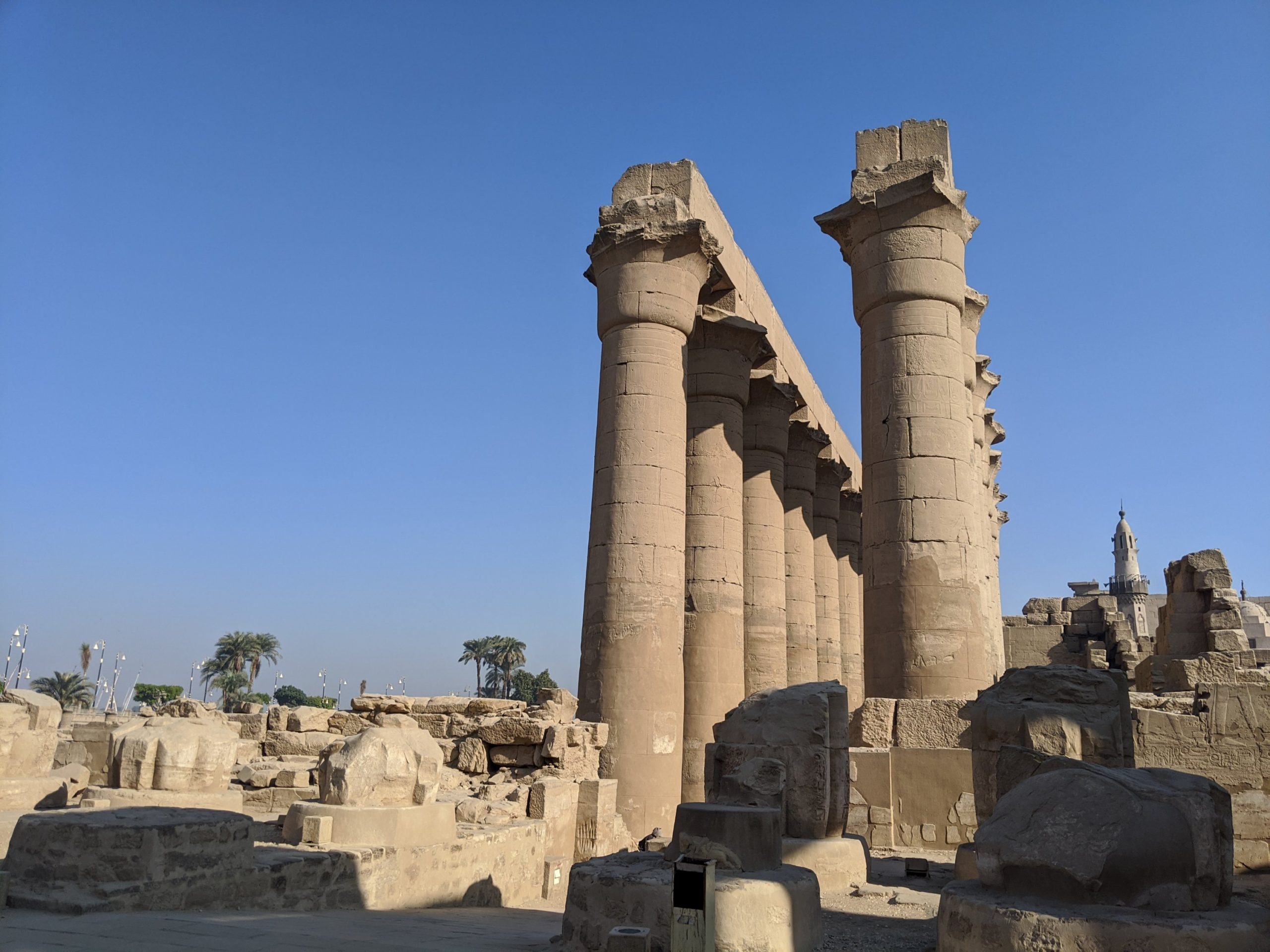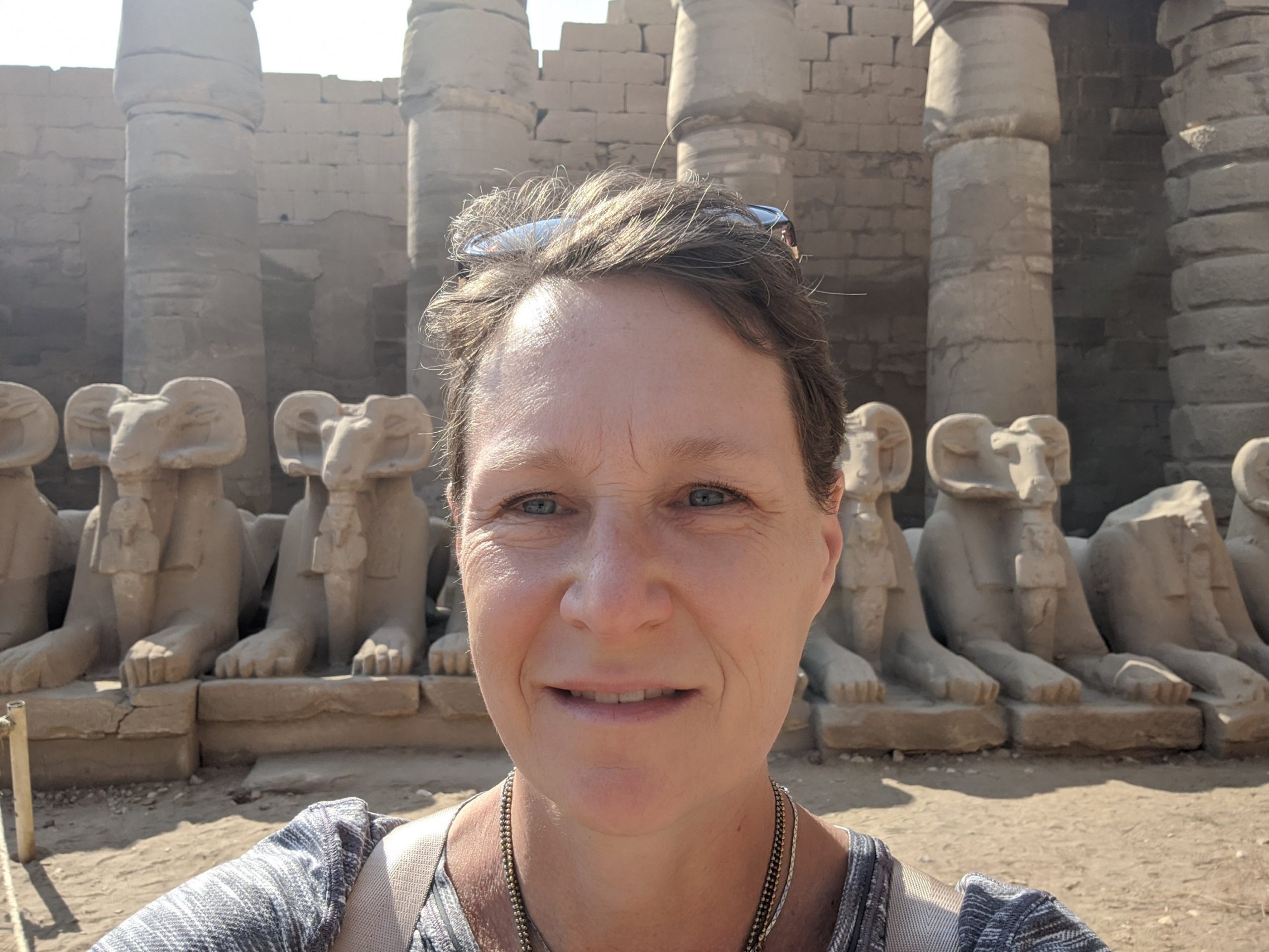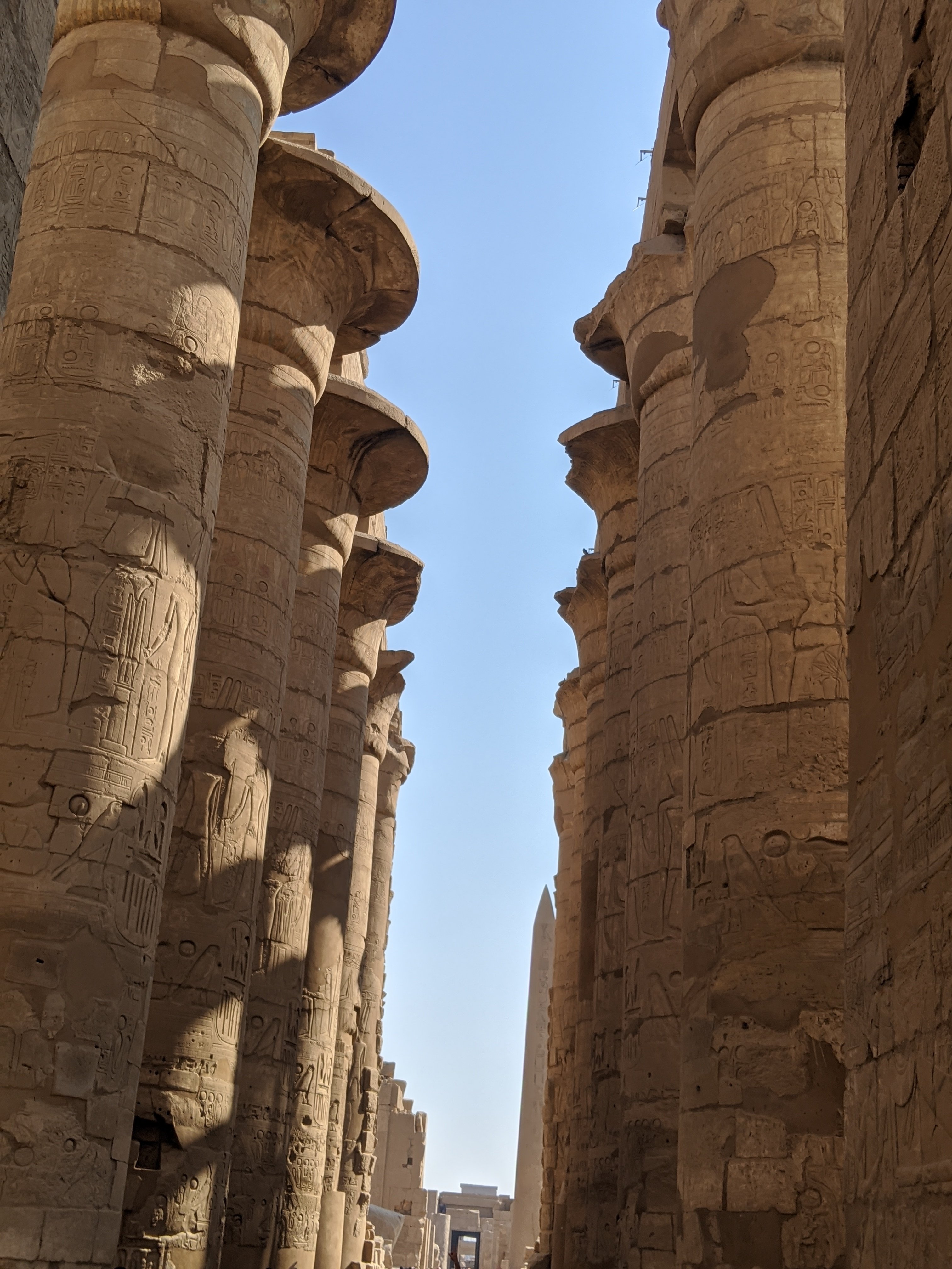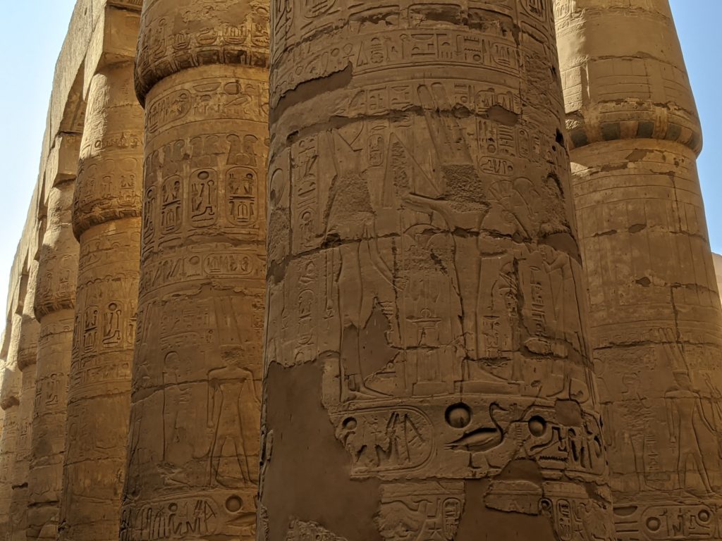 The Karnak temple complex is also on the east bank of the Nile about 2k away. It means fortified village. 30 pharoahs contributed to the building over a long period of time which is evident when you travel through it from the front to the back as the styles change along the way.
