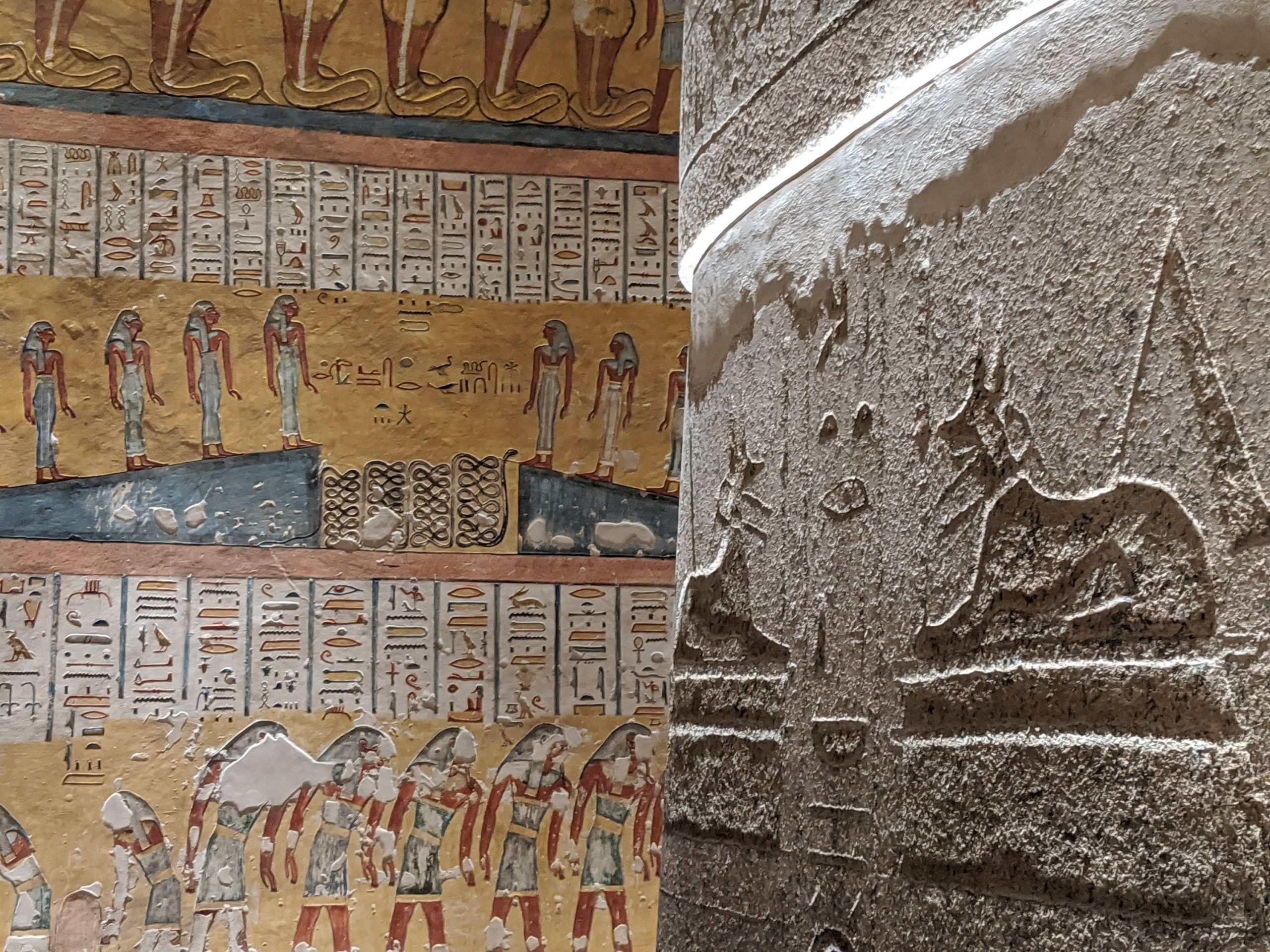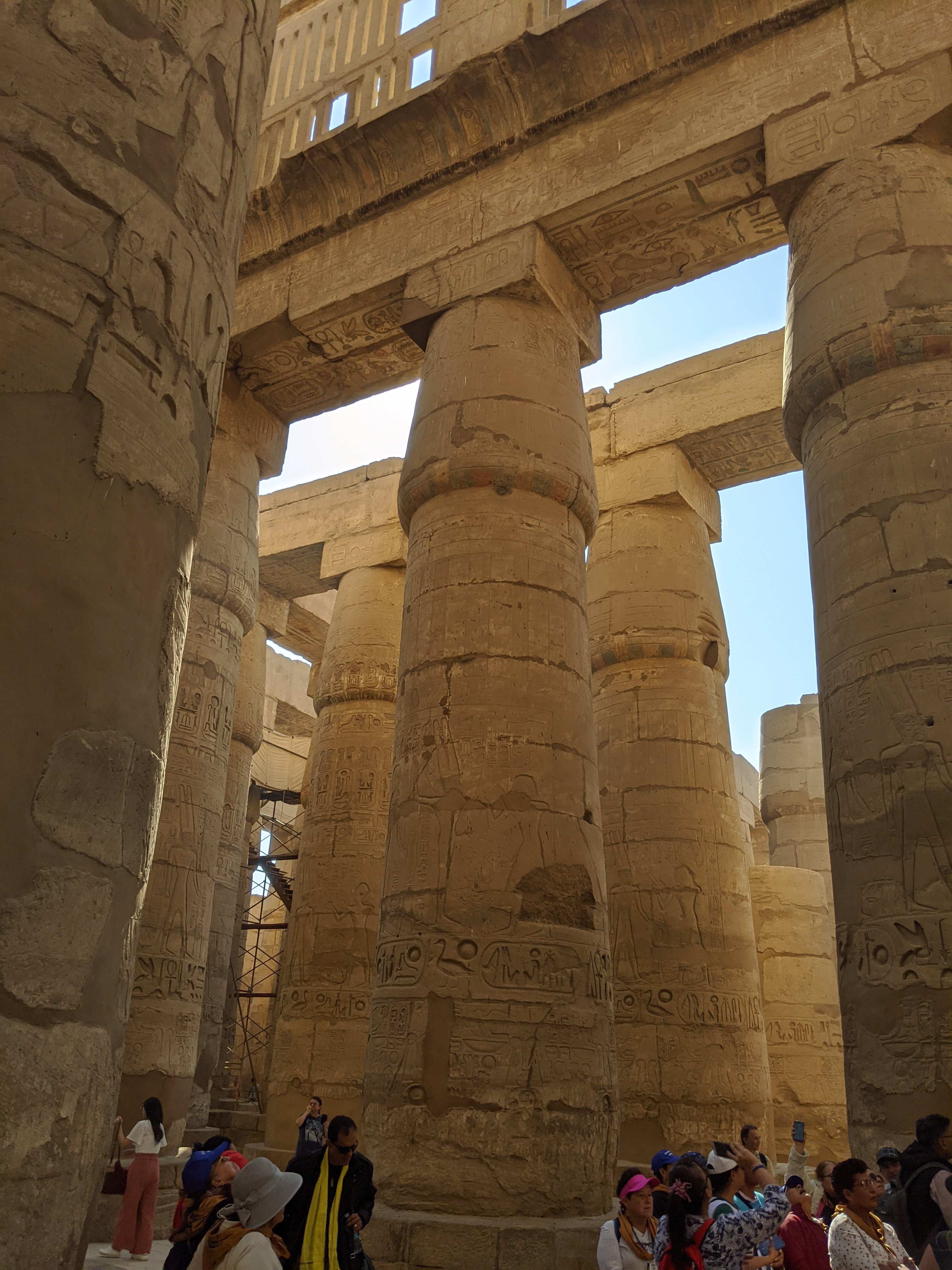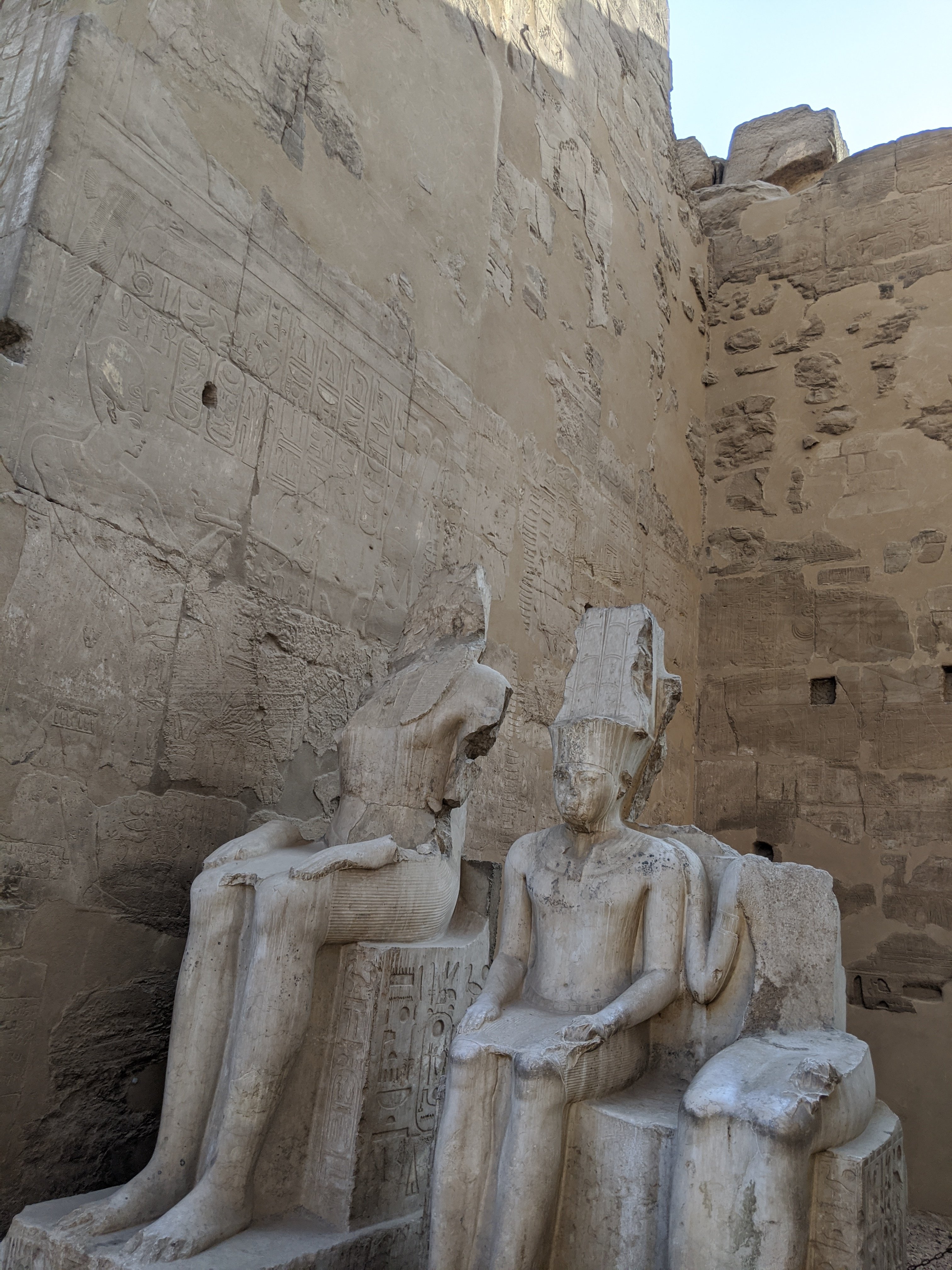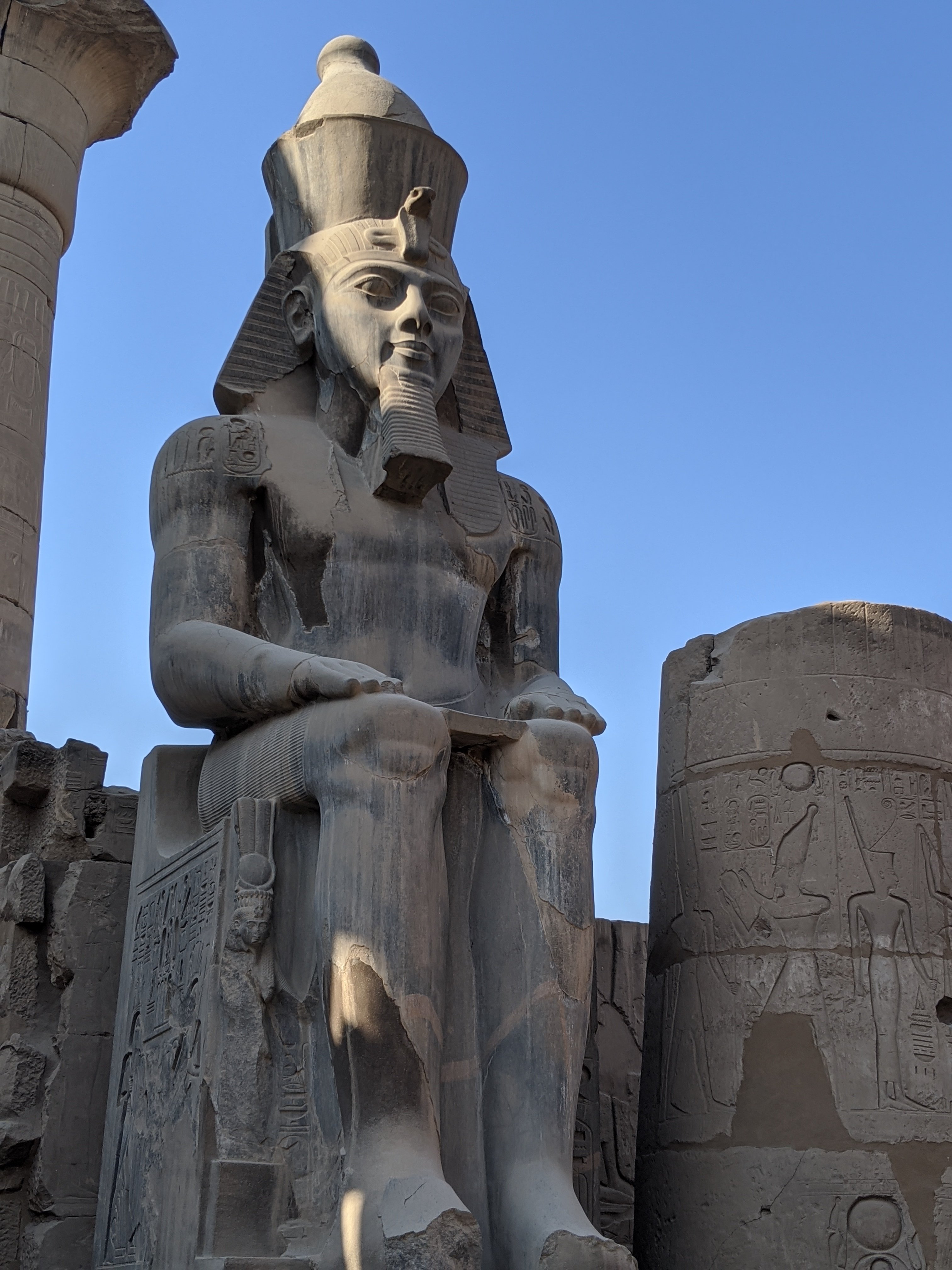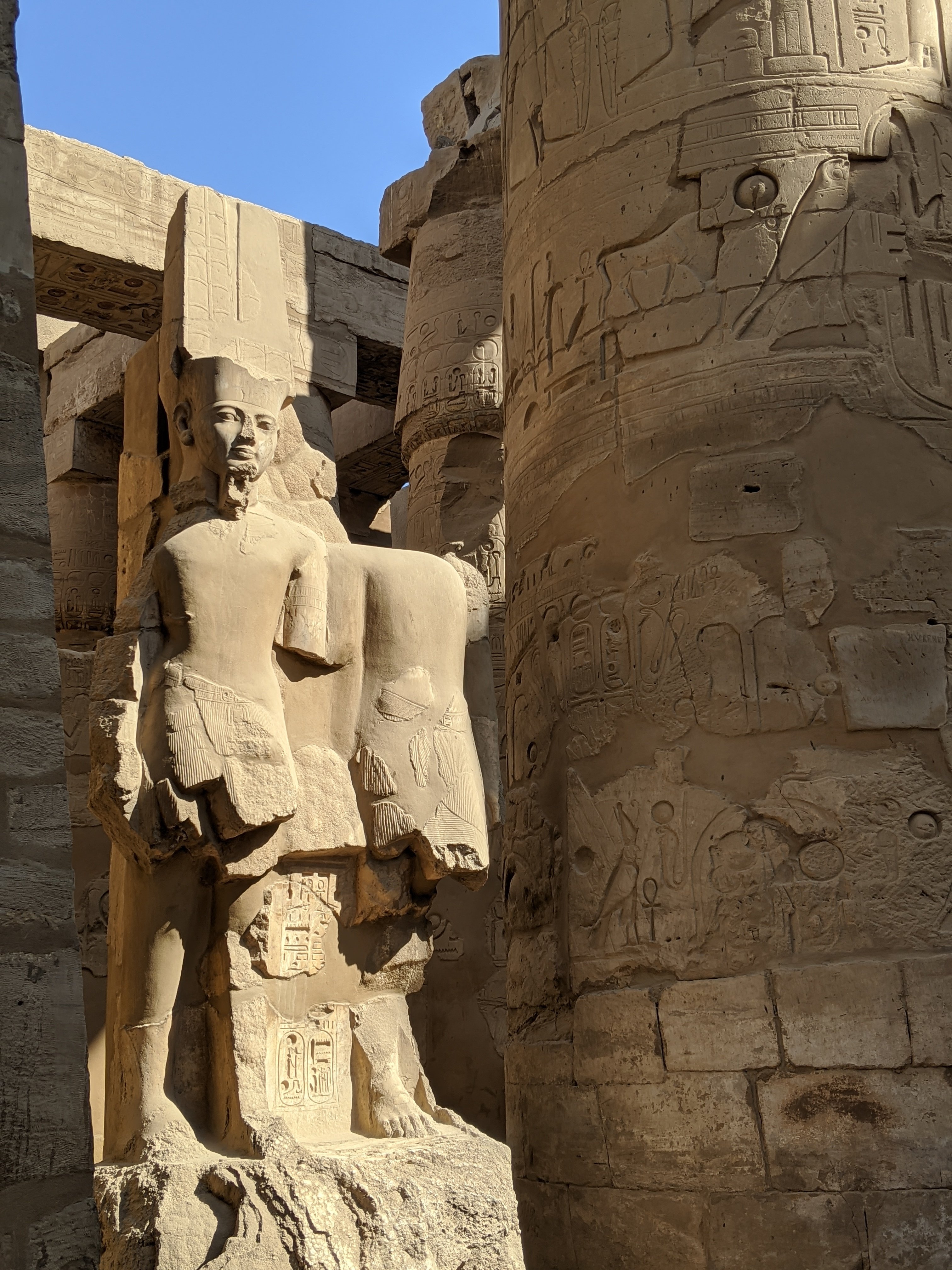 This area was covered in mud and sand to the top of these columns. During building in the area, these structures were found and excavation began.Ramses II. This statue is incredible.There are so many hieroglyphics it is overwhelming. To be able to touch something that is at least 4000 years old is impressive. The color that was used is original and impressive how color and detail is used.