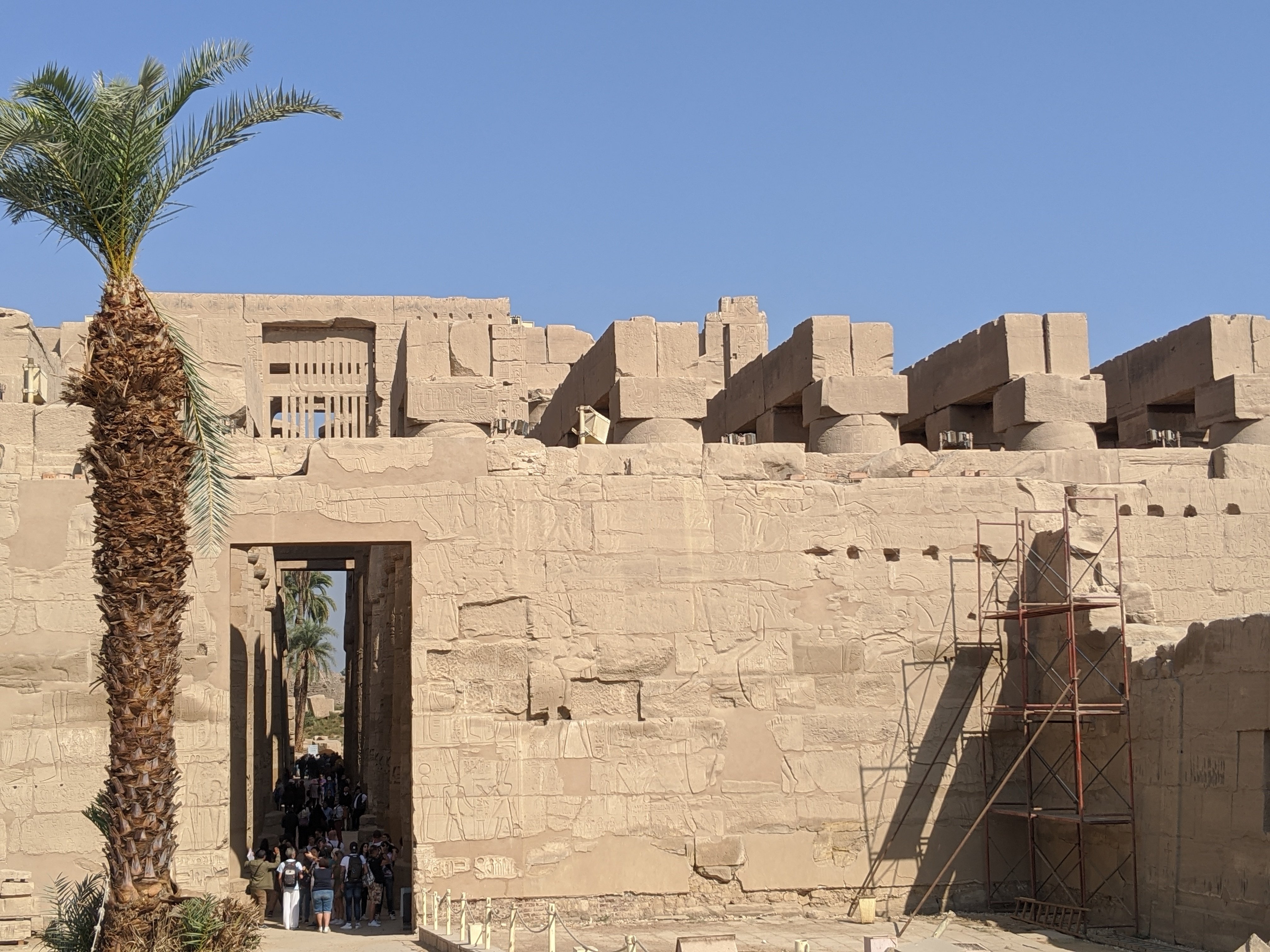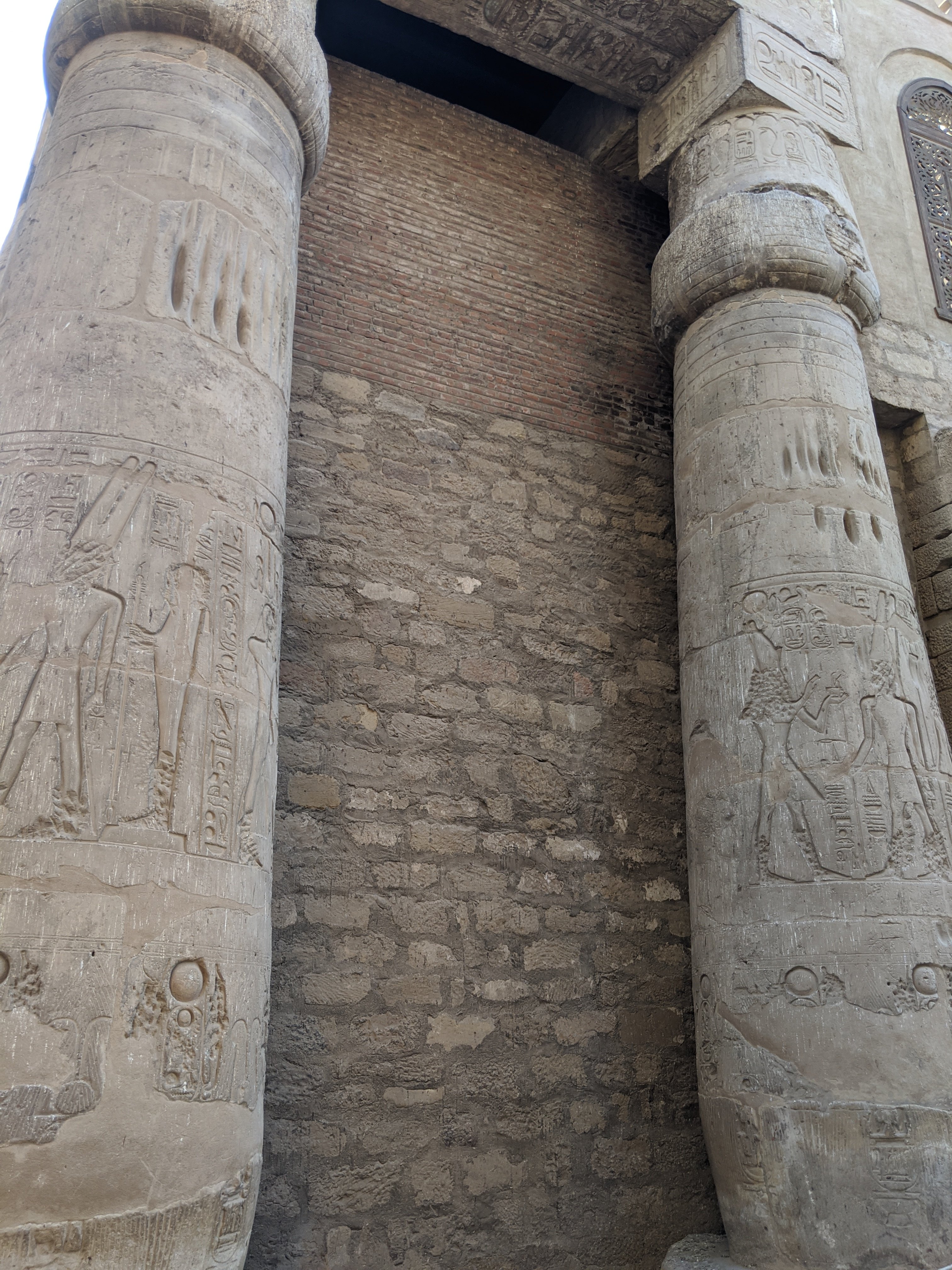 The colonnade of Amenhotep III which served as the original entrance to the Temple of Amun. The walls around it were built by King Tutankemun.
