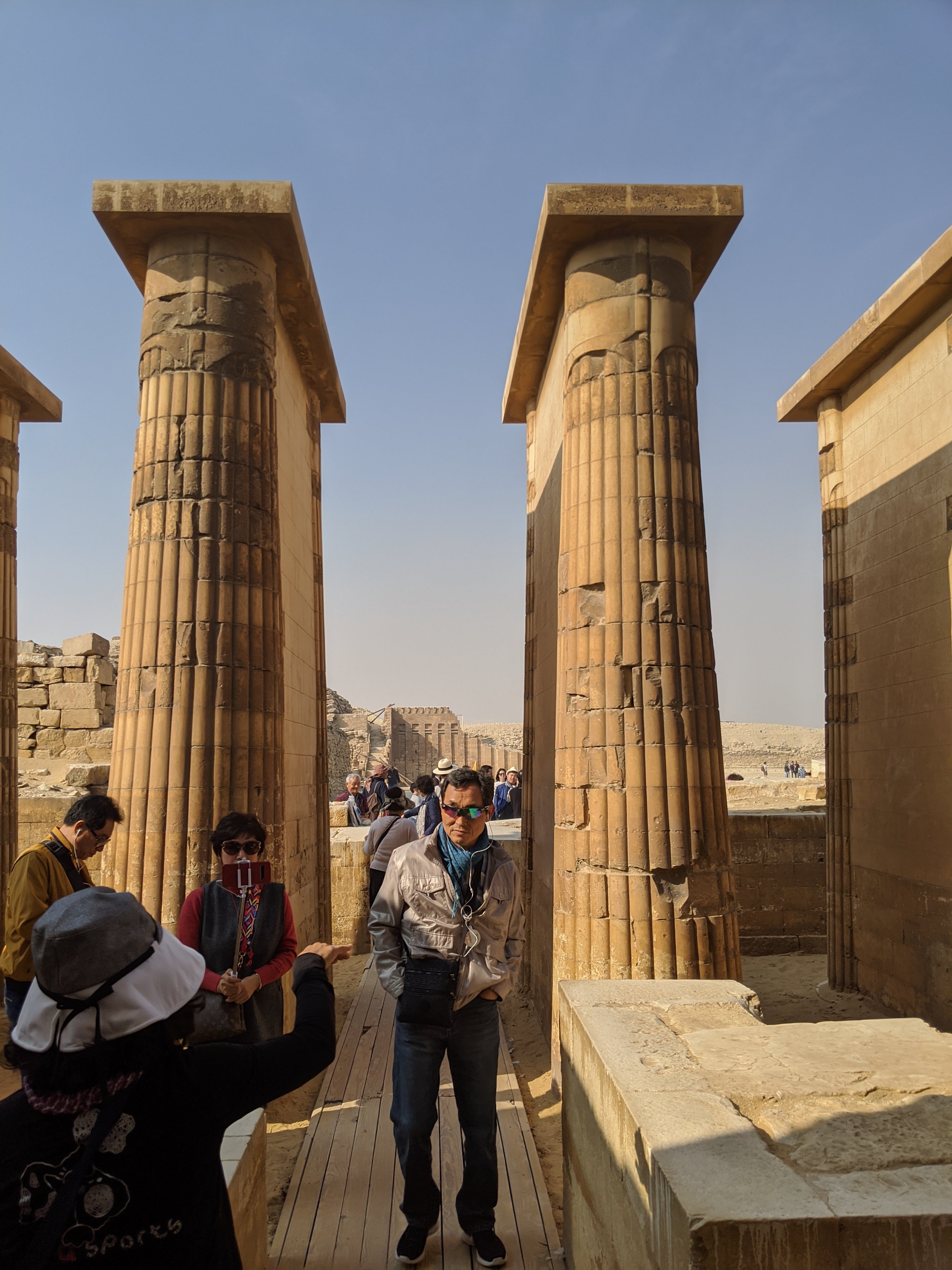 The step pyramid of Djoser. This pyramid was constructed for the pharoahs burial by Imhotep. It is there center of a large burial complex with many ceremonial structures.Nicole Reid and I.I really don’t remember what he said as I was seriously jet lagged. You must know that just because they are talking does not mean they are a free guide. If you pay them attention, you will need to pay them money so you might as well let them take your picture for you!
