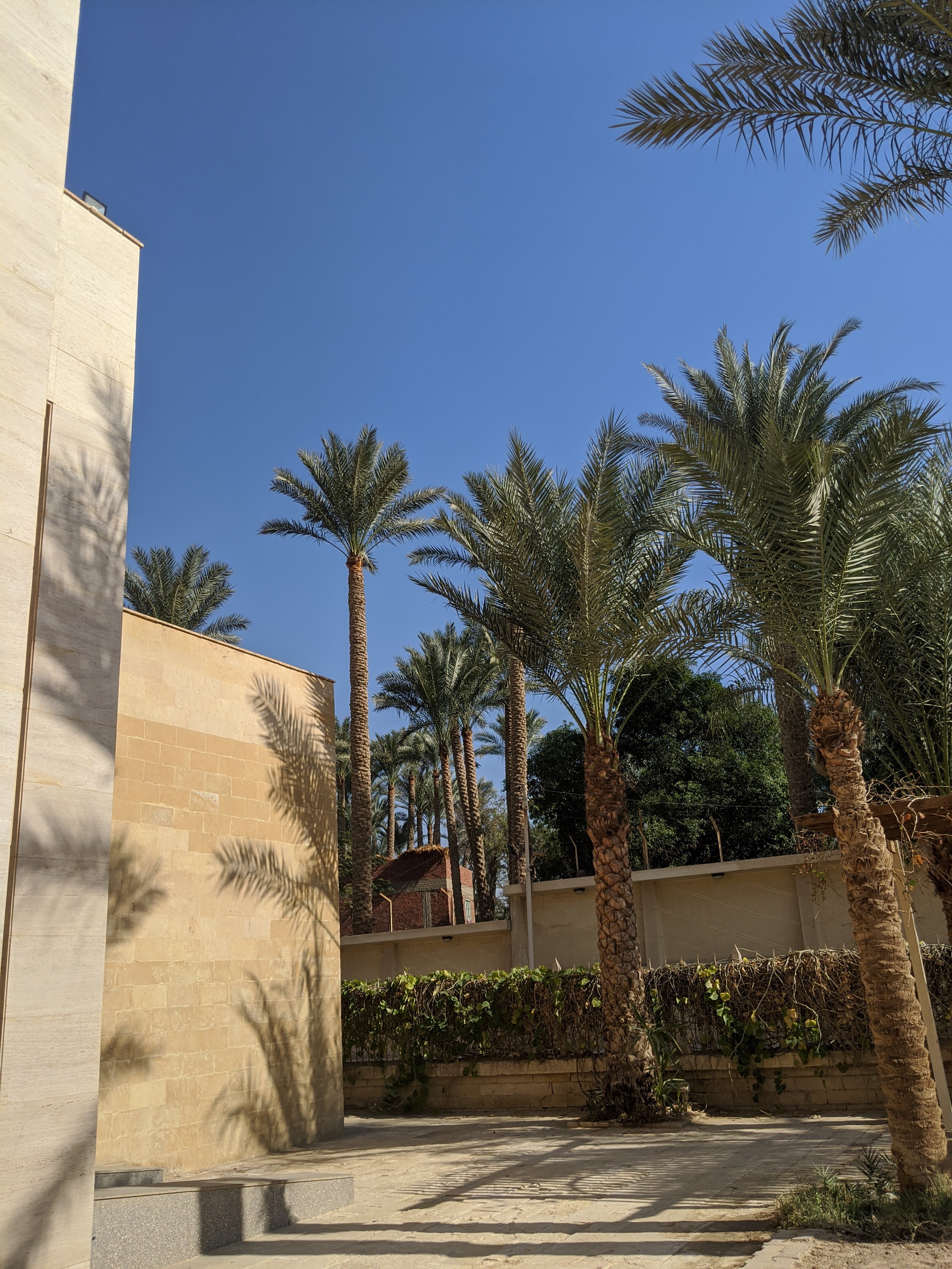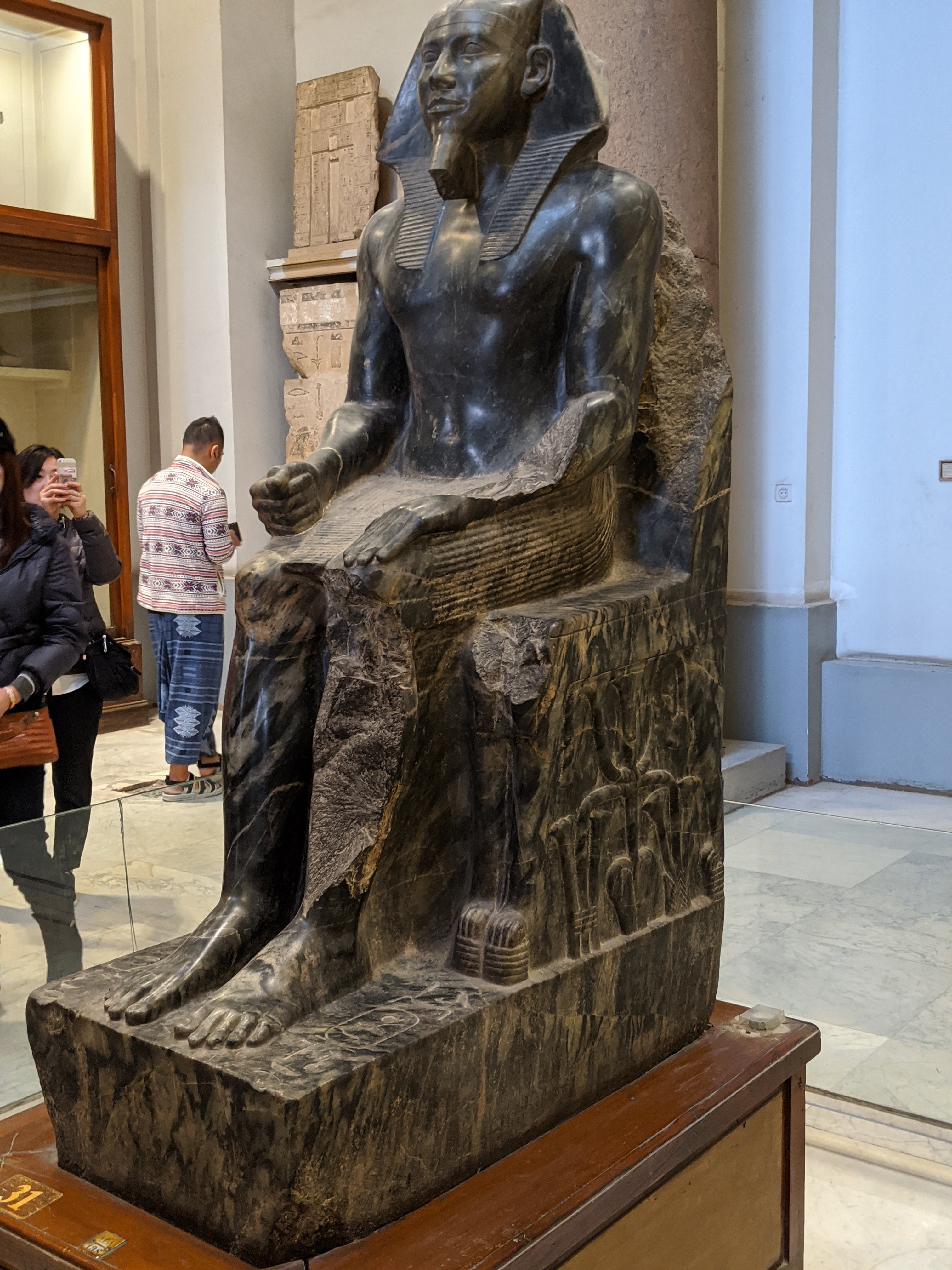 Outside the museum there is a little Oasis.Above this Sphinx are hieroglyphics depicting the Bedouin people. They are portrayed as being skinny as they are very poor people in the desert. It is the same today. Bedouins wear head scarves that are red or black pattern on white.King Merenre I who only reigned 5 years