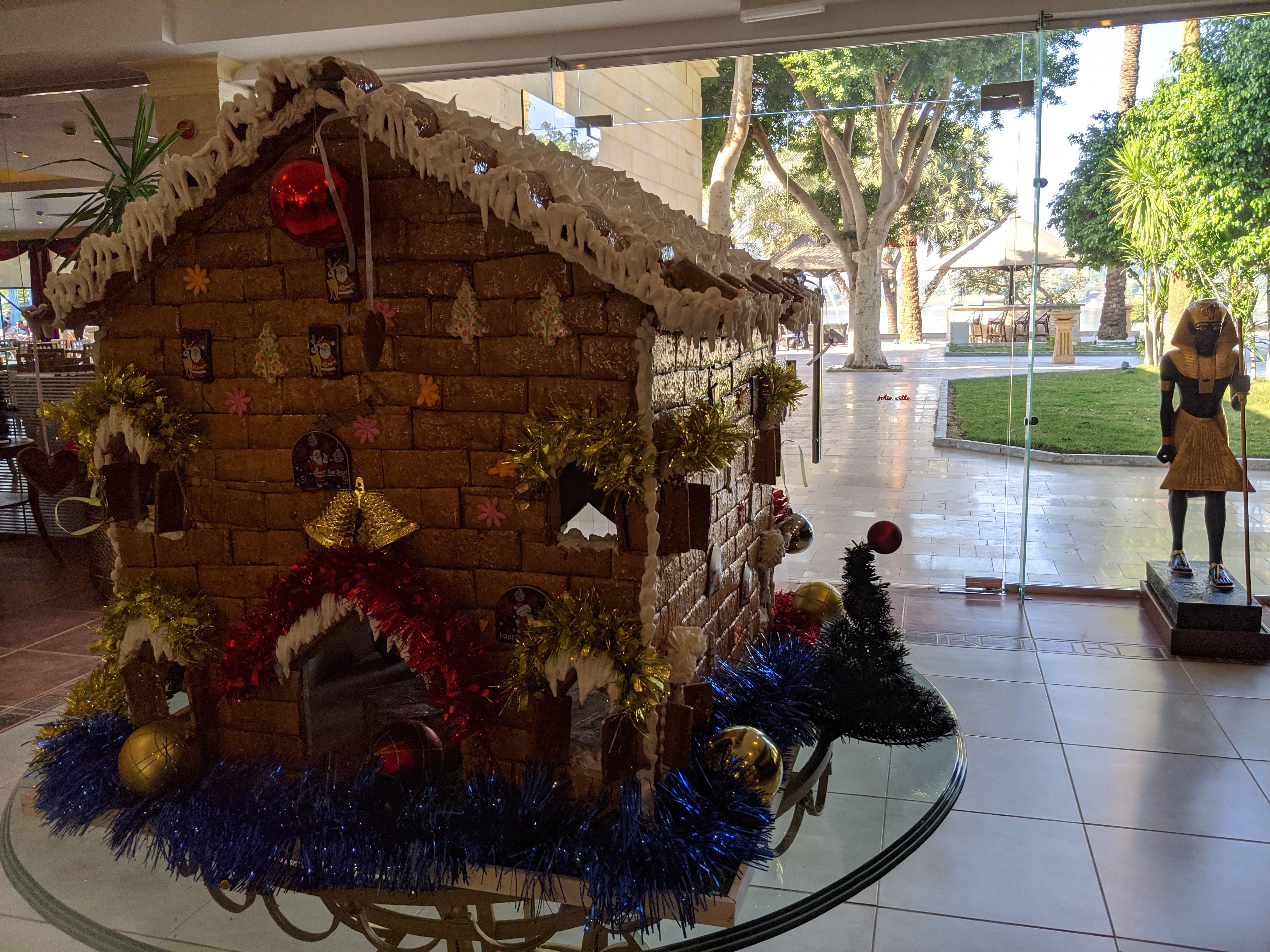 For my birthday on Christmas Eve we left Luxor and flew back to Cairo. The resort had decorations and played Christmas music continuously.