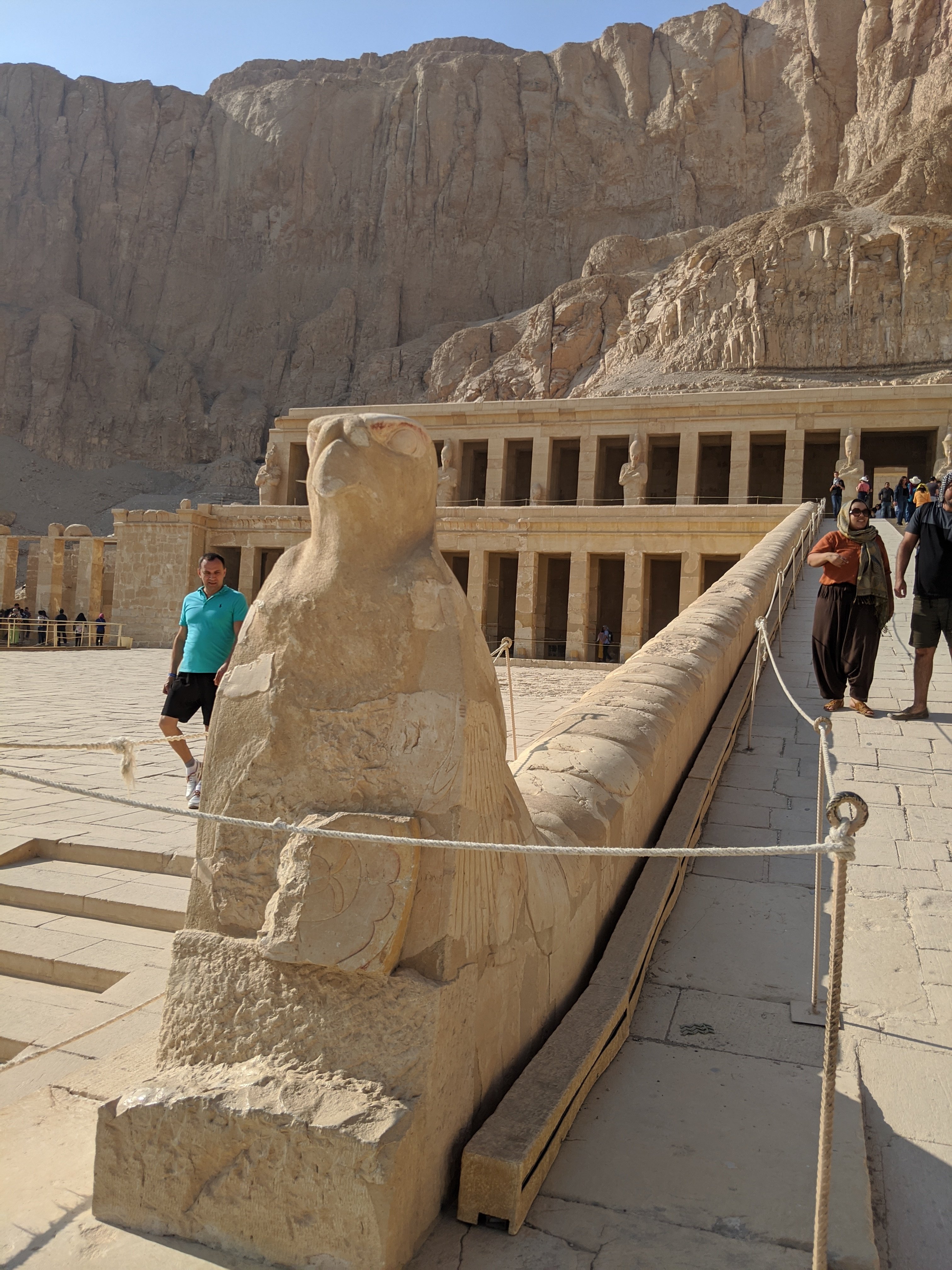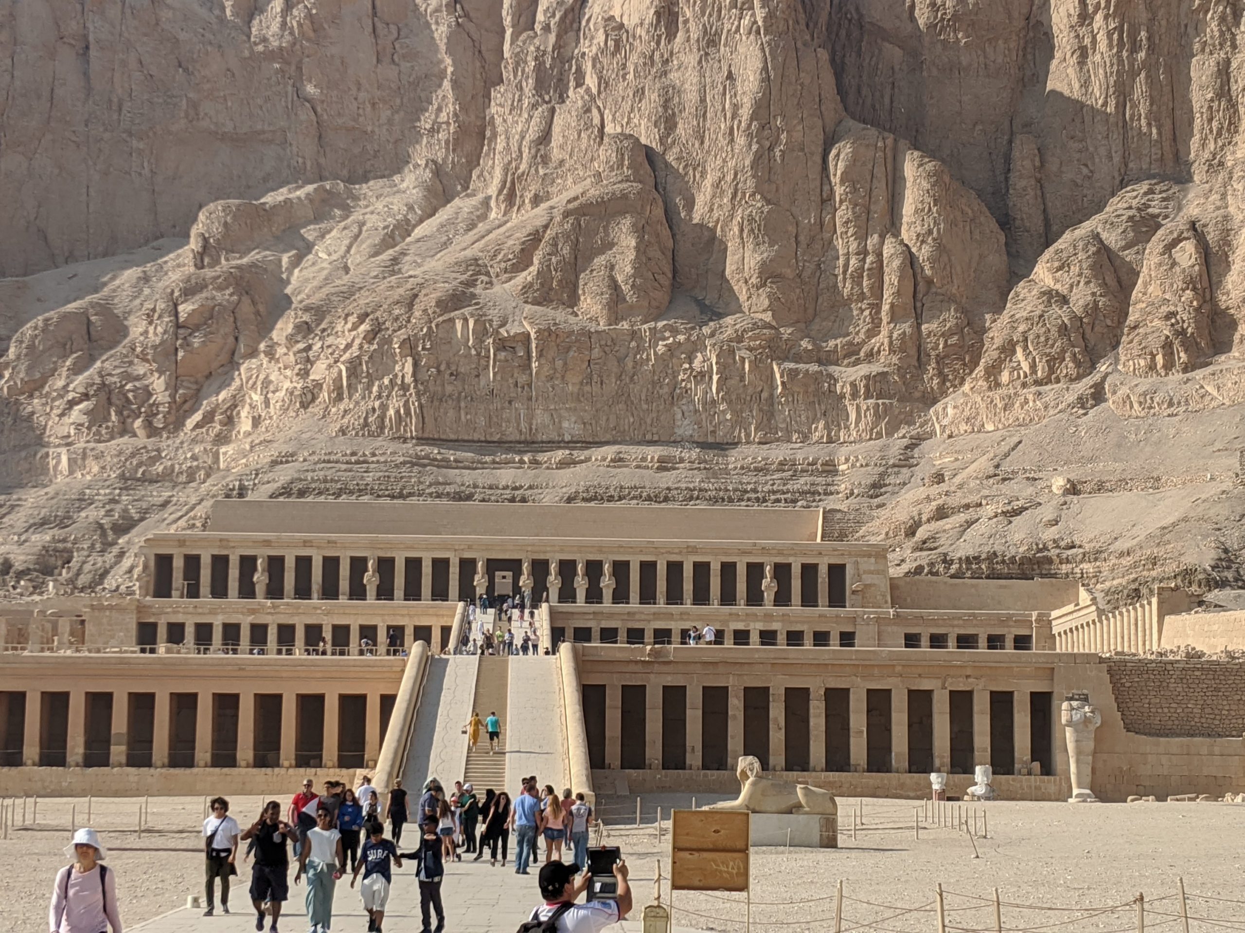 Hatshesut temple. She was the 5th pharoah of the 18th dynasty in 1478 BCE. She was the 2nd female pharoah and installed herself after the death of her father.