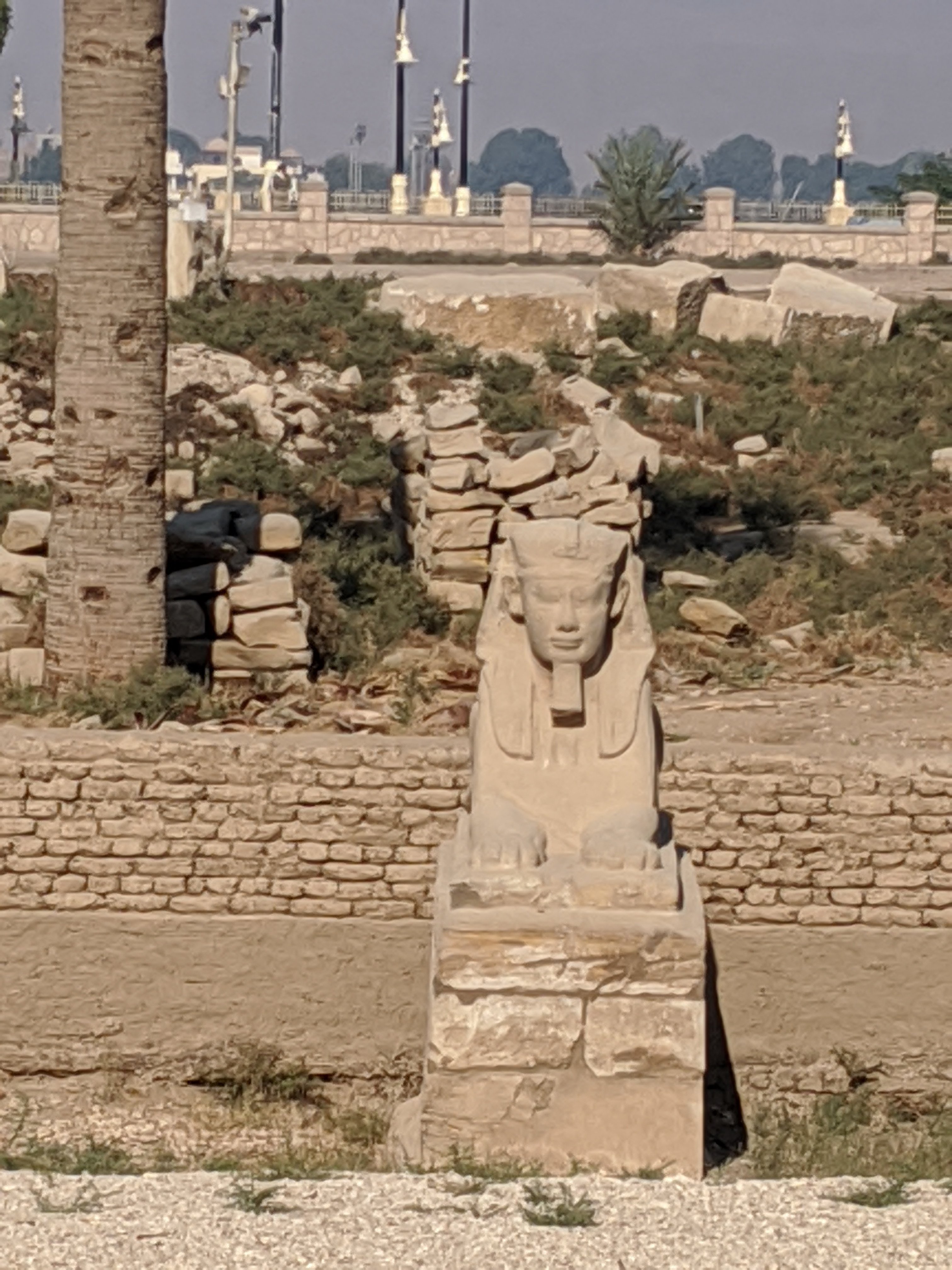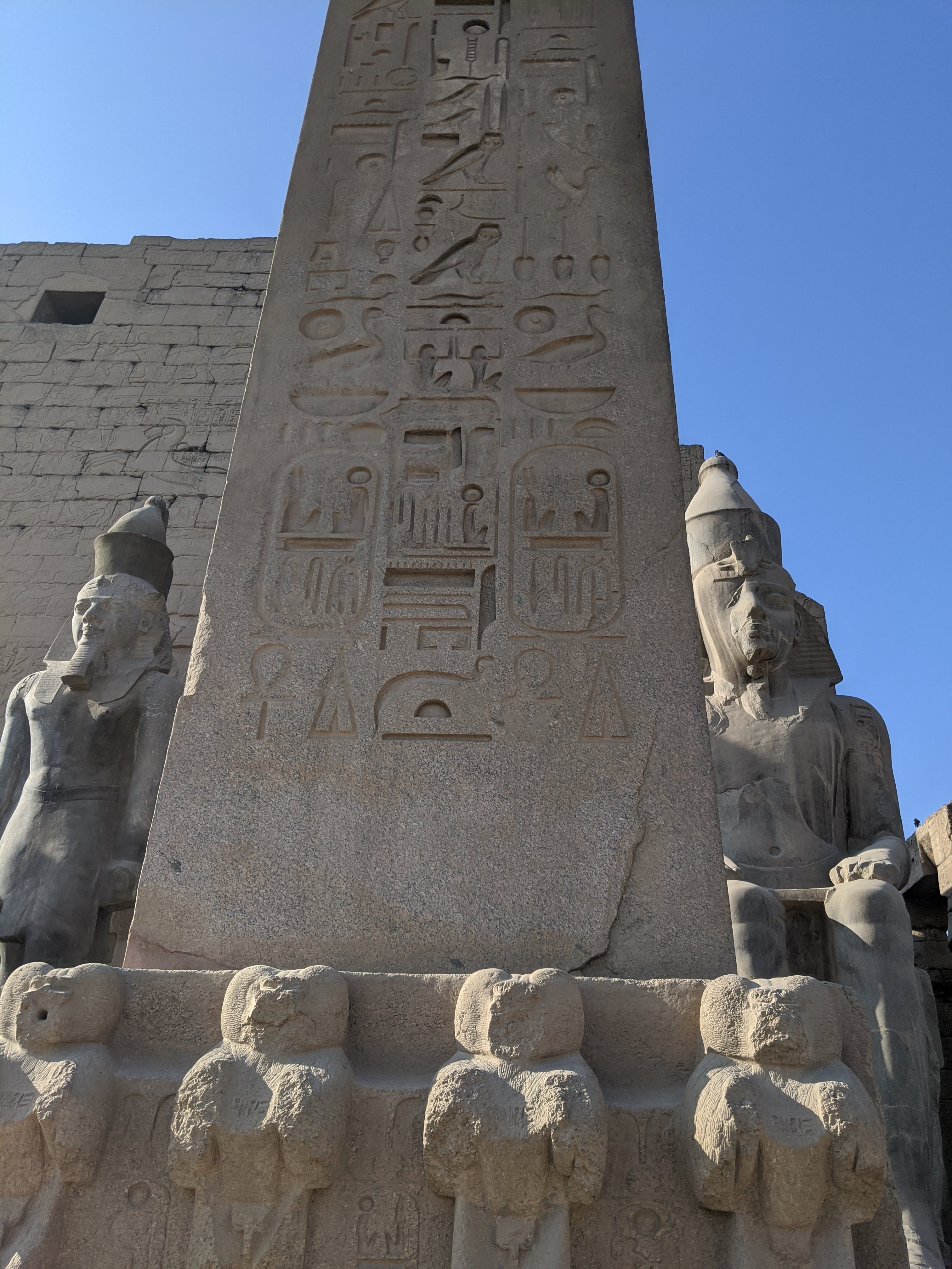 The largest line of Sphinx.which used to connect the temples of Luxor and Karnak. It is called avenue of the Sphinx and monuments were carried between for celebrations. There is another line on the otherside of the walkway. Excavation between the 2 sites is still underway.A closer up of the Sphinx.Obelisk constructed by Ramses II