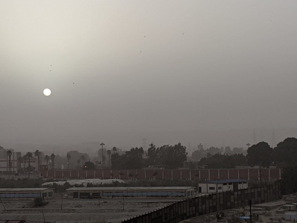 On the way back I was trying to take a picture of the sunset. We slowed down at the checkpoint and I tried to grab a picture. You should not do this. Even if you are not pointing the camera at the officers, it is against the rules. They asked to see my camera and Mostafa explained I was taking pictures of the sunset (which I didn’t actually take when I realized my error). The good news is I did not have my phone taken away but I did not get the shot. After the checkpoint the driver slowed down so I could take a picture.
