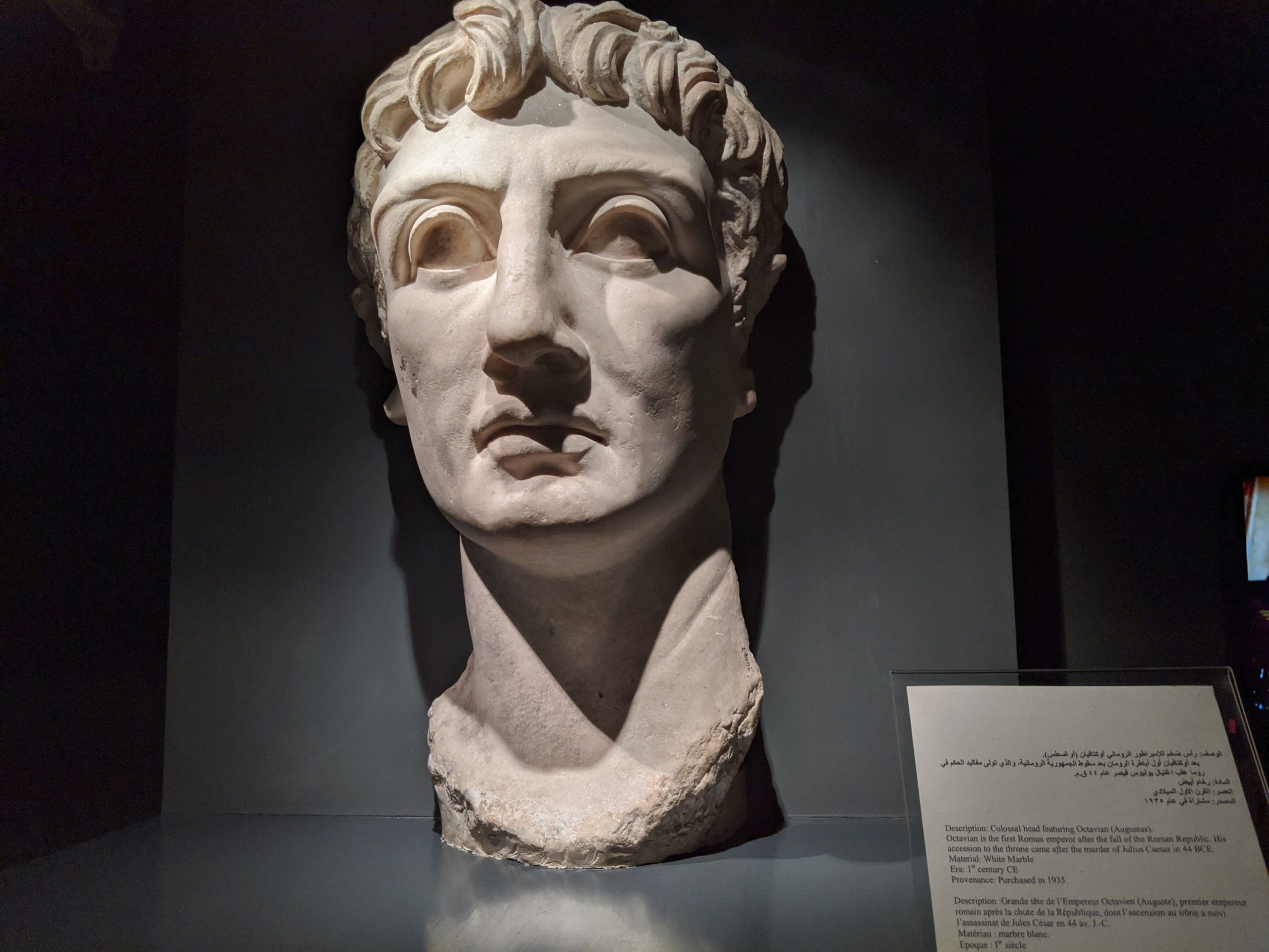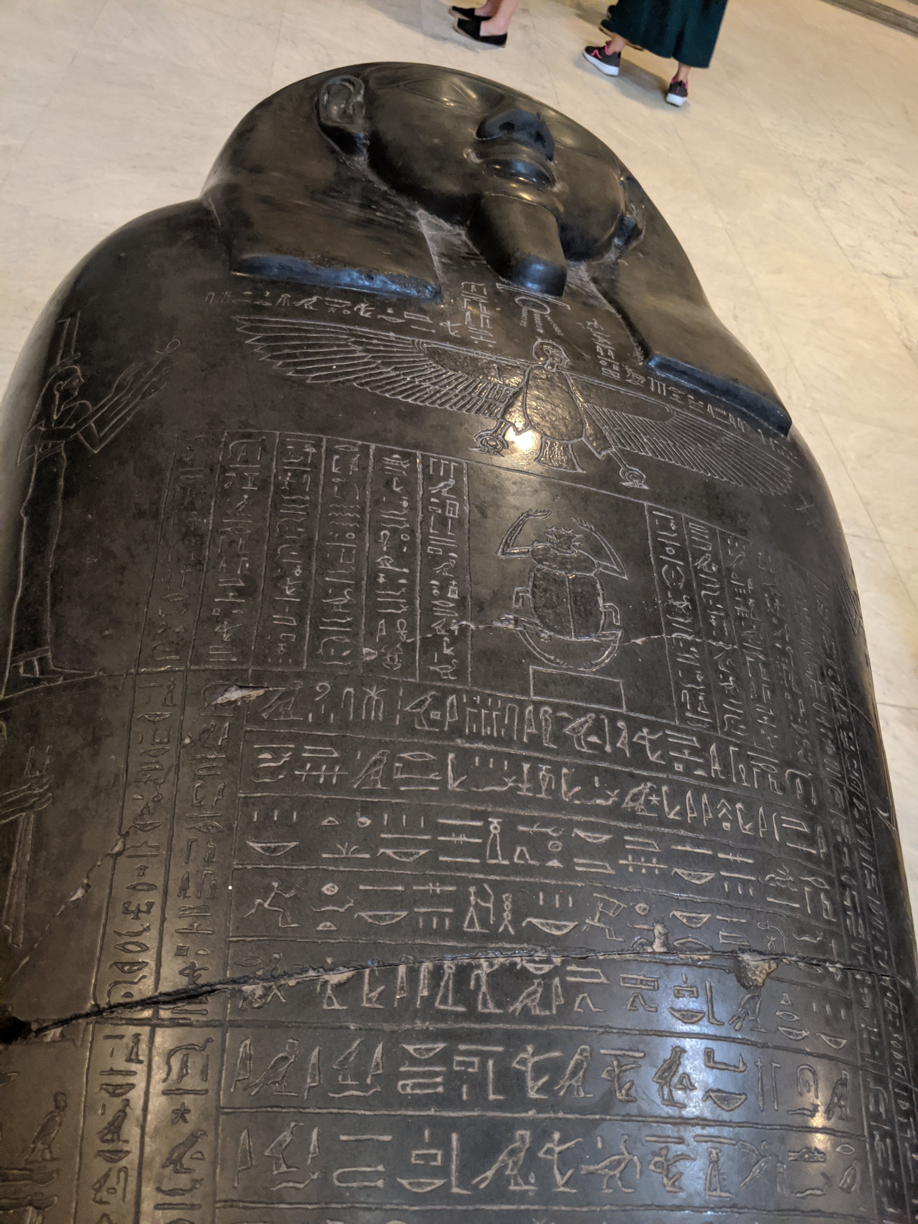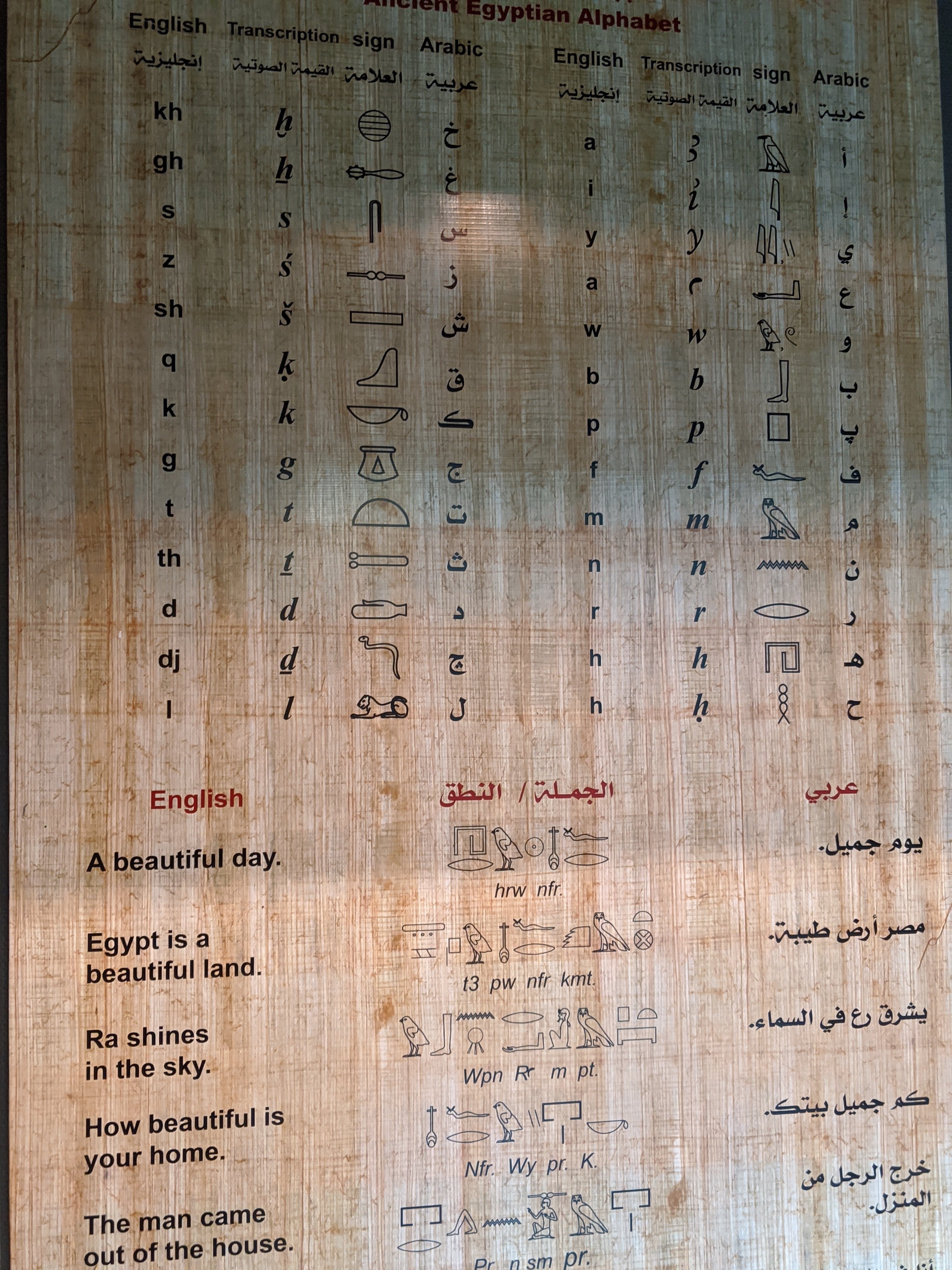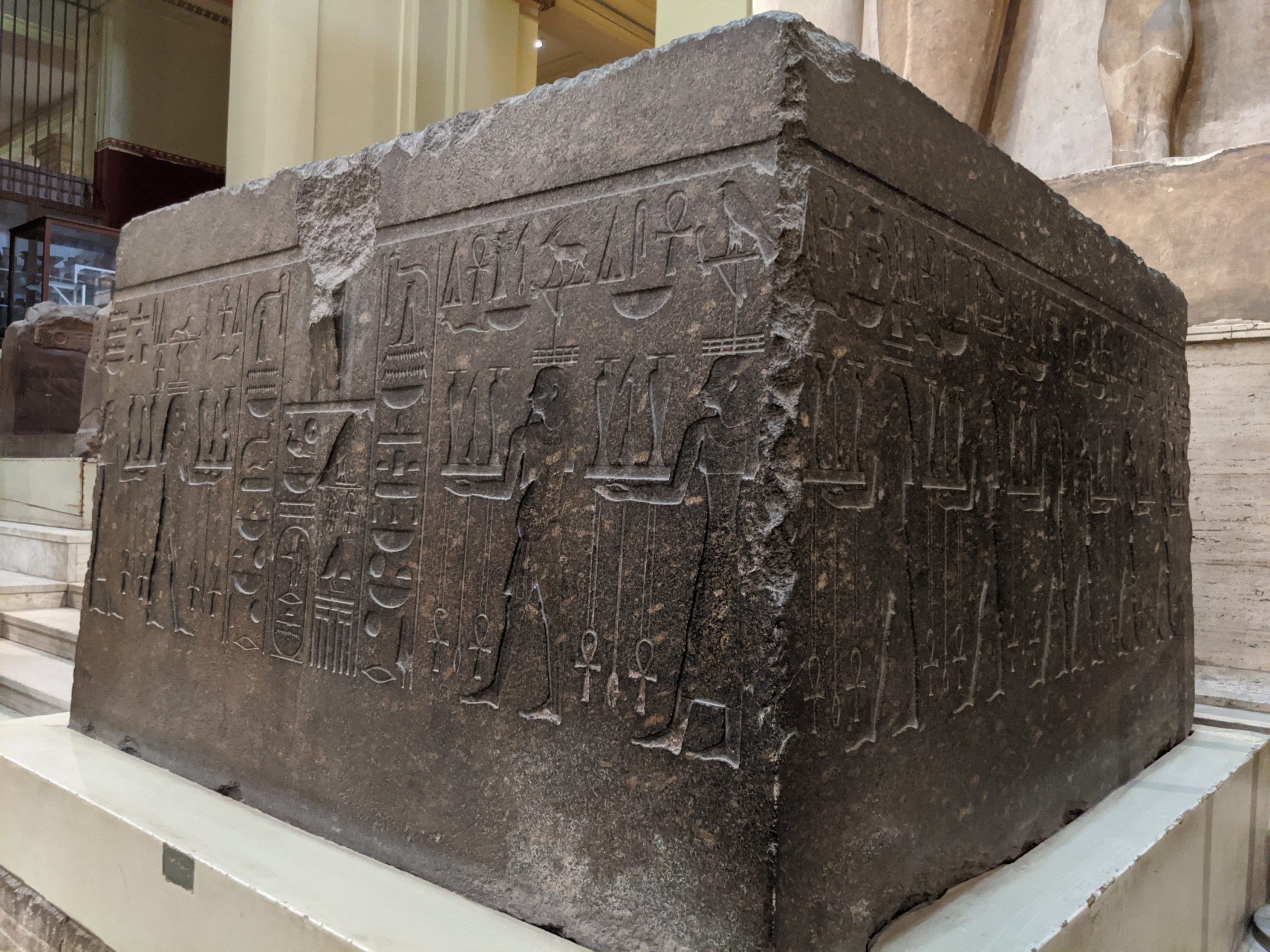 Egyptian alphabet.Egyptian god of the moon which is a blending of a baboon and an Ibis.The top of sarcophagus of a child.The torso of Hercules. There is incredible detail in the muscles.Alexander.Ancient sundial for tracking time by placing it facing the South to catch the sun’s rays. This is from 2000 BC.The heads of the Canopic jars that held the internal organs. Imsety had a human head and carried and protected the liver. Qebehsenuf had a falcon’s head and carried and protected the intestines. Hapy had the head of a baboon and carried and protected the lungs. Duamatef had the head of a jackal and carried and protected the stomach.This Mosaic is from the original library. It shows exceptional detail including the expression on the dog.
