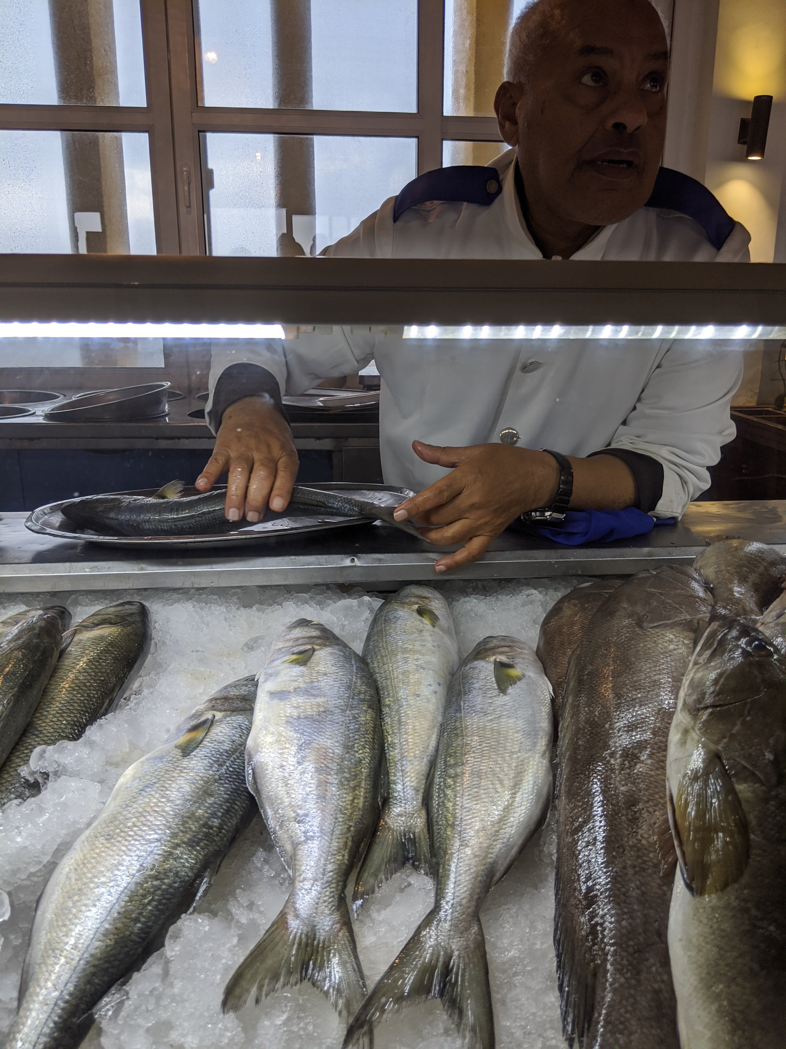 Next we went to the citadel. There is a Greek restaurant called White and Blue that is a block away. You choose your own fish to be butterflied and grilled. It was delicious. We chose bluefish from the Mediterranean and a red fish from the Red Sea. It is not cheap but worth it.