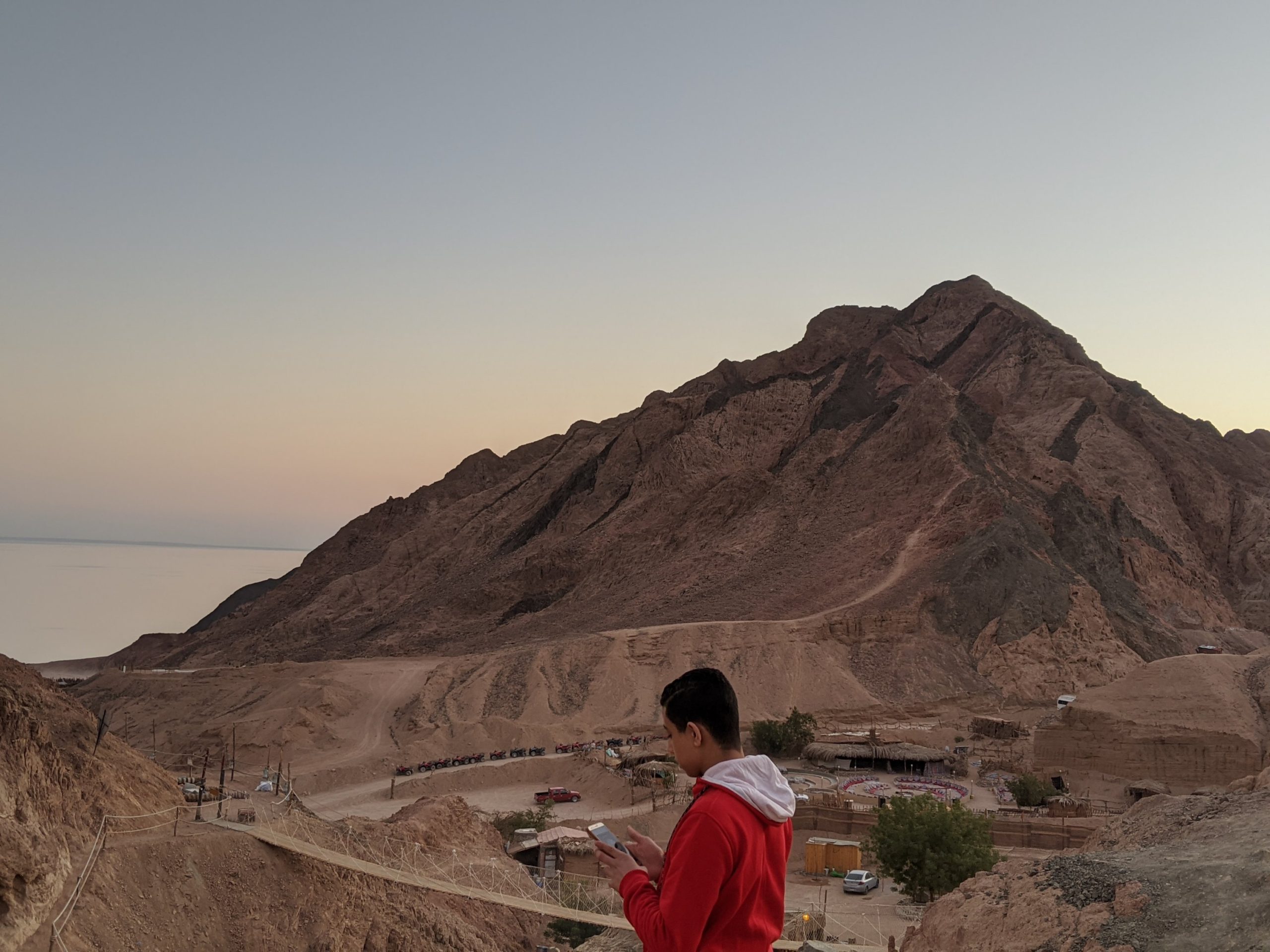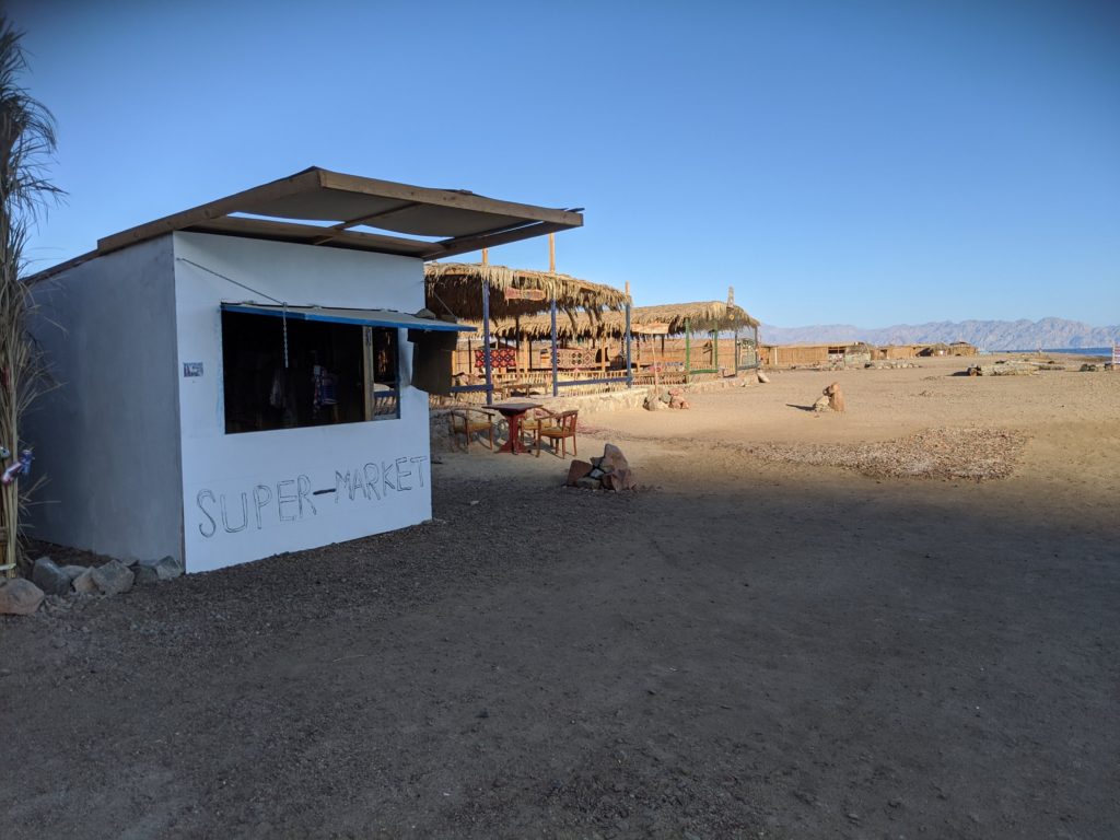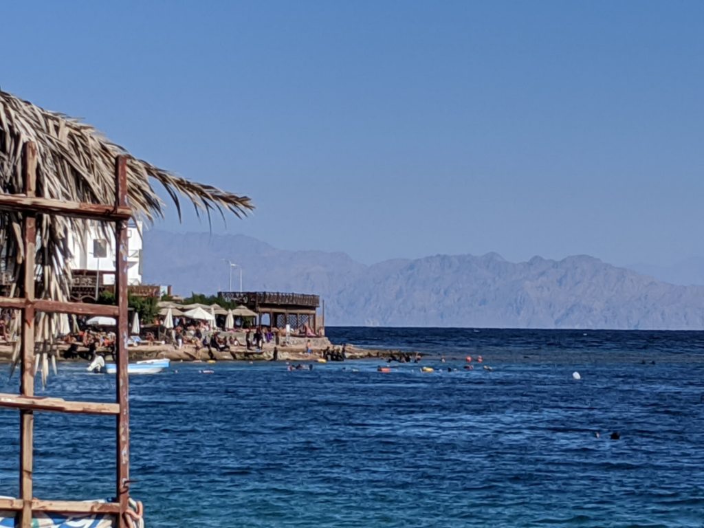 Dahab is a small town on the southeast coast of the Sinai Peninsula in Egypt. We had to fly into Sharm el-Sheikh and drive about an hour to get there through the desert with small settlements scattered throughout.