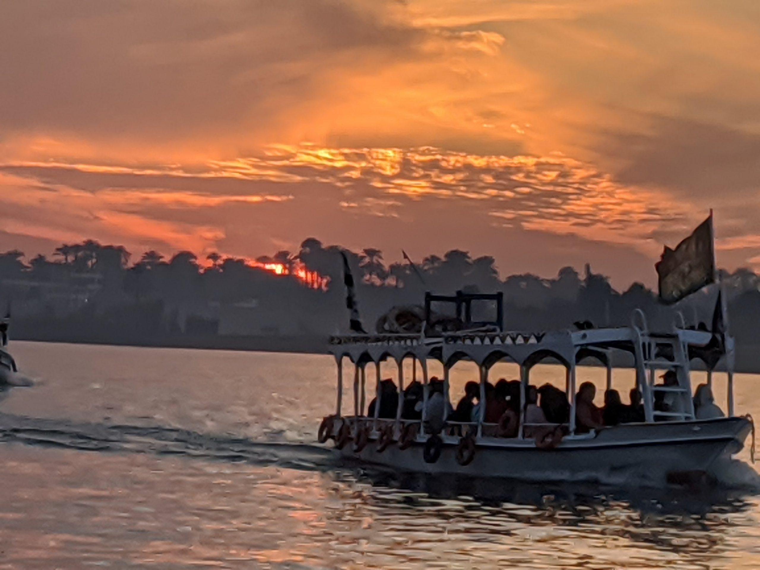 For something different at night we took a Felucca out on the Nile to catch the sunset. This is a covered boat. It was beautiful and we stayed until it was dark then found a local restaurant to eat dinner.