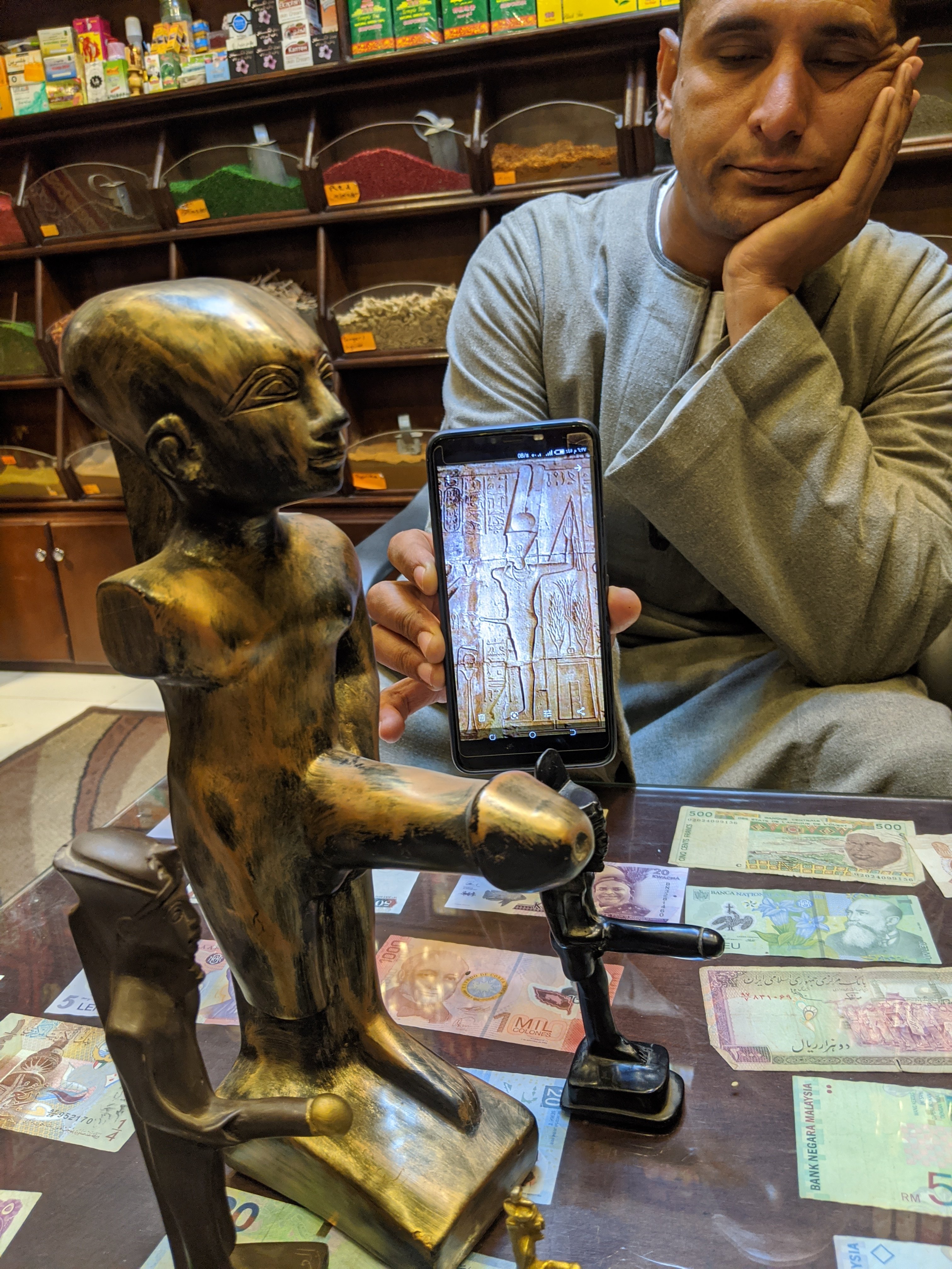 We found a tea and perfume shop where we drank hibiscus tea and talked with the owner. Mostafa found a magnet of a statue with a large erect penis. We found this hysterical and then we were told the story.