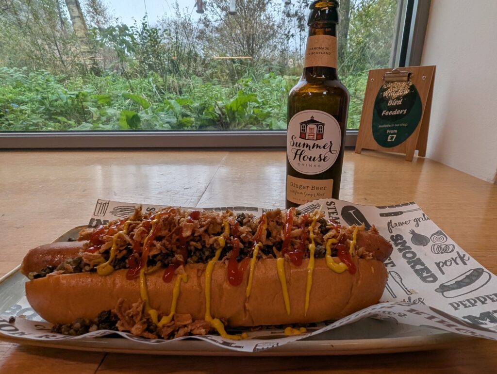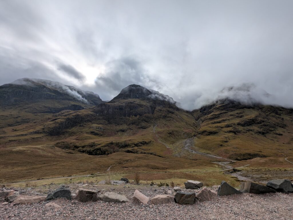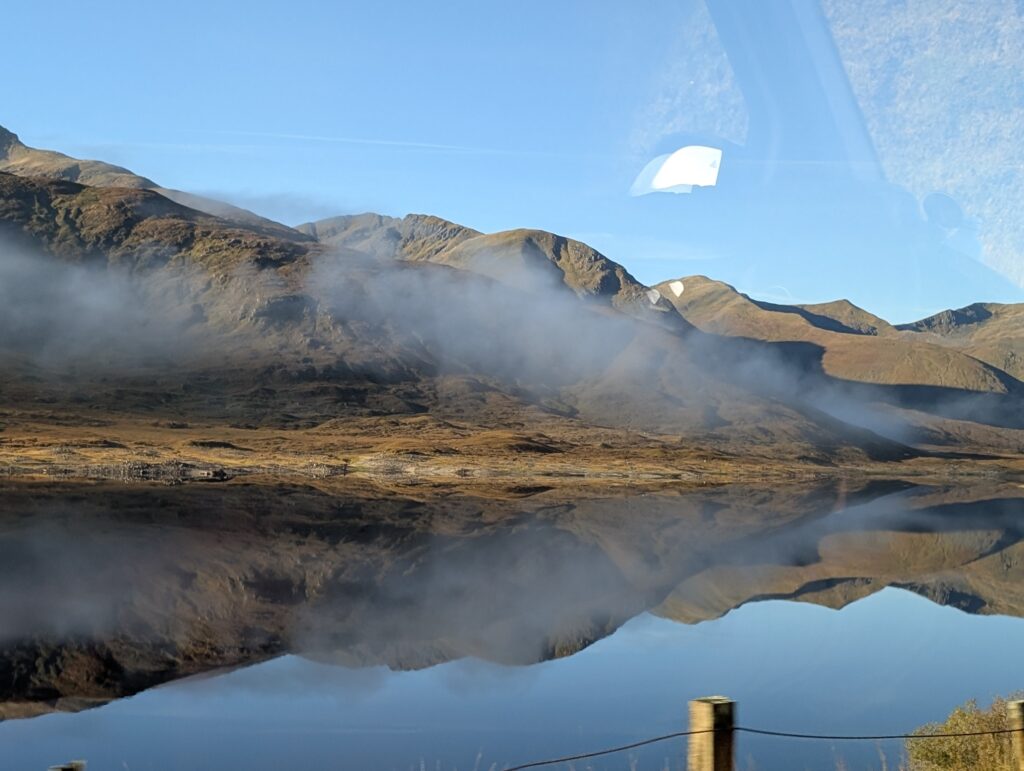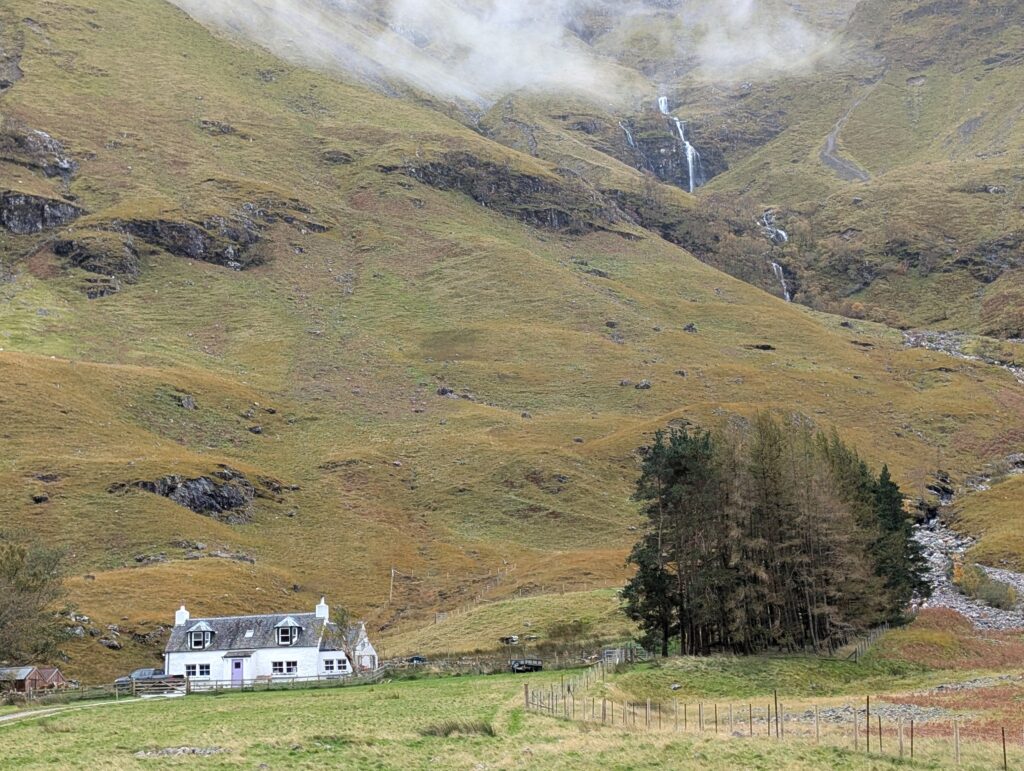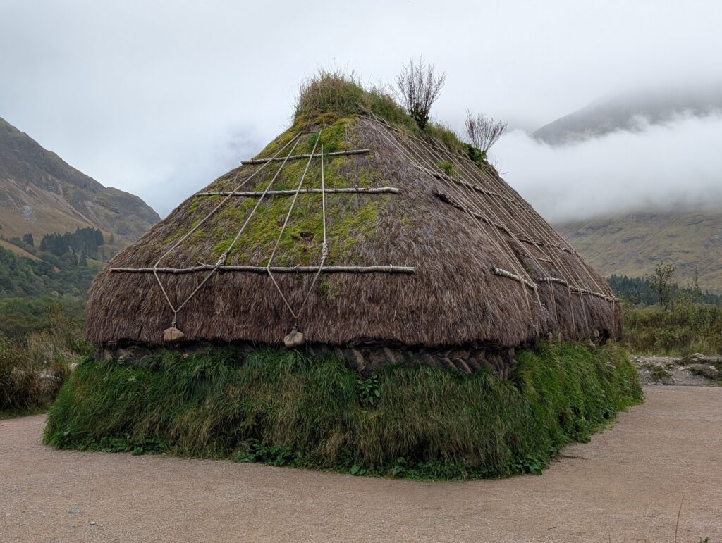 At the Glencoe visitor center we could see an original earth house that past Scots would build. All the materials were sourced within a mile of its location. I could also watch birds as I ate lunch. I ordered a hot dog with haggis on it. It was the best hot dog I have ever eaten and made in Scotland.