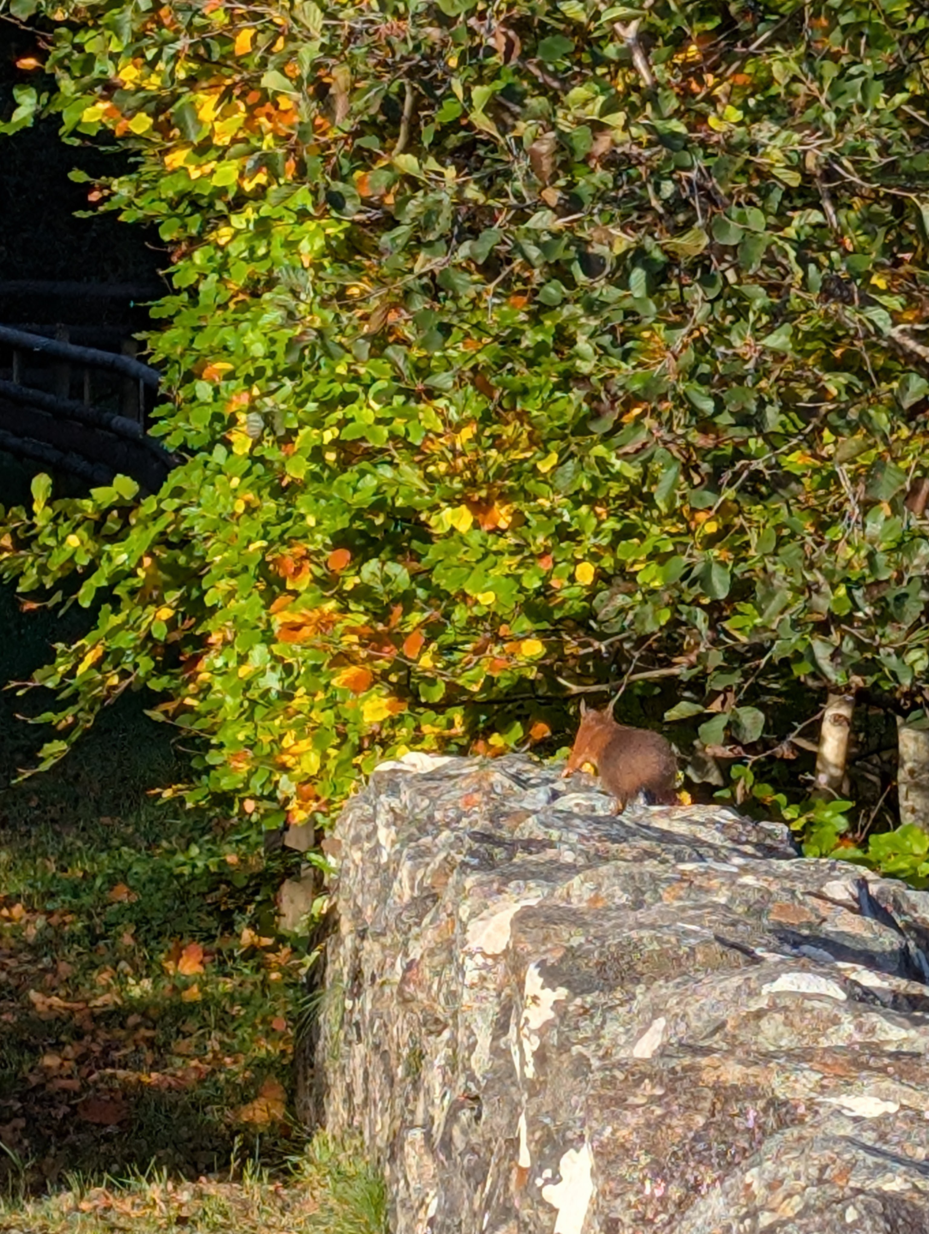 I tried to get a good picture of the red squirrel but caught him in retreat!