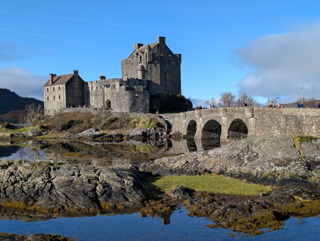 We stopped at Eilean Donan castle. It was the site of the Highlander series as well as other movies. It was built in the 13th century and housed the Mackenzie clan and allies. Now it is privately owned. I chose not to go inside the castle spending more time touring the grounds.