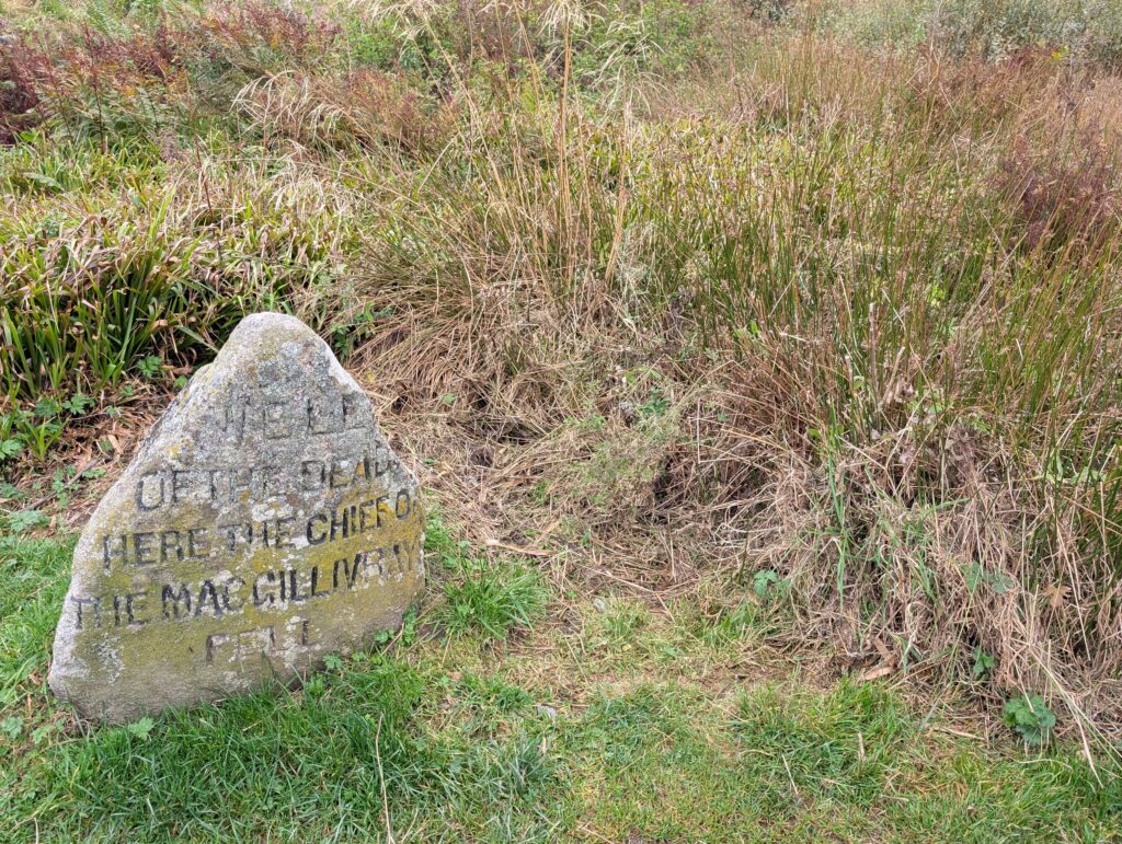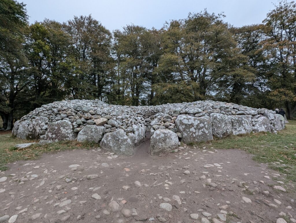 On the last day, we left Inverness and visited Clava Cairns. A cairn is an ancient burial ground and these are dated at over 4000 years old. This one has an entrance to the center and was found to have been reused centuries later (after the original dead were no longer in anyone’s memory!)