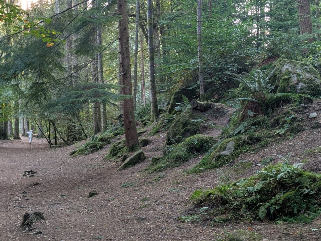 I did walk up the hill near the hotel to get to the Fremersberg Tower overlooking the Black Forest, which is so named due to the dark evergreen forests. Did you know cuckoo clocks originated here and are the background for the stories of the Brother Grimm. As I walked through the woods I noticed the large amount of holly, fir, and pine here. It was a beautiful but exhausting walk up and back down (still working on retaining my fitness after the knee replacement.)