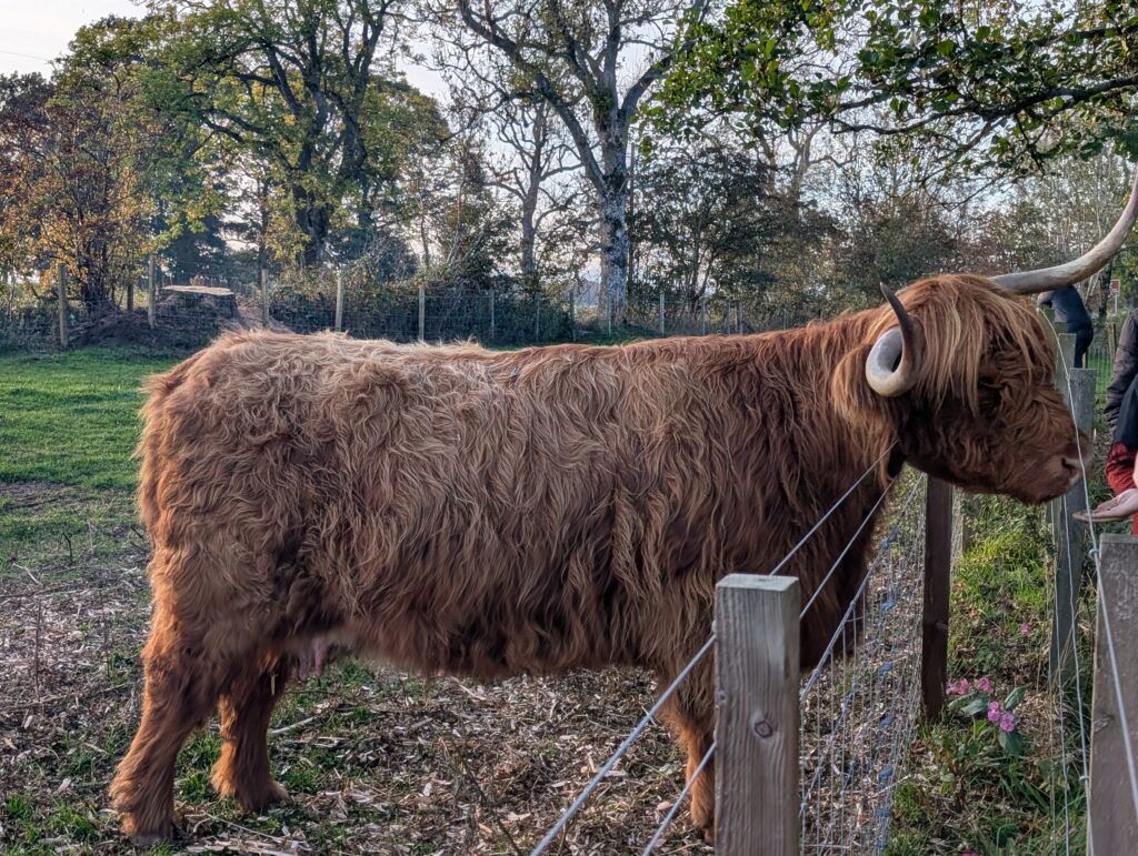 In Perth, we stopped at a family run farm and restaurant. The have highland coo (cows) you can pet and feed. These highland cows are able to walk better than cows in the boggy Moors and can feed on all vegetation there. Because of this, they use these highland cows to cross breed with regular cows. They also have super fatty milk which is excellent for cheese.