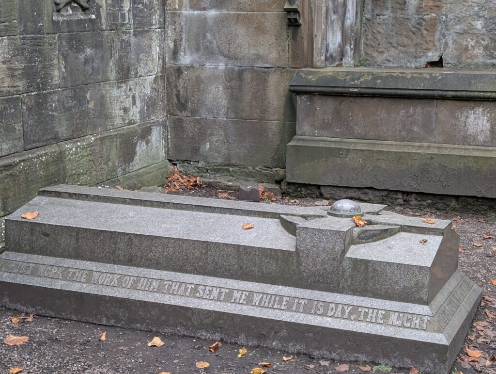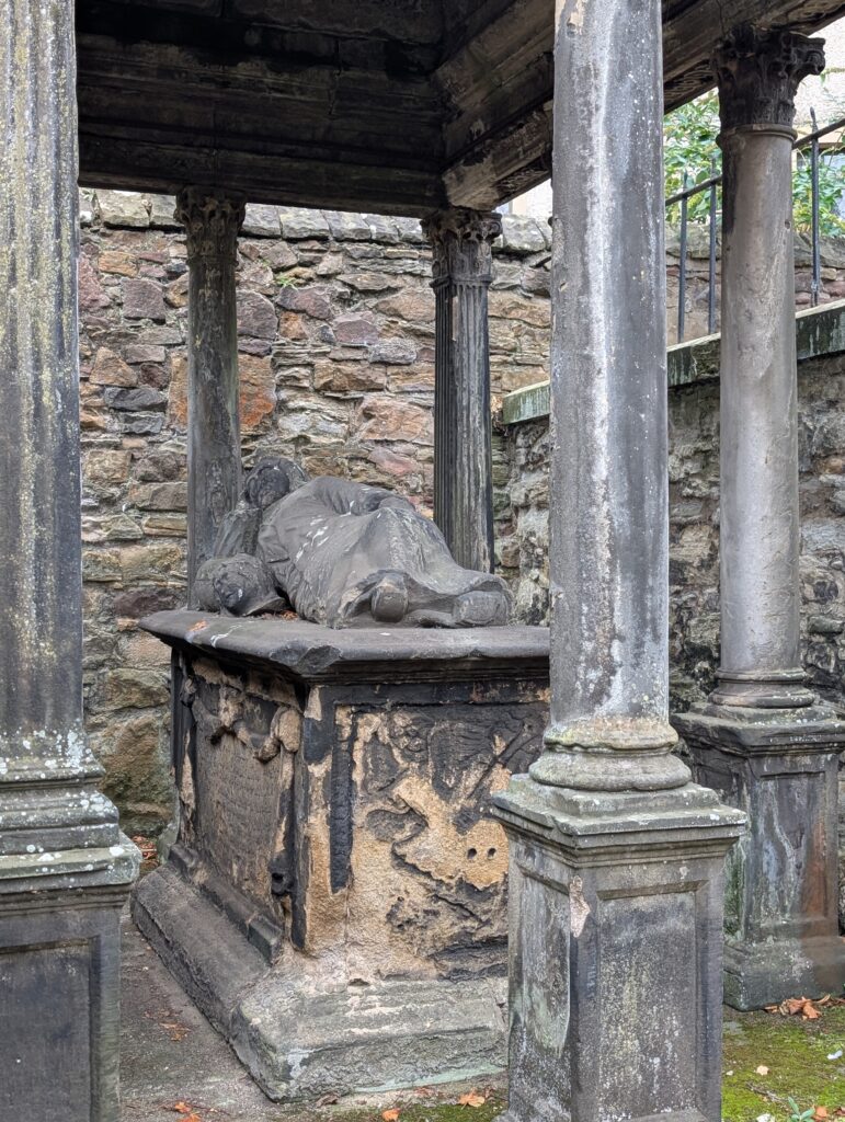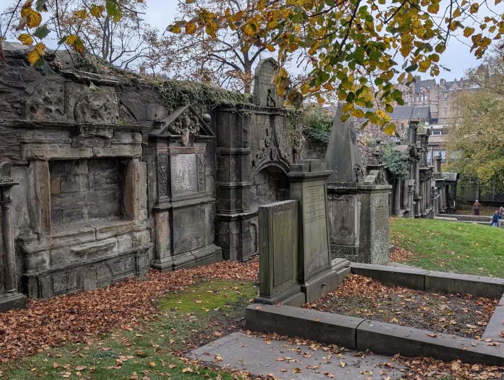 I then visited Greyfriars cemetery which is said to be haunted. The first thing you see is Greyfriars Bobby. He was the Skye terrier of John Gray, a philosopher and writer. When he died, his dog guarded his grave for 14 years. The owner of the local pub right outside the cemetery gate, made him a house and bed and made sur he was fed until he died. He is. It buried with his master because of cemetery rules but is nearby.