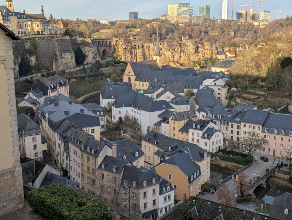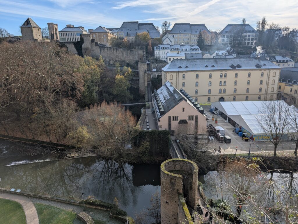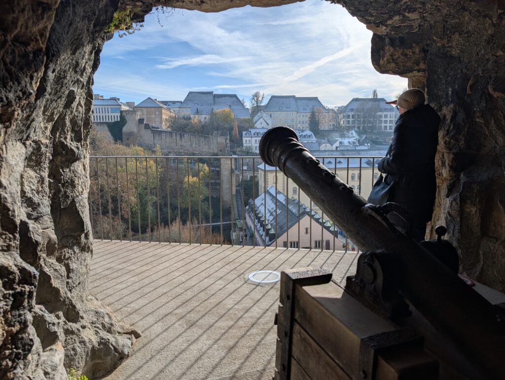 I first walked the Chemin de Corniche, the old walkway through the city among the old city walls and at one end to the remains of the fortress that used to exist. The underground portions and a few of it in the rocks above still remain. it is called the Bock Casemates.