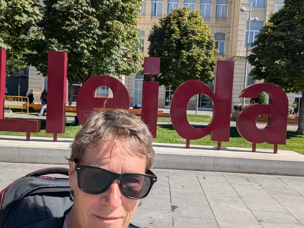 To get to Andorra, I took a train from Pamplona to Lleida and then a bus to Andorra. This is me carrying my backpack from the train to the bus station. It was a bit hot that day.