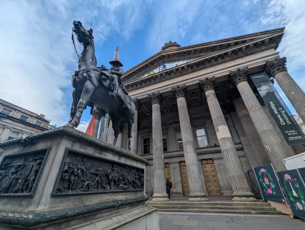 On to the next adventure: Scotland and the UK. I was only in Glasgow for a day due to a change in a tour to Isle of Skye. Several sites like the museum were closed for repair. I wandered around the commerce district and visited the museum of modern art. In front of that building is a statue of the Duke of Wellington. Yes, that is an emergency cone on his head. A taxi driver told me that police keep taking it off but another appears overnight!