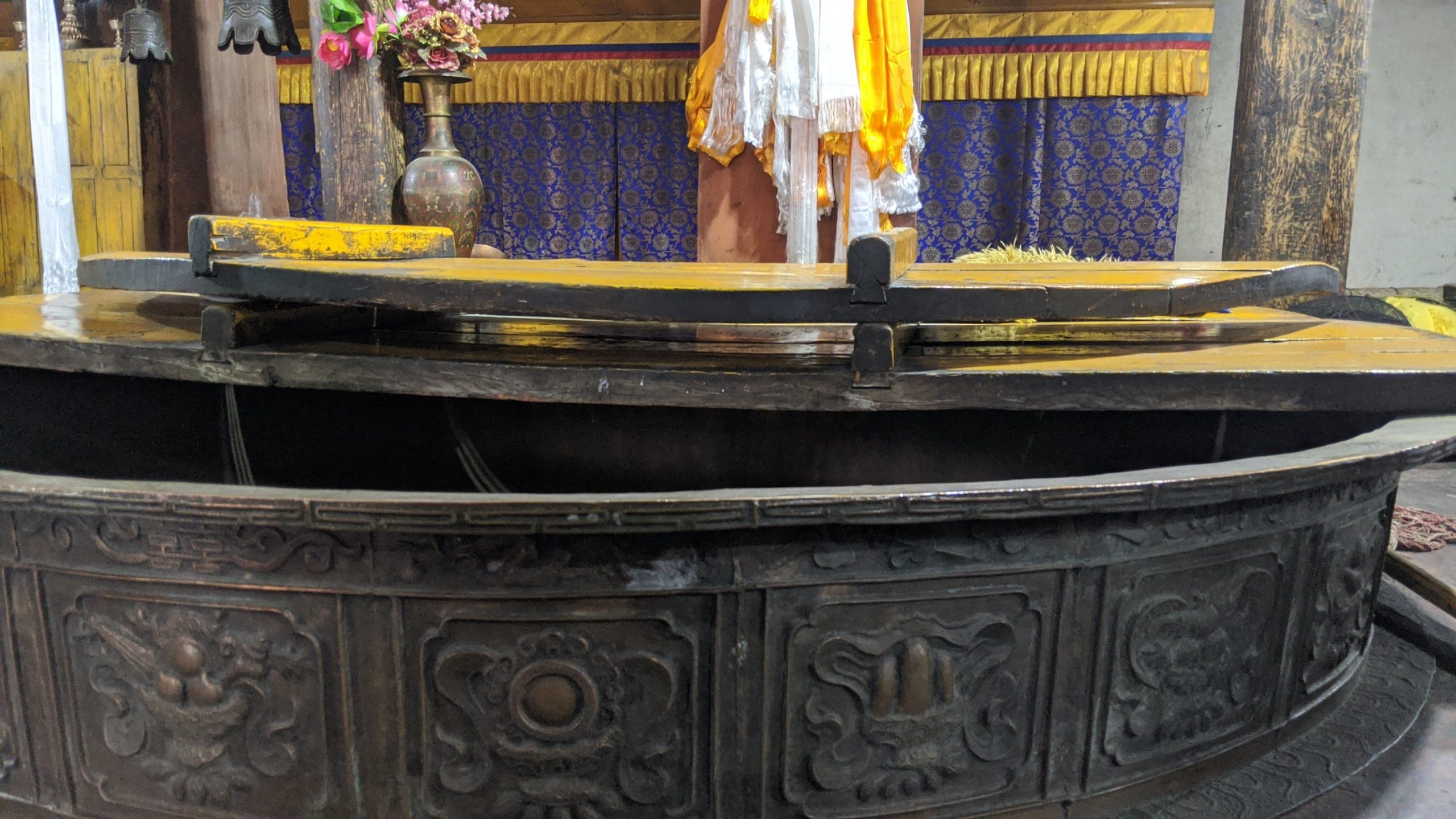 The sight is most sacred due to the personages who have graced it with their presence. It was originally built upon the birth place of the founder of the Gelukpa Sect (Yellow Hat) of Tibetan Buddhism, Tsong Khapa. Two of his disciples from this region also went on to become famous in the Buddhist world, one becoming Dalai Lama, the other the Panchen Lama, both great living Buddhas. The present Dalai Lama, now in exile in India, also studied and lived here.