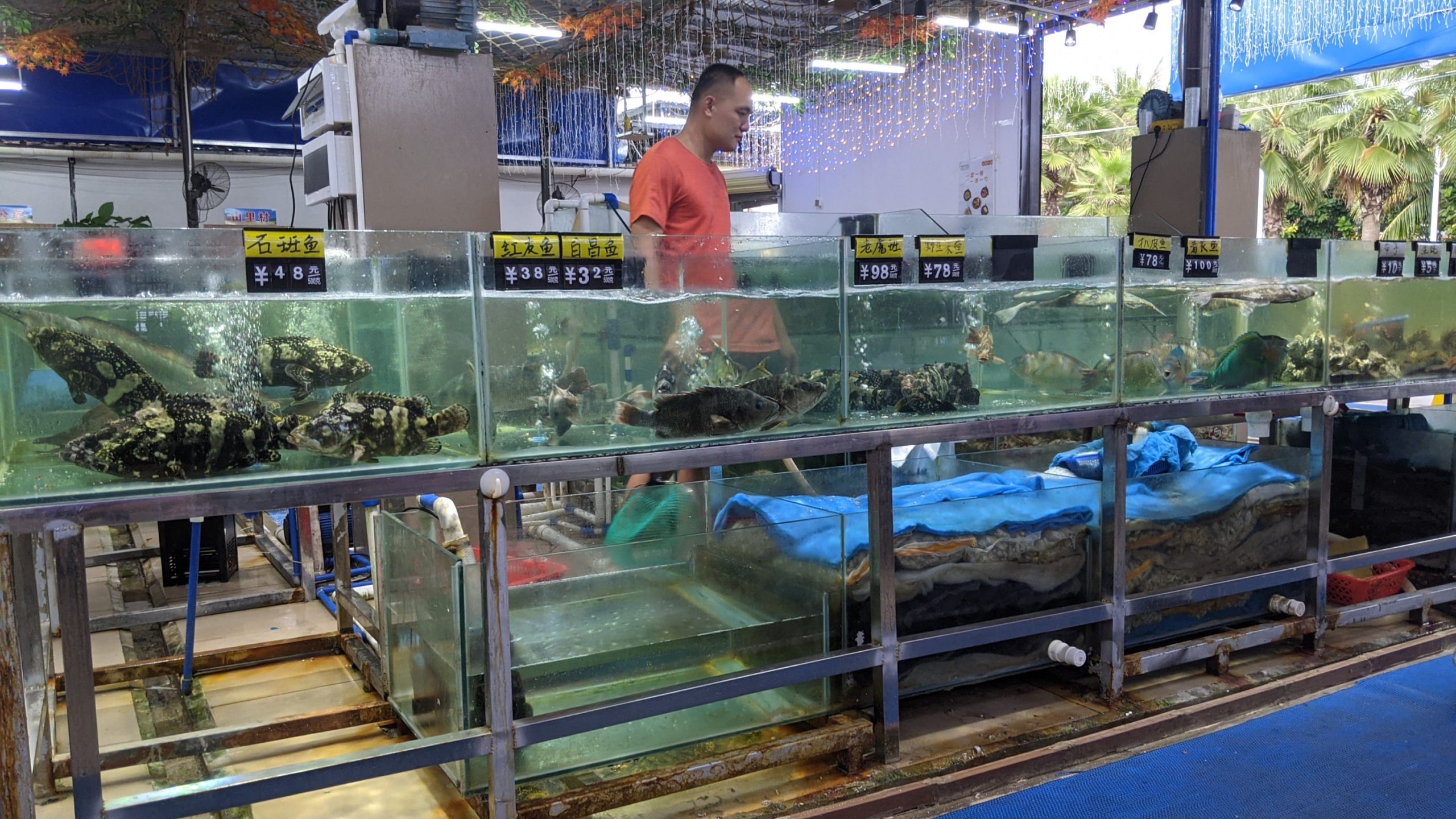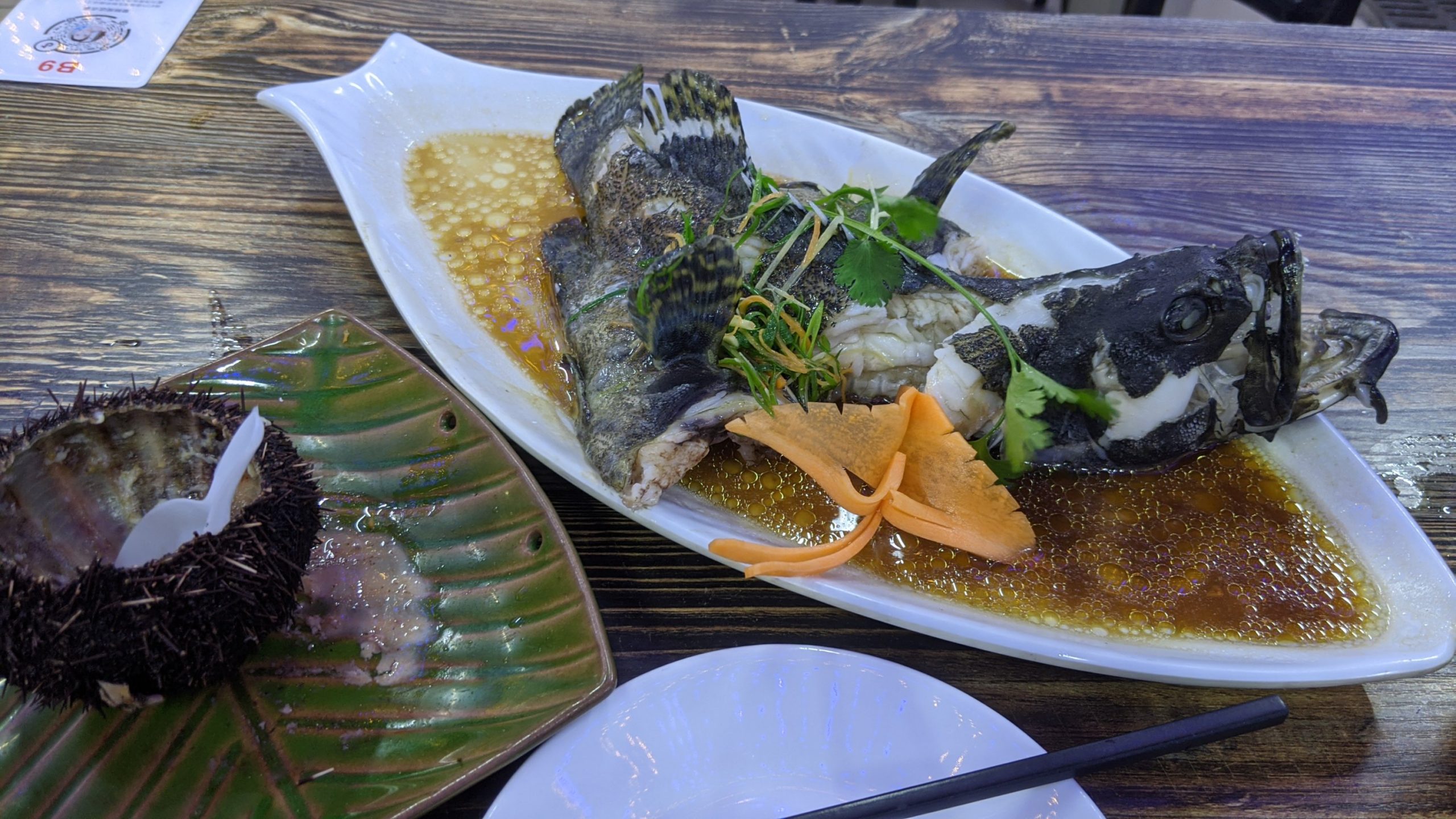I found a restaurant off site less than a km away where all the waitresses were nice. I went there every night. One night I decided to buy the live fish and sea urchin and have it cooked for me.