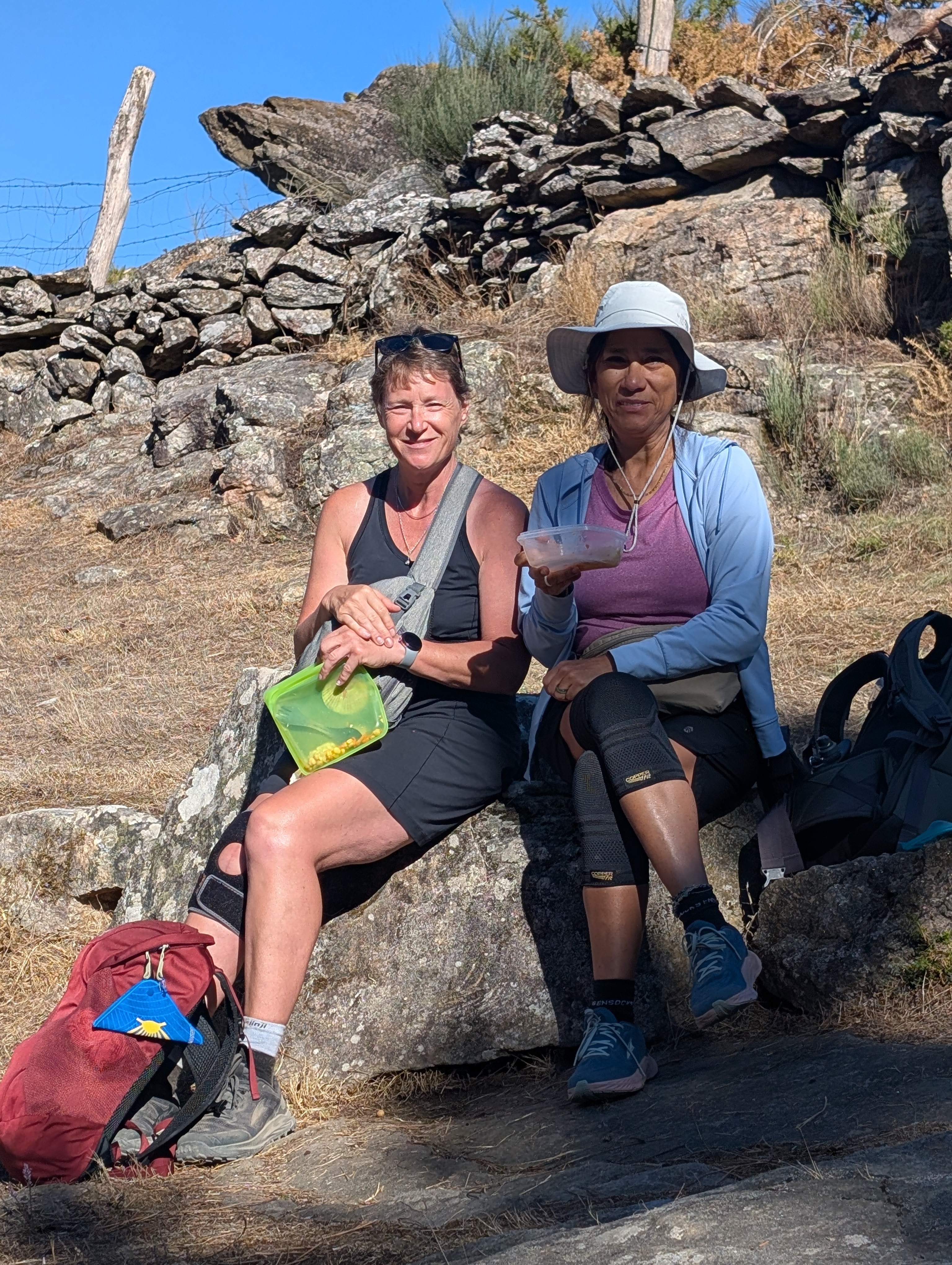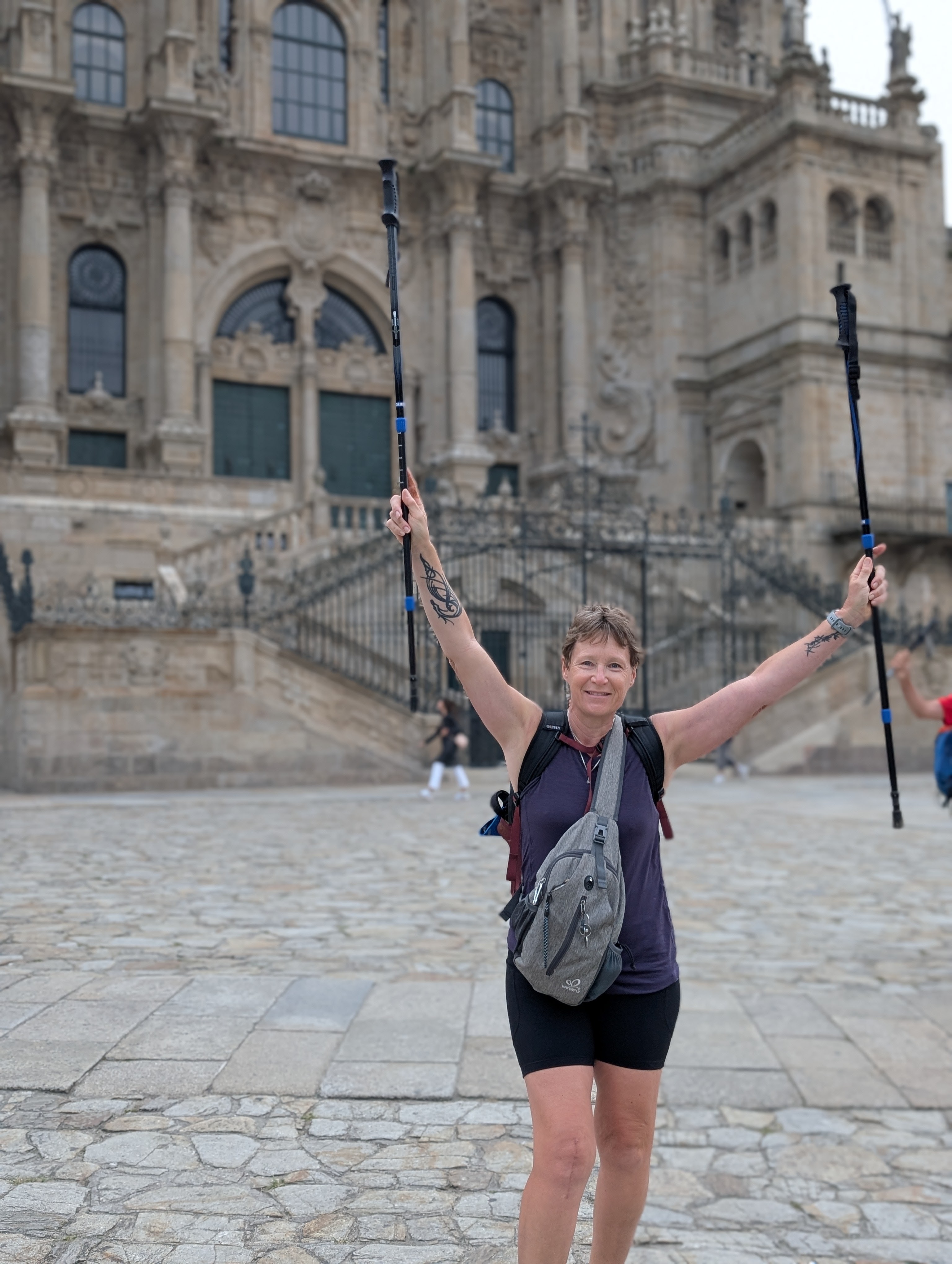 I did a lot of research in preventing blisters, using Vaseline on my feet before adding socks, wearing two lighter socks, etc. I also used hiking poles to help reduce the weight on my knees and feet. It also helps you with better posture when walking with a pack. All the people that we met on the camino were encouraging for us and we to them as well. No one truly walks alone.