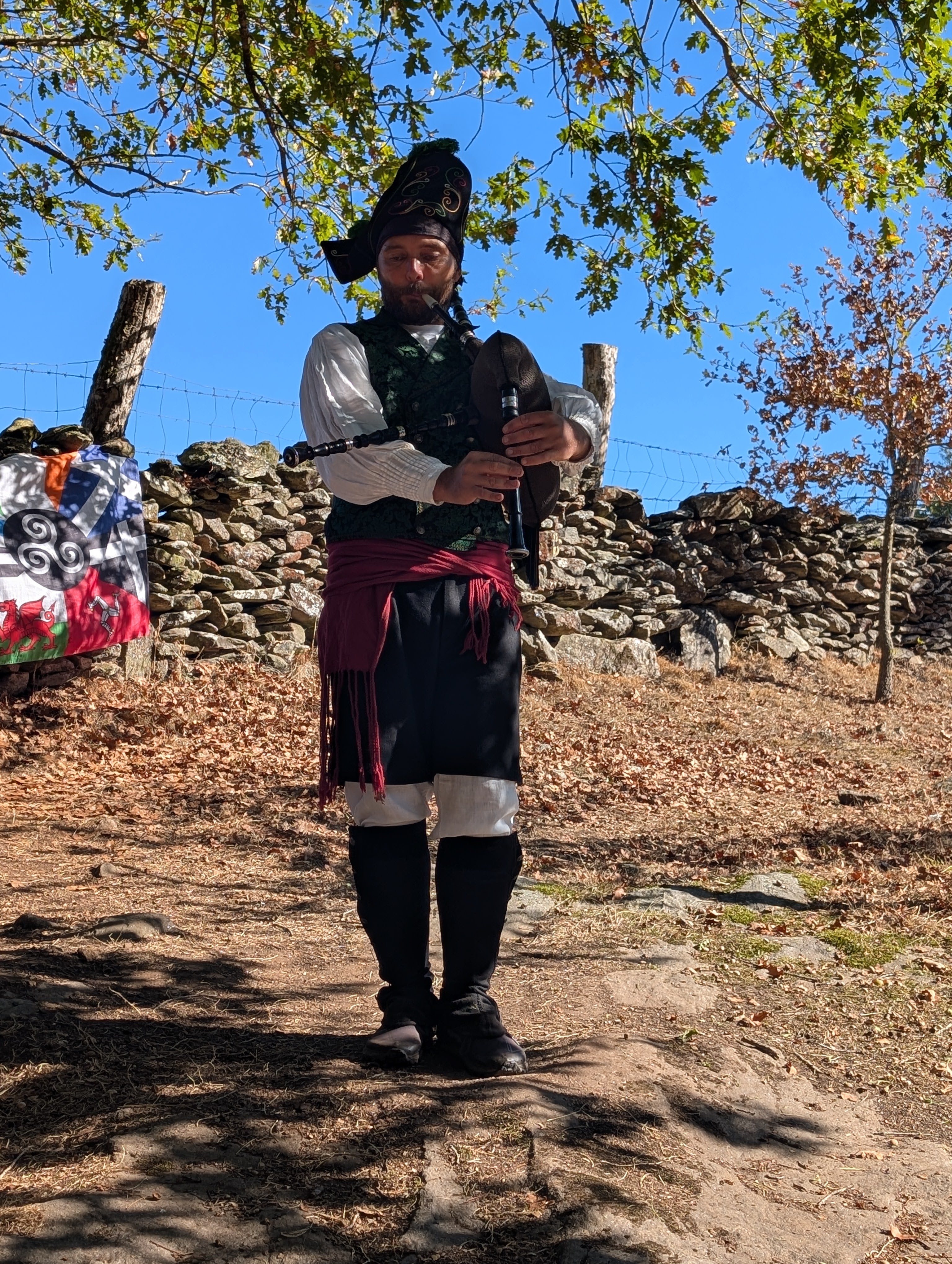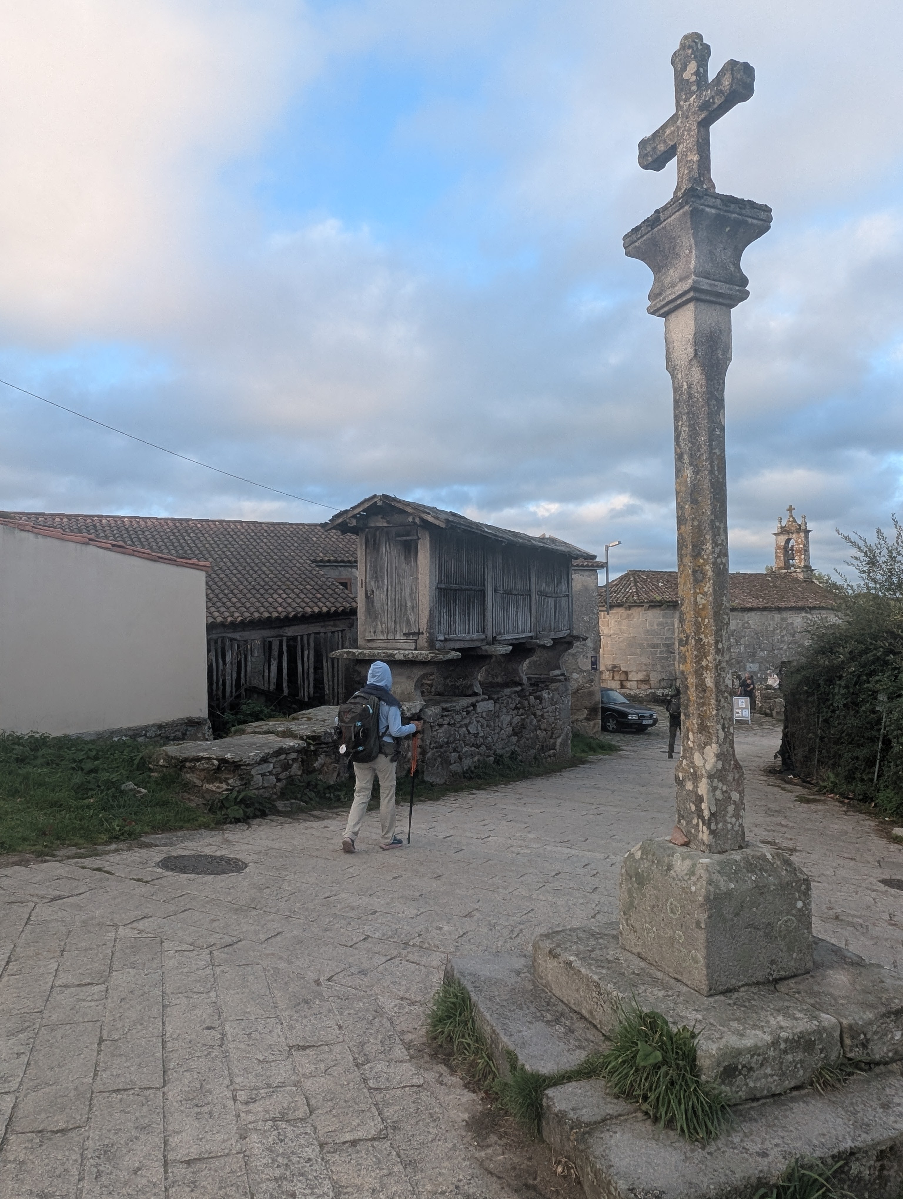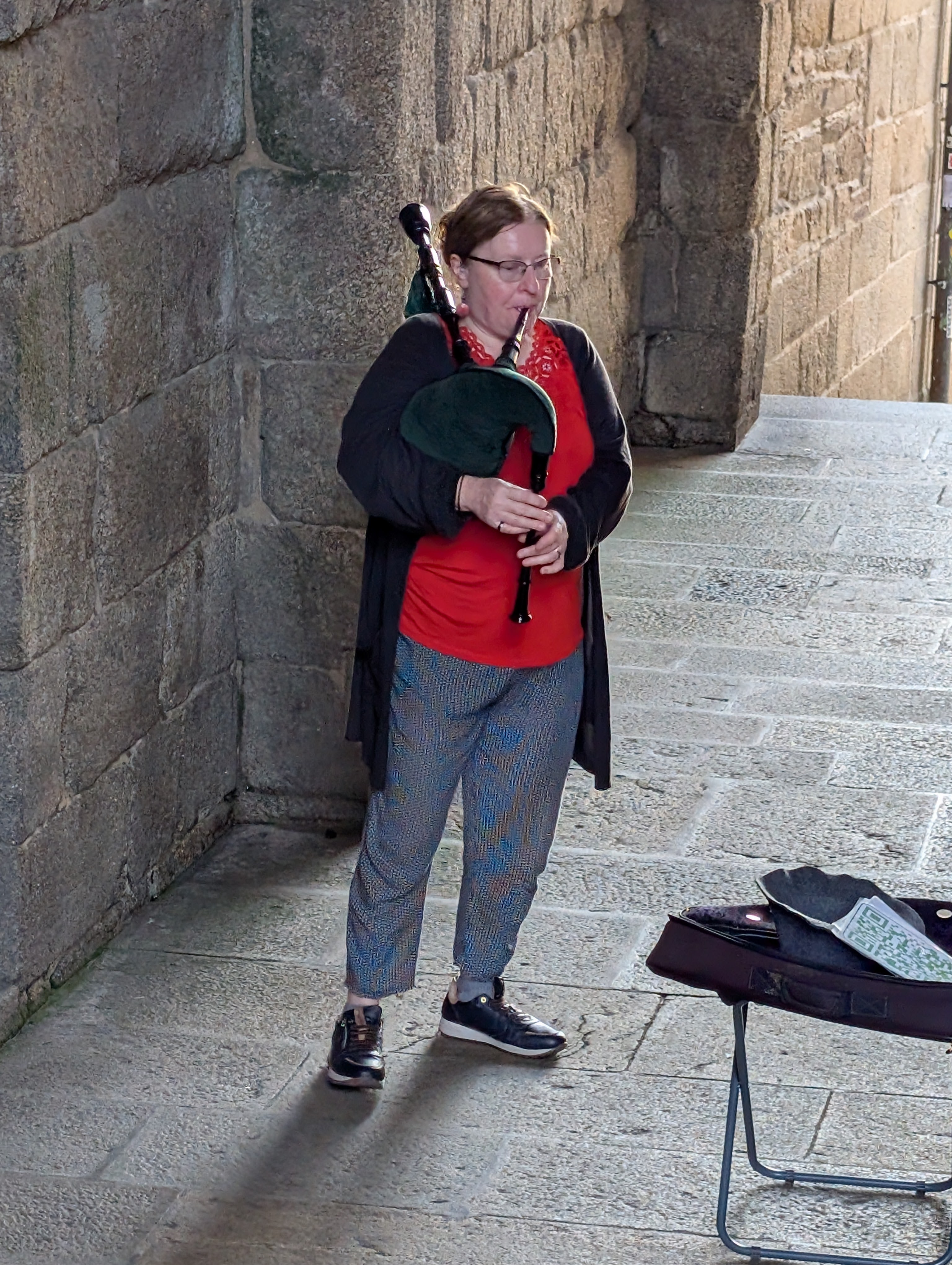 The Celtic influence is large in Galicia and bagpipes can be heard as pilgrims enter the square. The man offered a special stamp with a donation. We ate lunch while listening to him. You must collect 2 stamps a day to get the official certificate (Compostela) at the end.