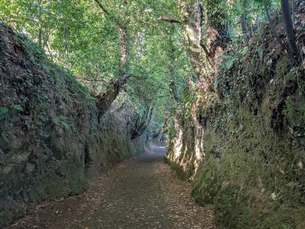 Some background: James was one of the apostles who was a martyr and was beheaded. His head was buried in Jerusalem but his body was taken by boat guided by an angel to Santiago where it was buried. In the 9th century, his room mains were discovered and a church was ordered to be erected at the site. His remains are interred in the church. When news of the discovery of his remains spread far and wide, religious people made the pilgrimage to Santiago. Some of these routes may have already been trade routes, but the paths were followed by others over the centuries and are known as the Camino de Santiago. There are quite a few paths over many countries.